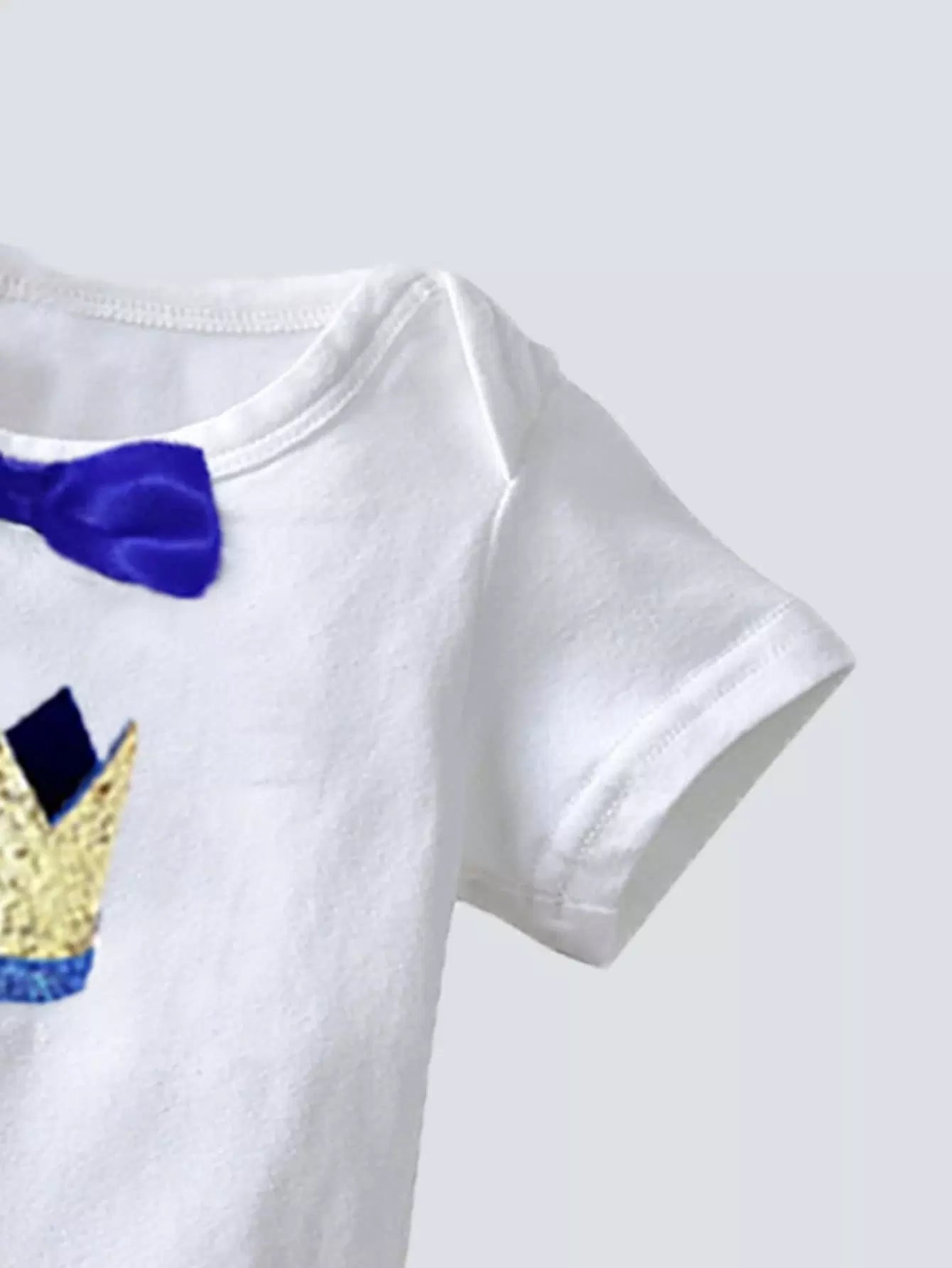 بدلة صبي رضيع مطبوع عليها تاج أمامي بعقدة وبنطلون جينز بحمالات ممزقة