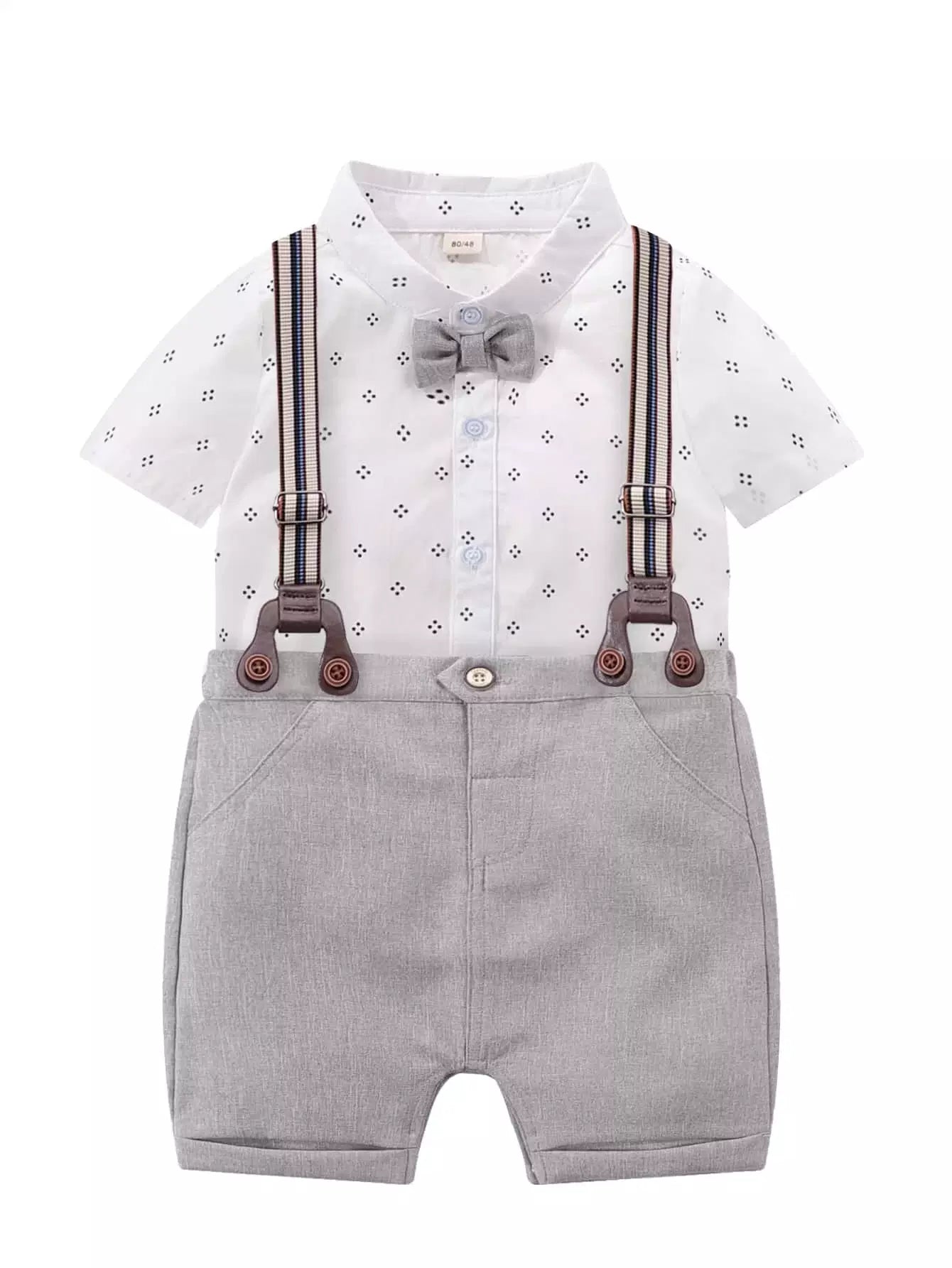 لباس قطعة واحدة منقّطة للطفل الرضيع مع شورت بحمالة