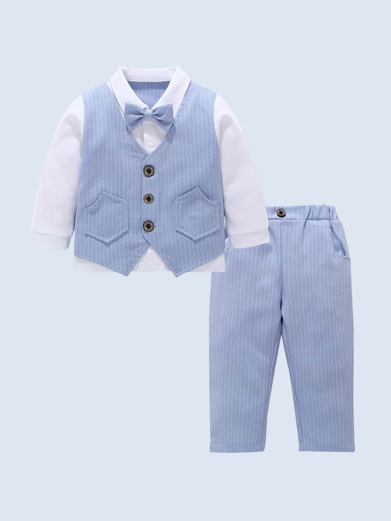 قميص وبنطلون مخططان مع فيونكة أمامية 2 في 1 للأولاد الصغار