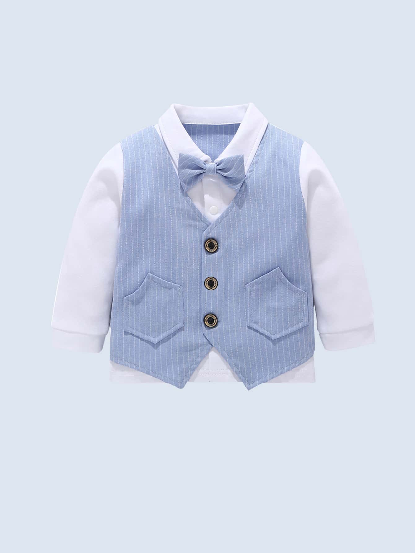 kids Baby Boy Striped Bow Front 2 In 1 Shirt & Pants