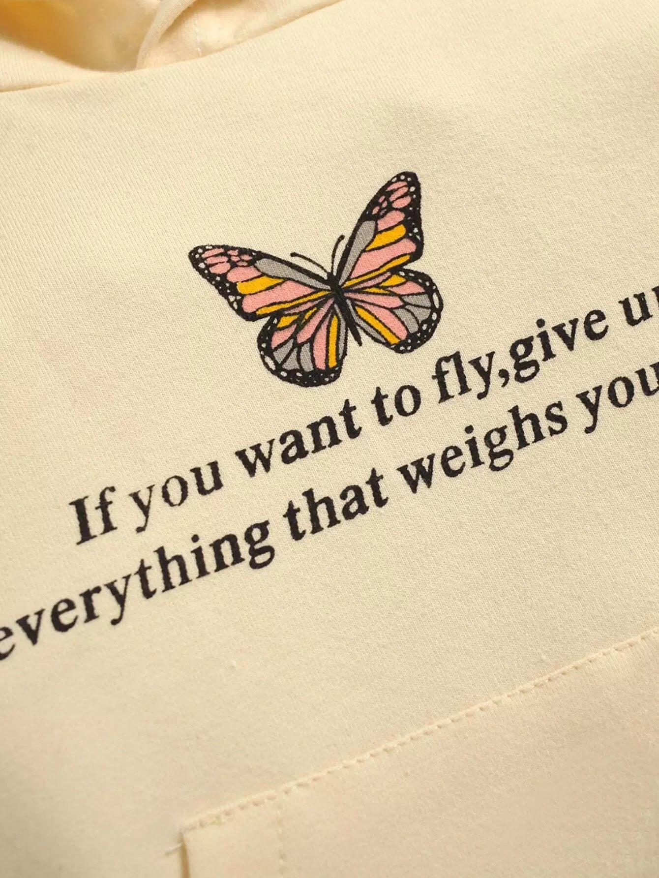 هودي بطبعة فراشة صغيرة وشعار جرافيك