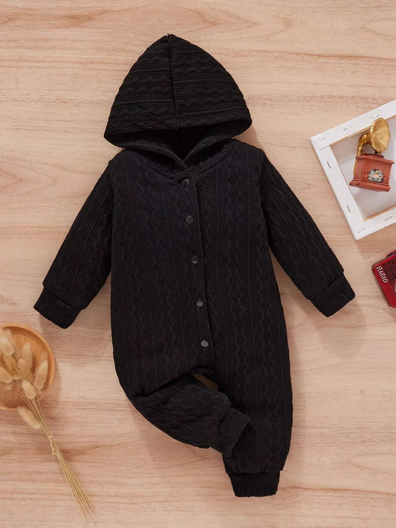 بذلة بقبعة بقبعة بغطاء للرأس بأزرار أمامية