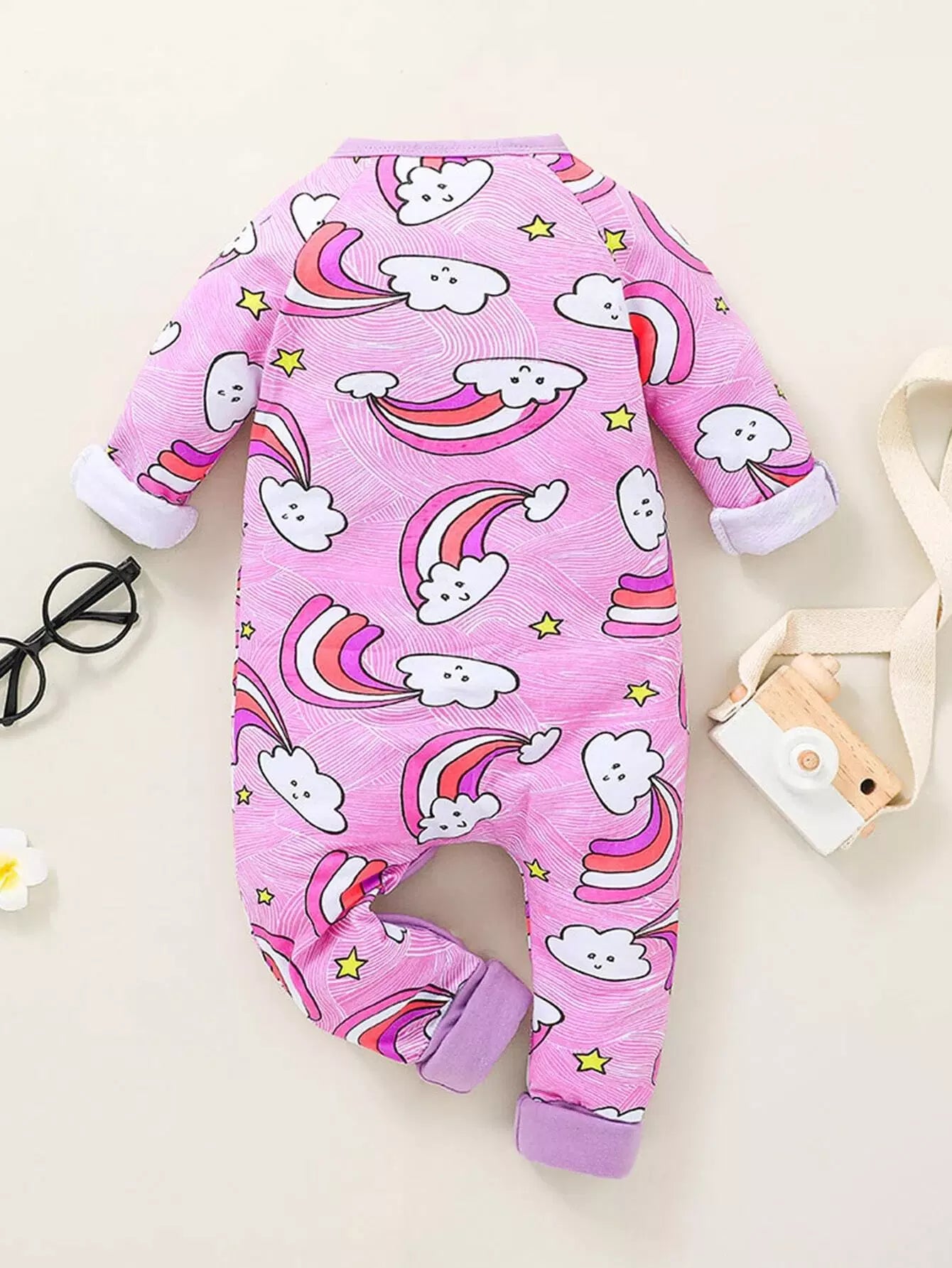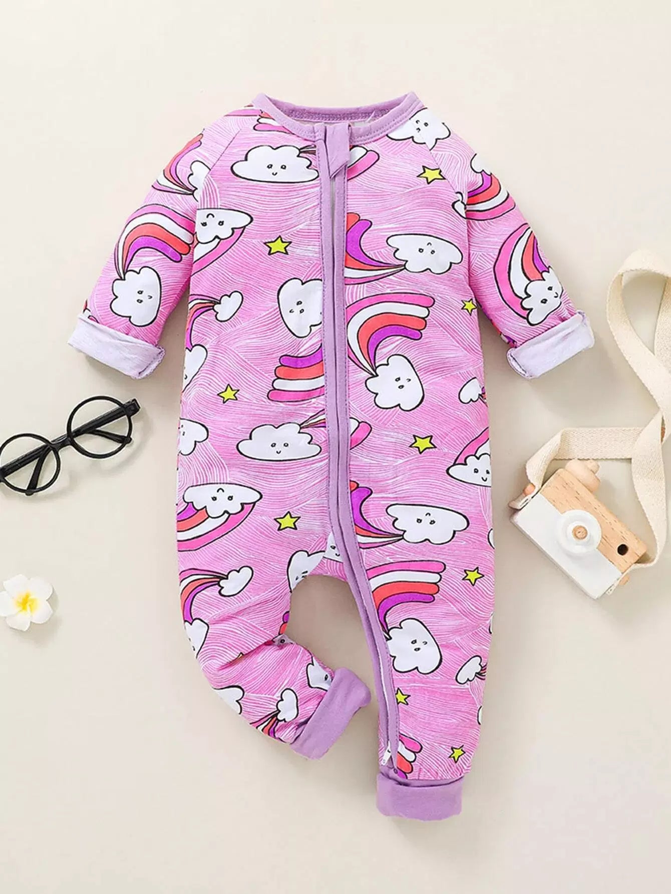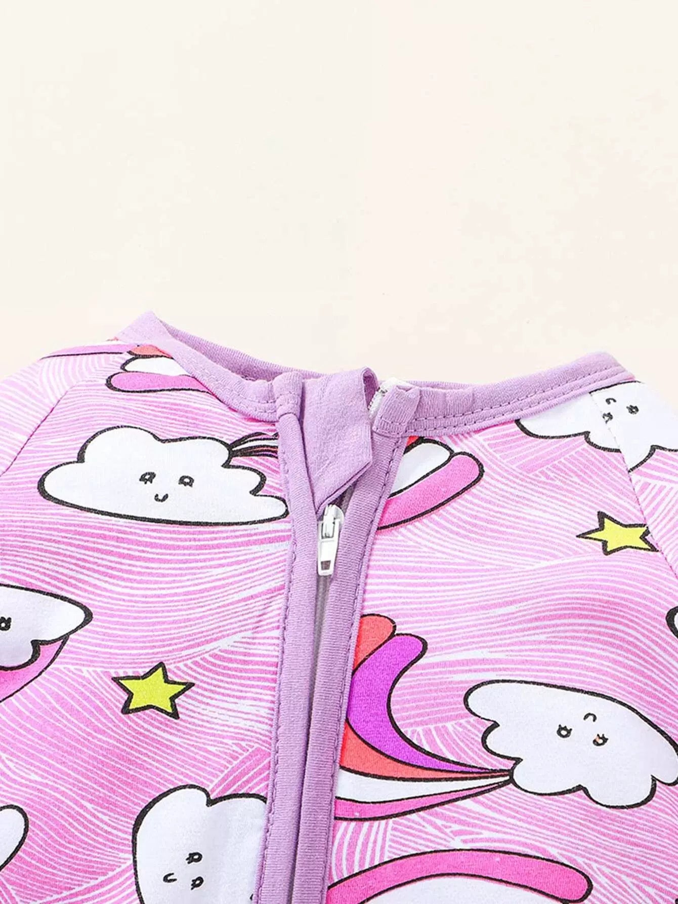 جمبسوت أطفال بطبعة غيوم وقوس قزح بسحاب