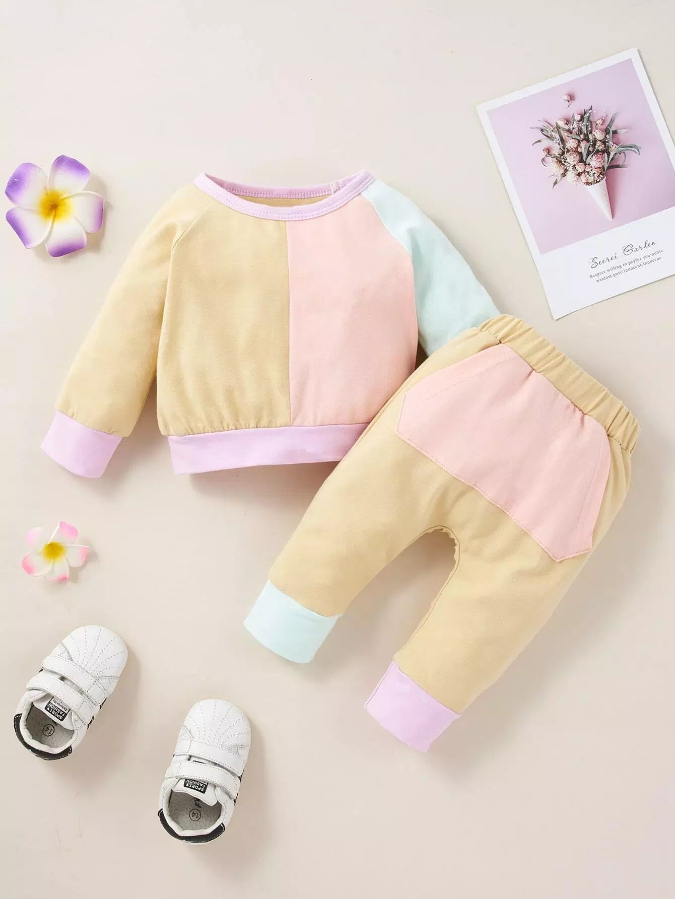 الأطفال - بلوفر وبنطلون رياضي بألوان متعددة