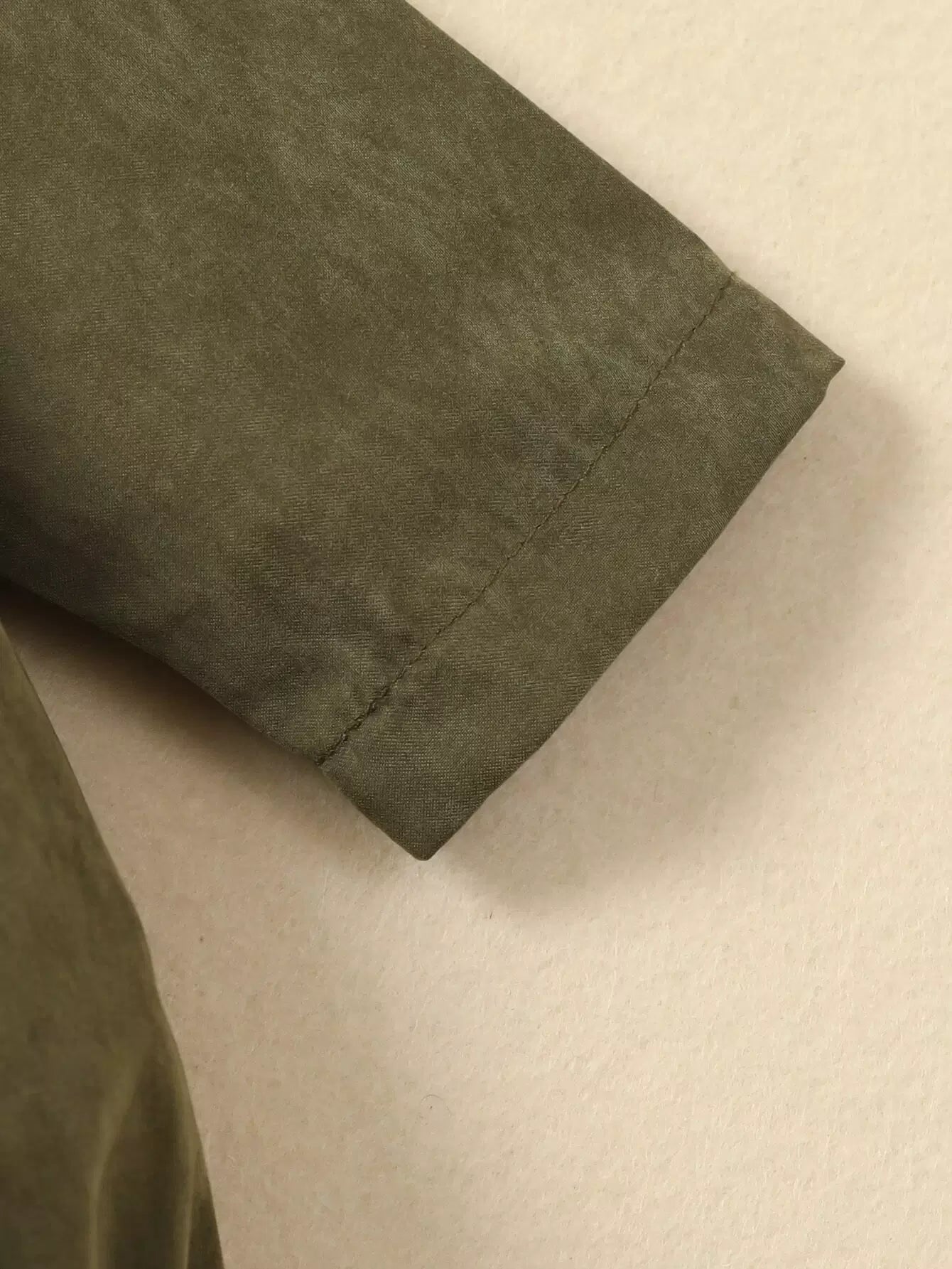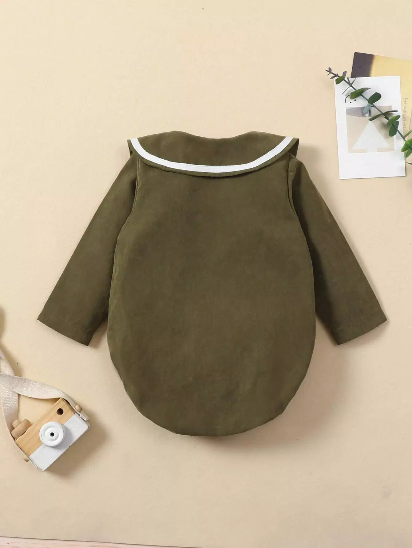 لباس قطعة قميص رضيع بلون مغلف بلون مغاير بأزرار مزدوجة