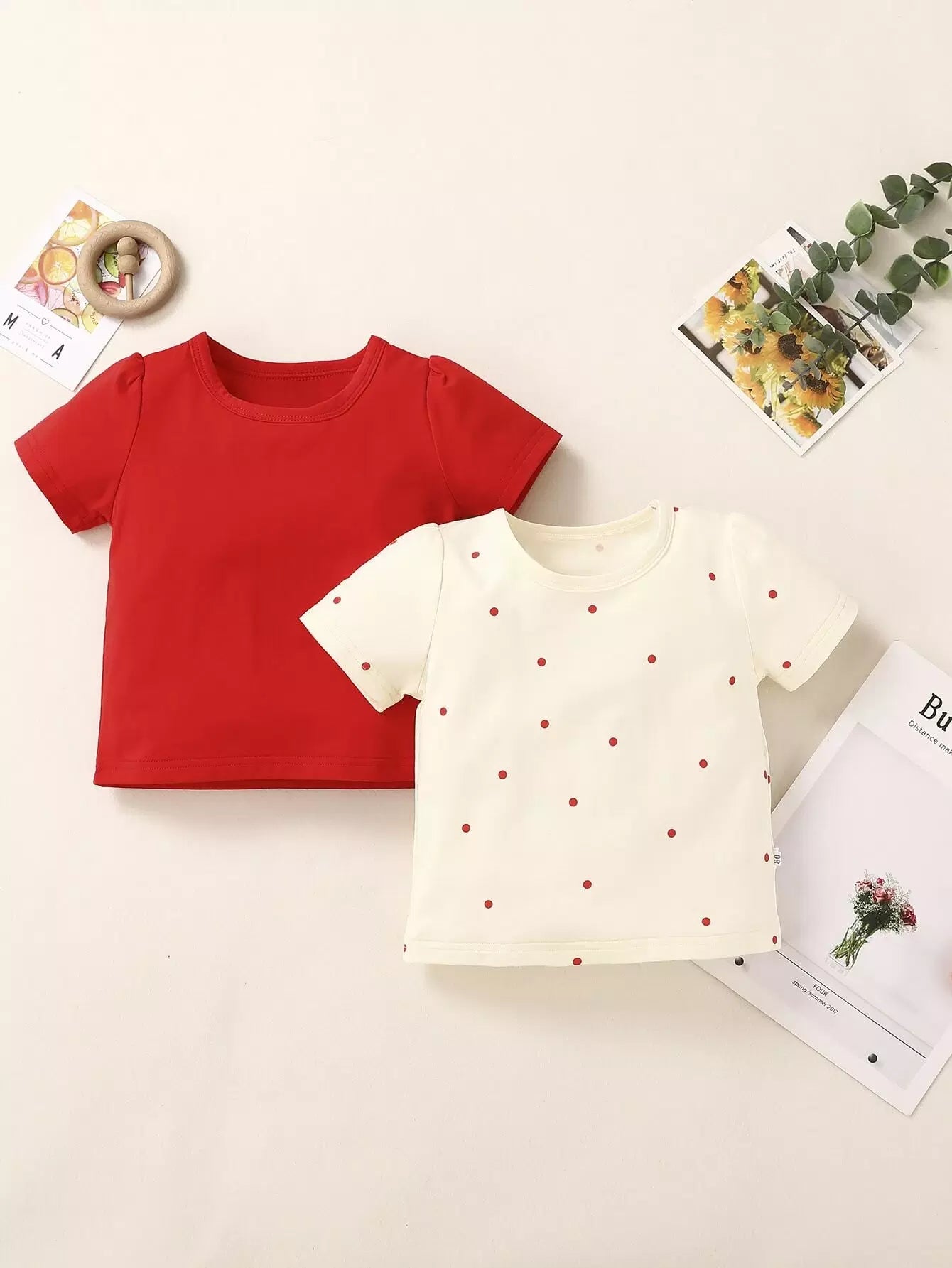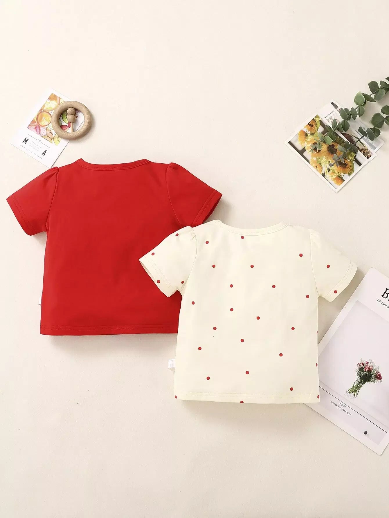 تي شيرت منقّط للطفلة الرضيعة 2 قطعة منقّط