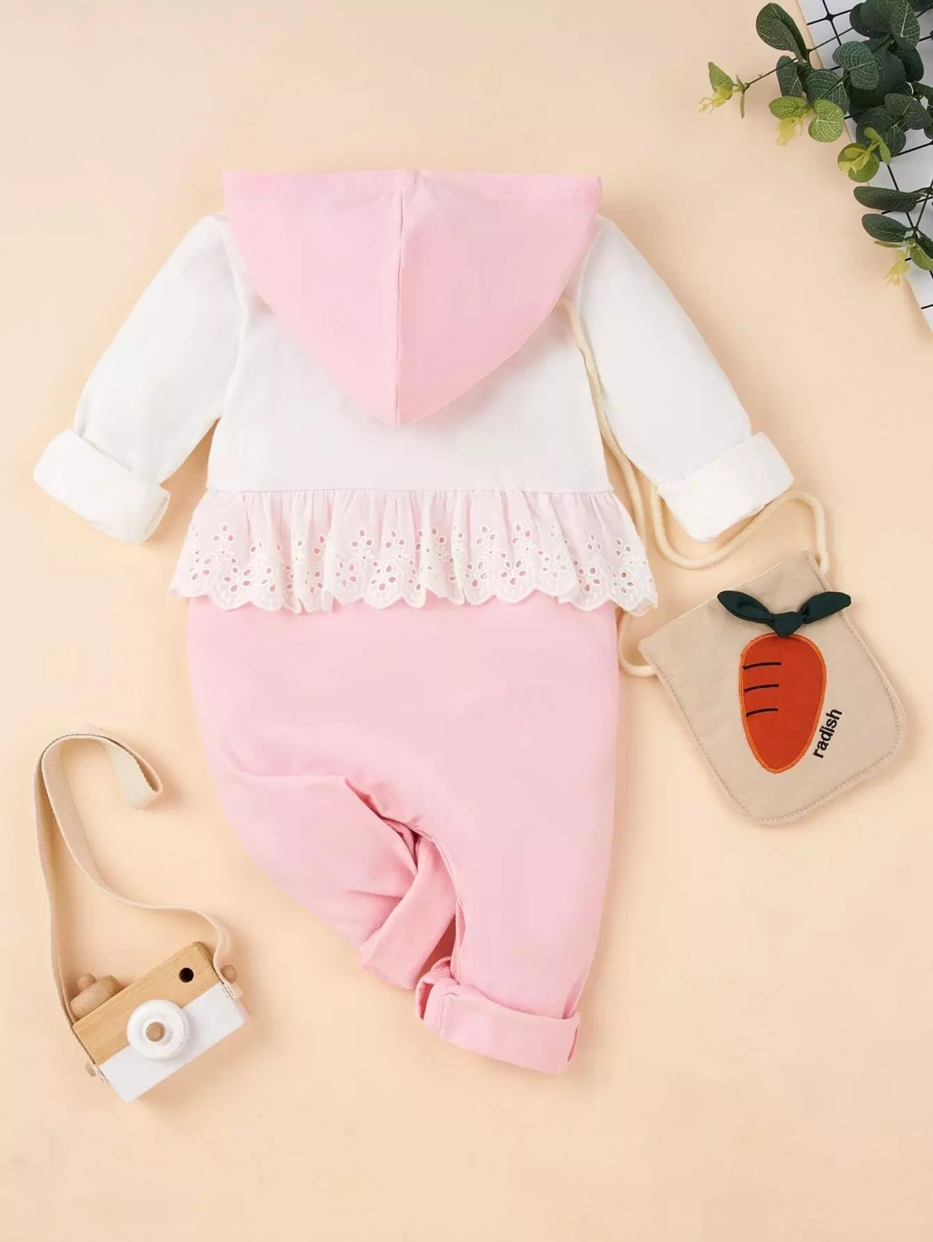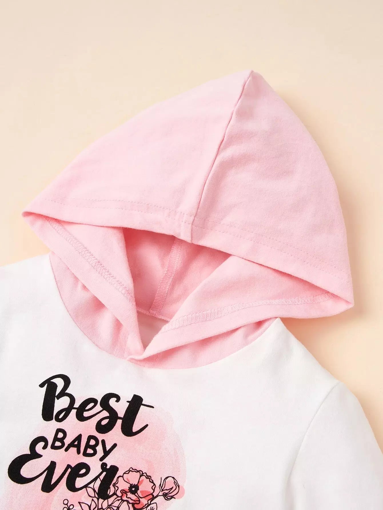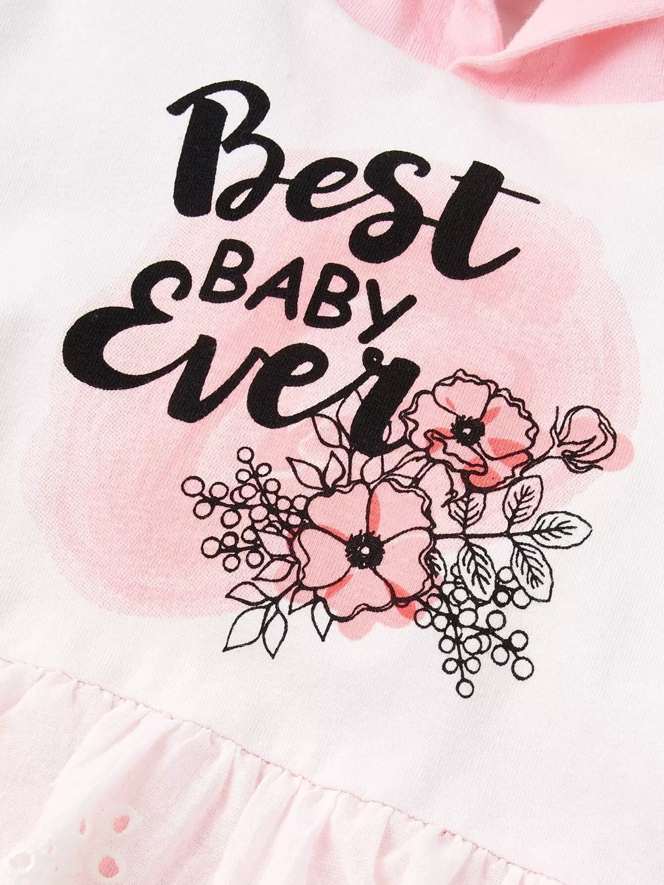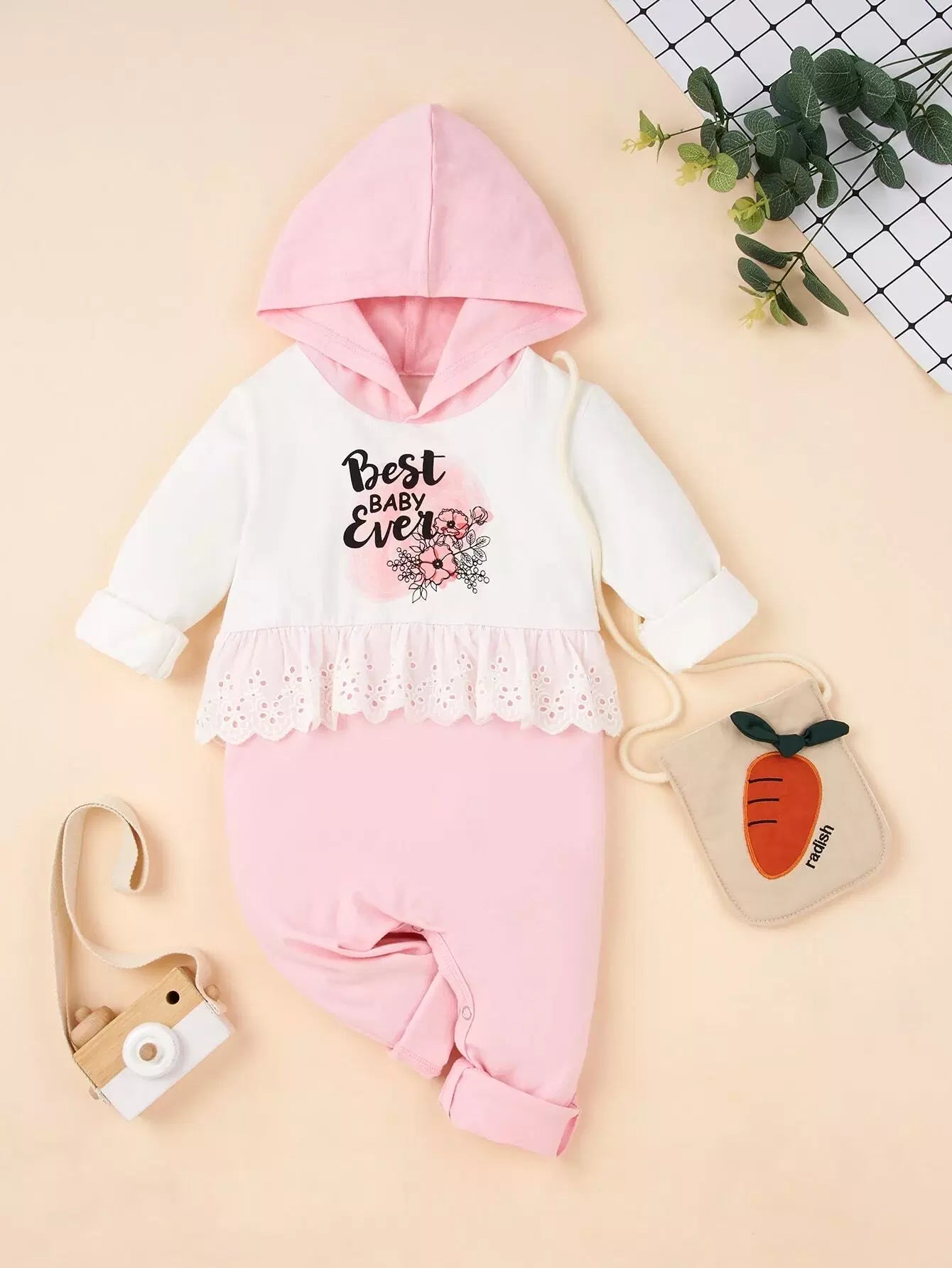 بذلة بقبعة بقبعة بغطاء رأس مزينة بزهور وشعارات للطفلة الرضيعة