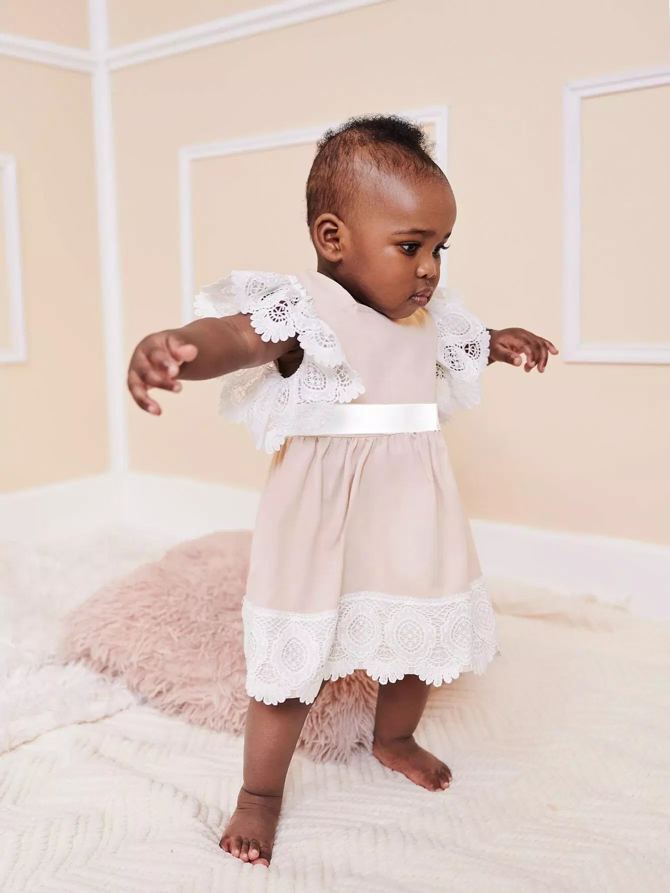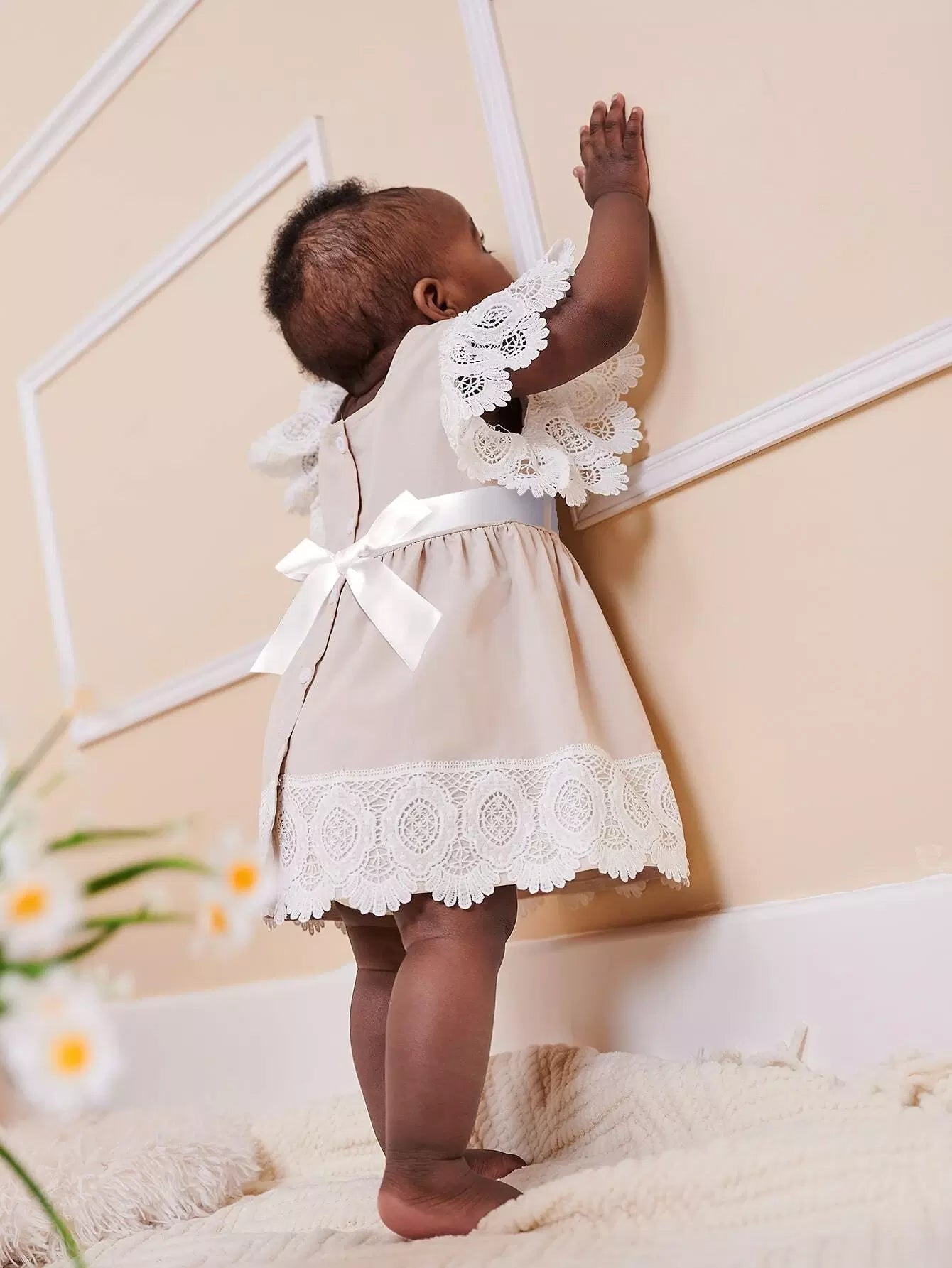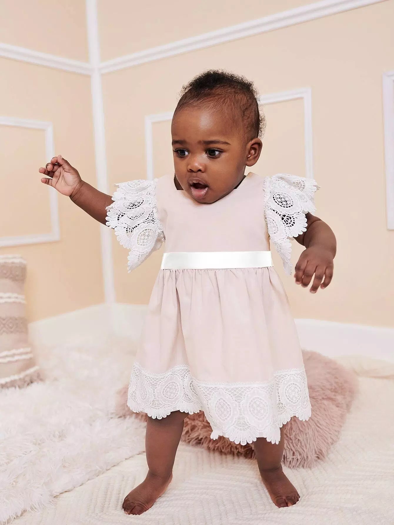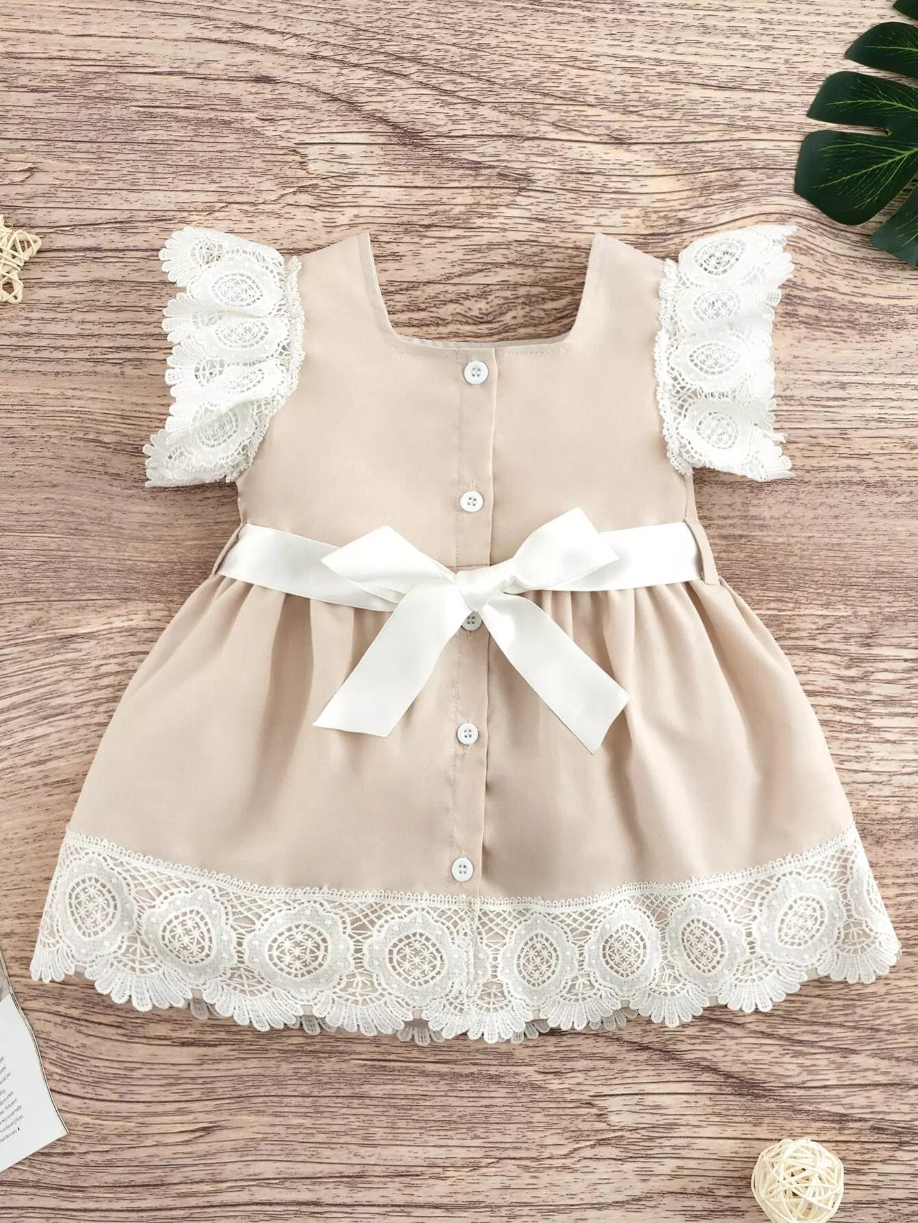 فستان بناتي من الدانتيل بأزرار بدون حزام