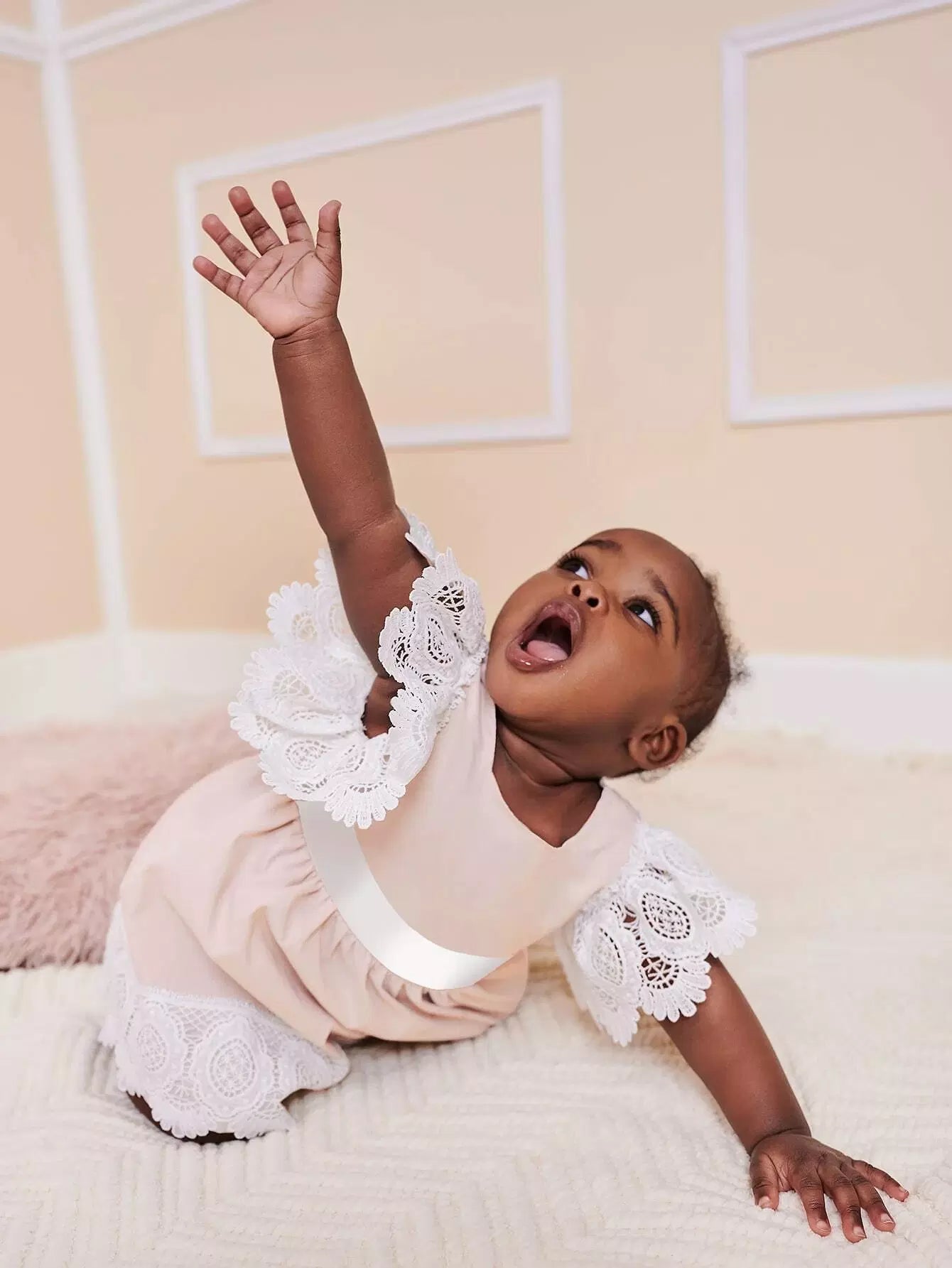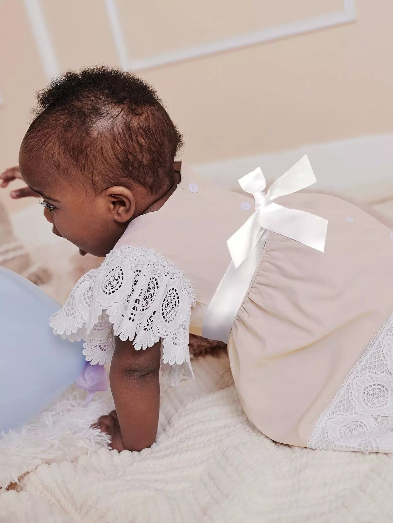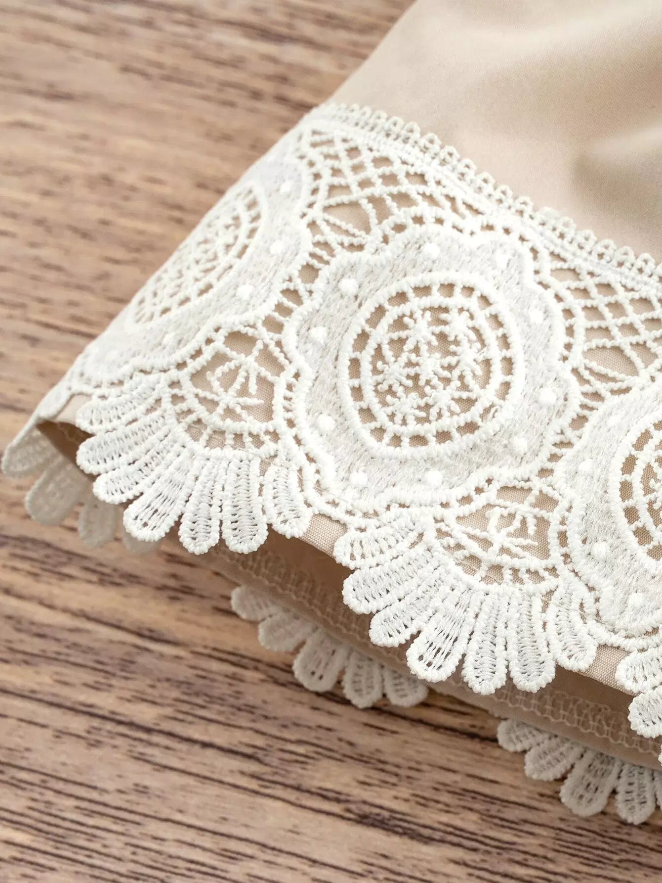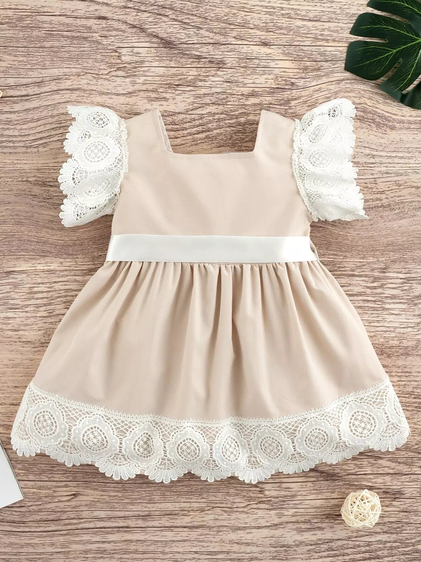 فستان بناتي من الدانتيل بأزرار بدون حزام