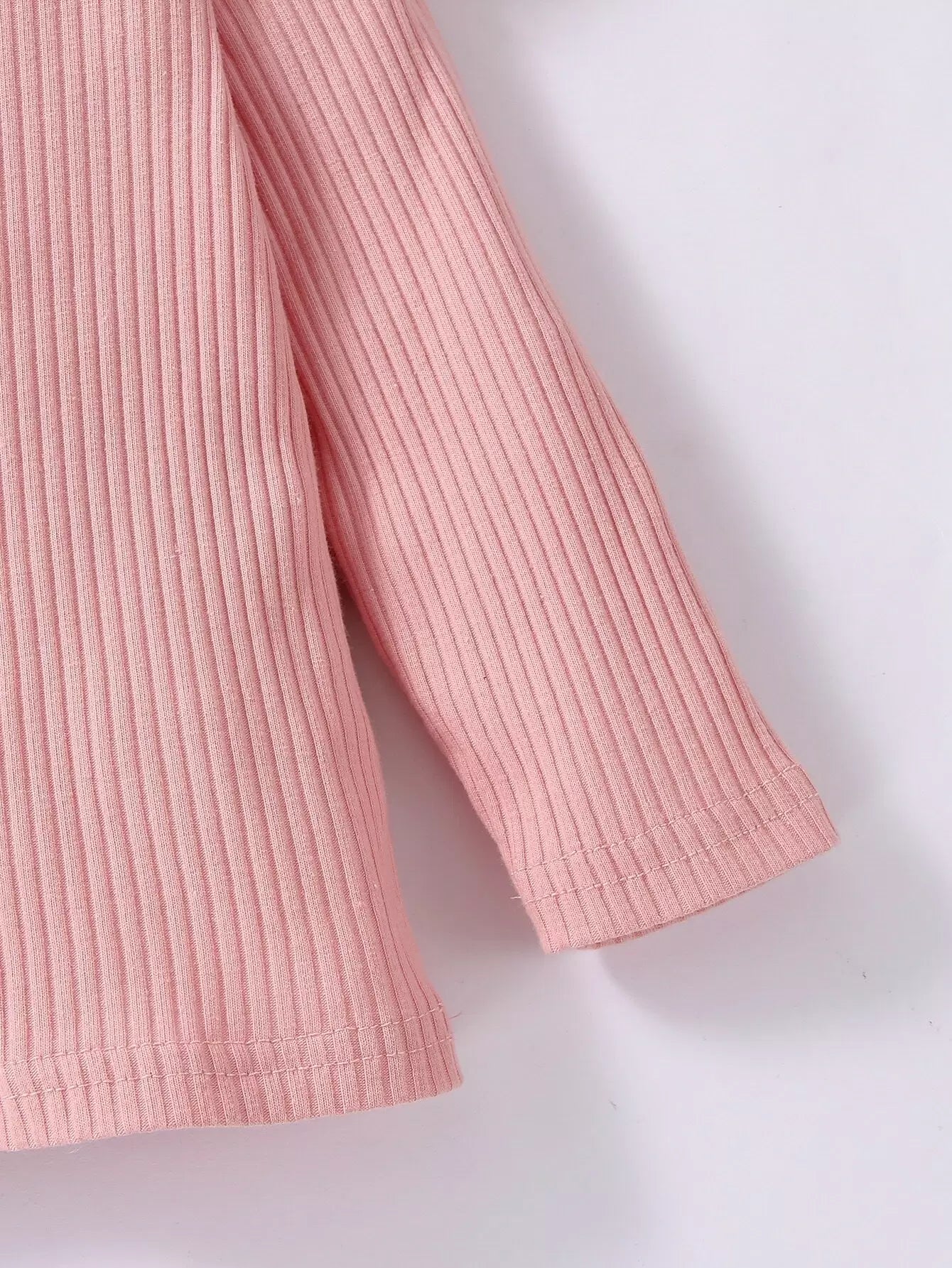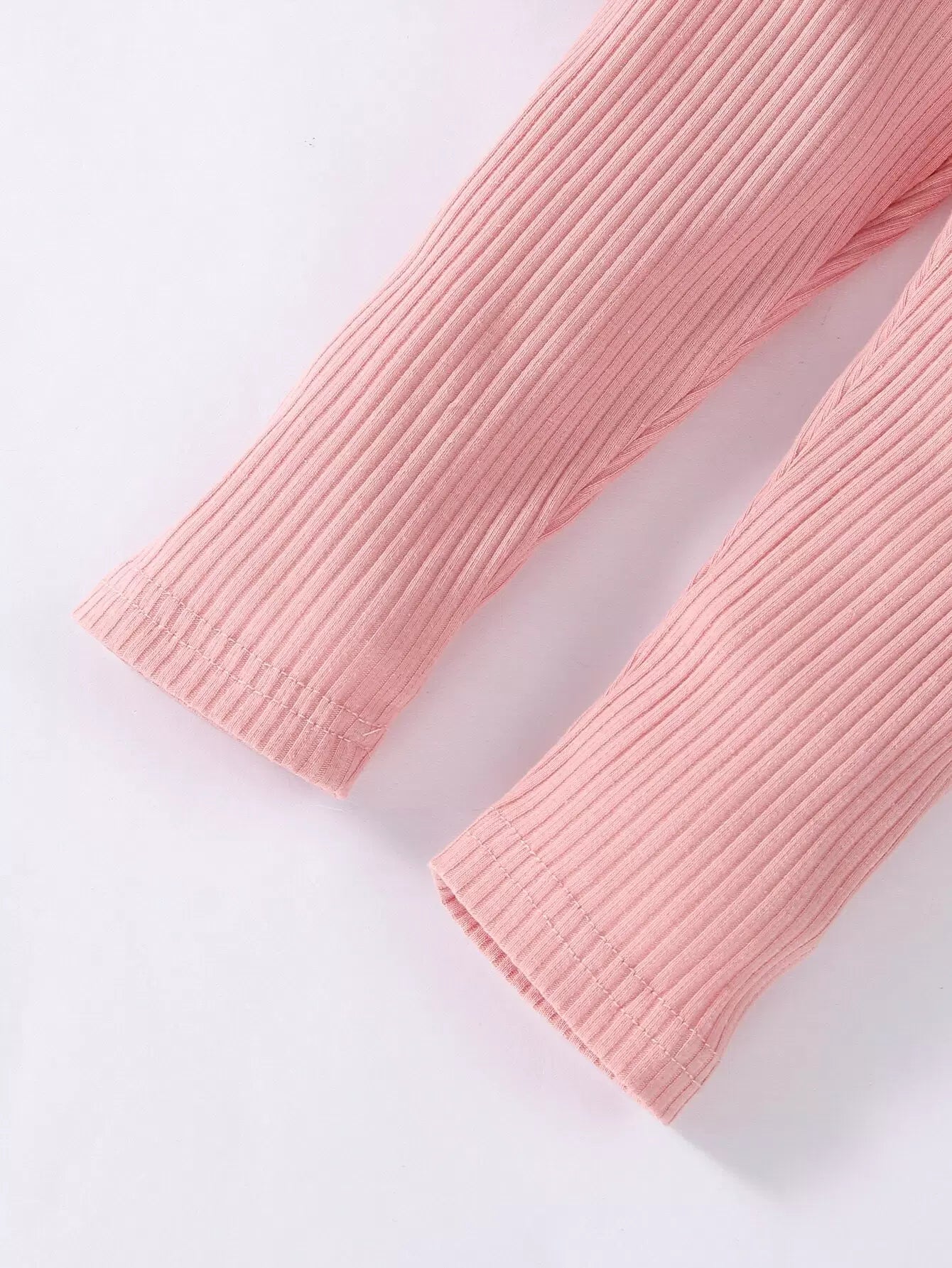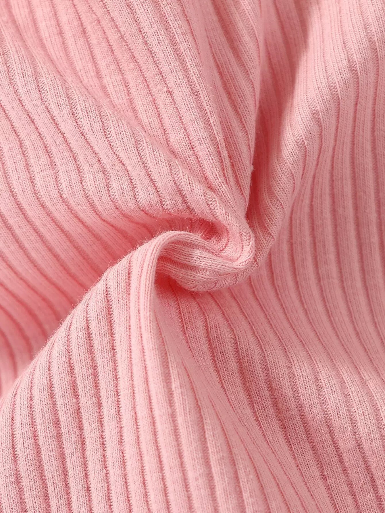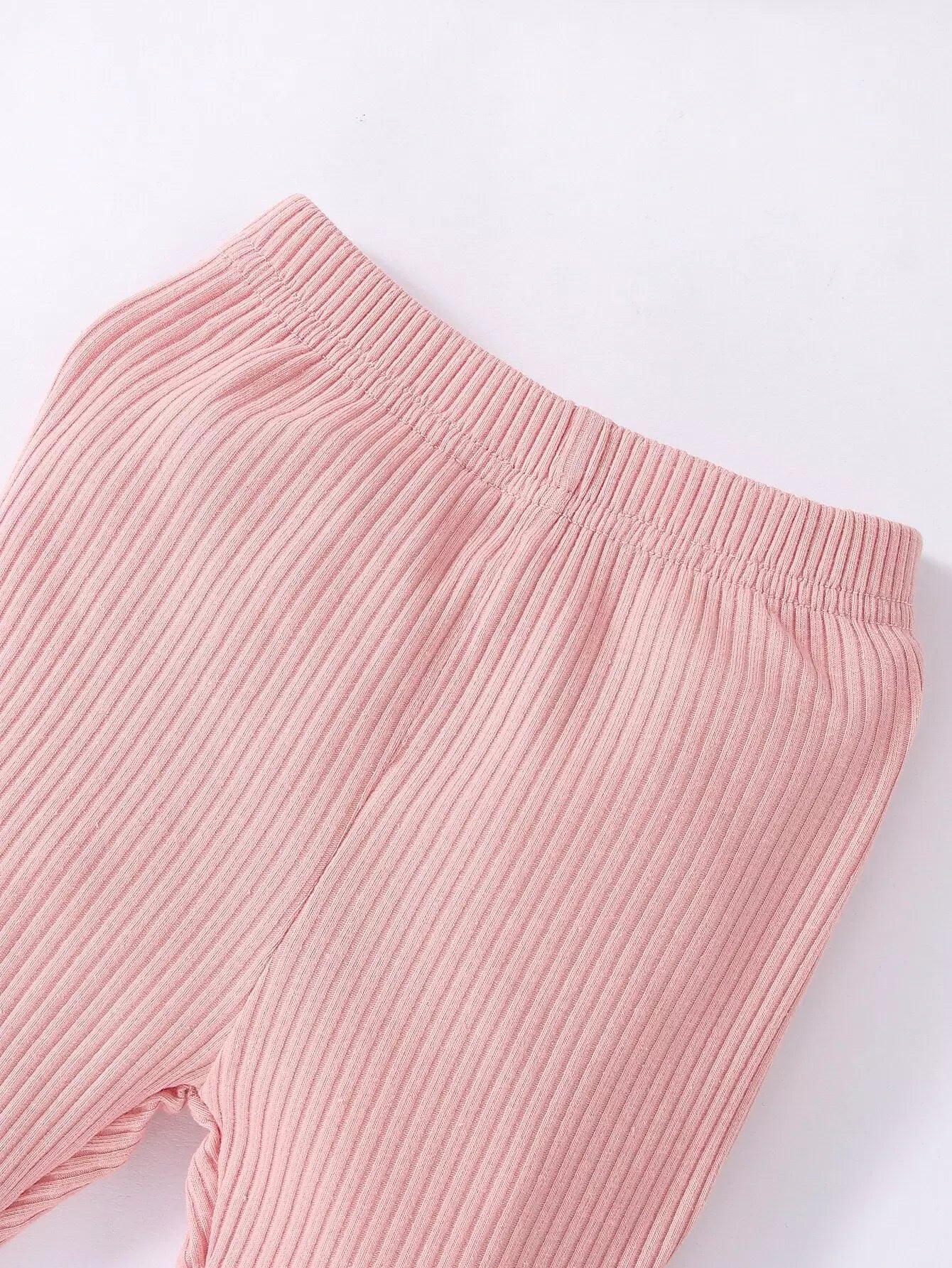 تي شيرت بحواف مضلعة مكشكشة وبنطال ضيق للطفلة الرضيعة