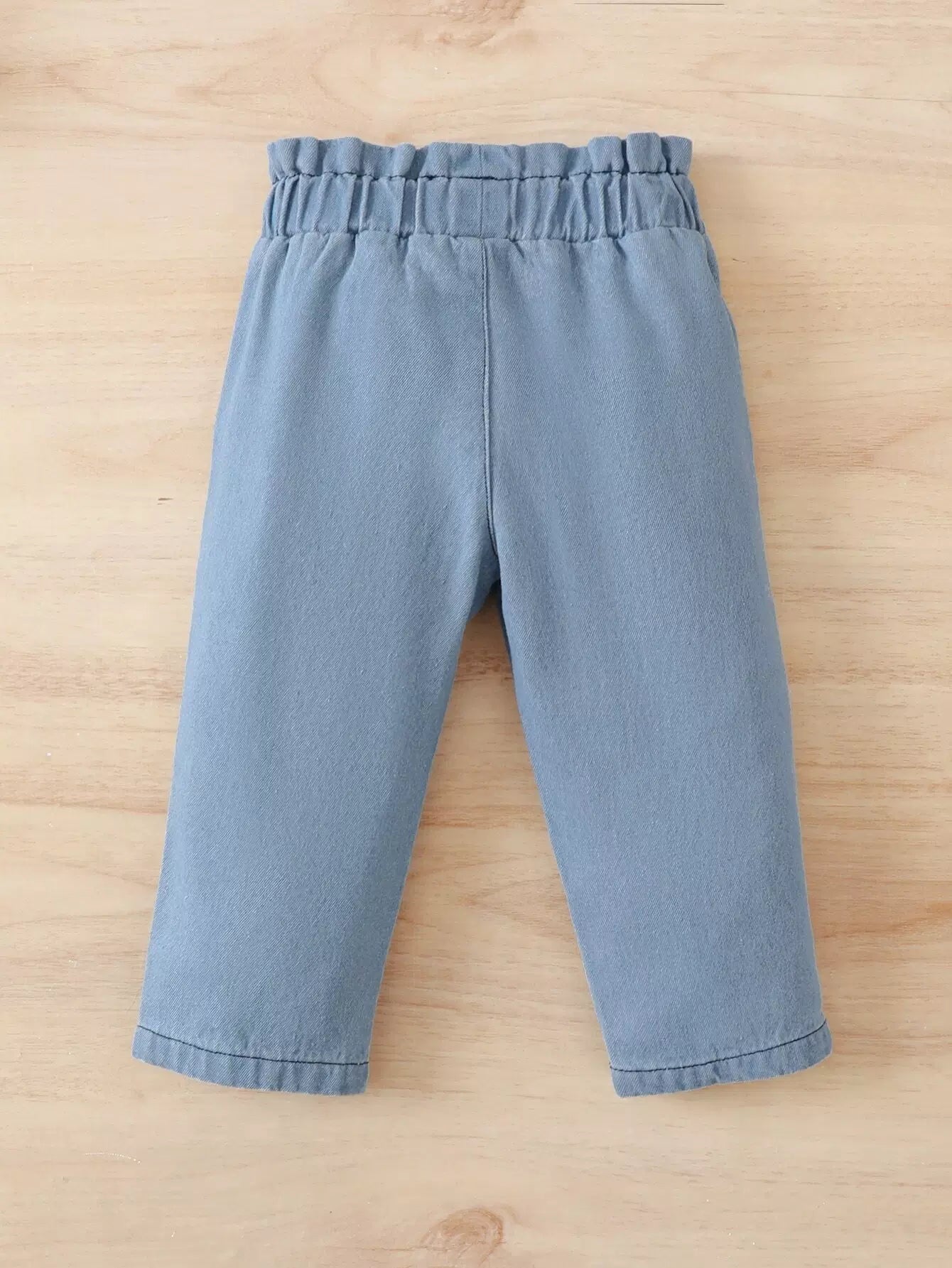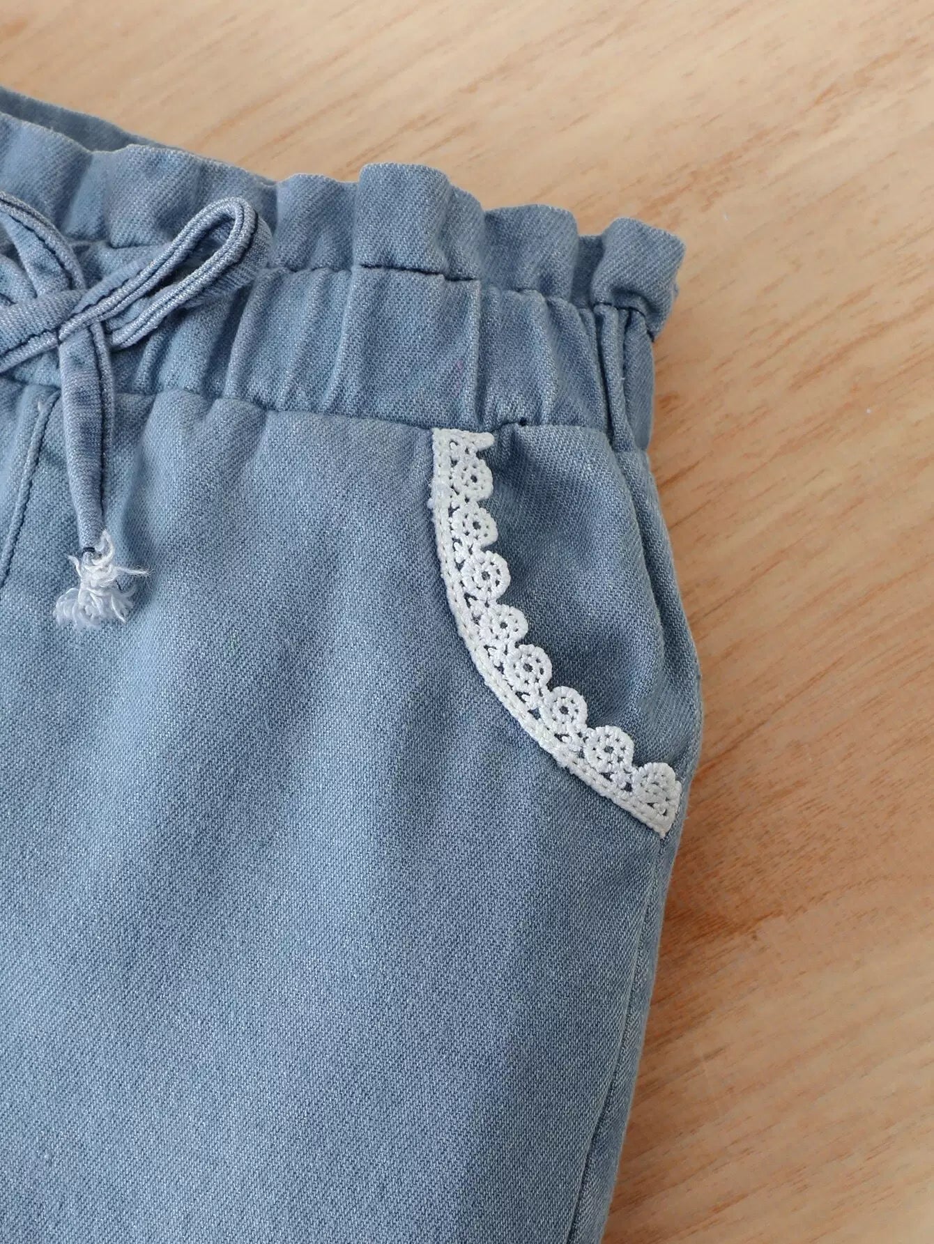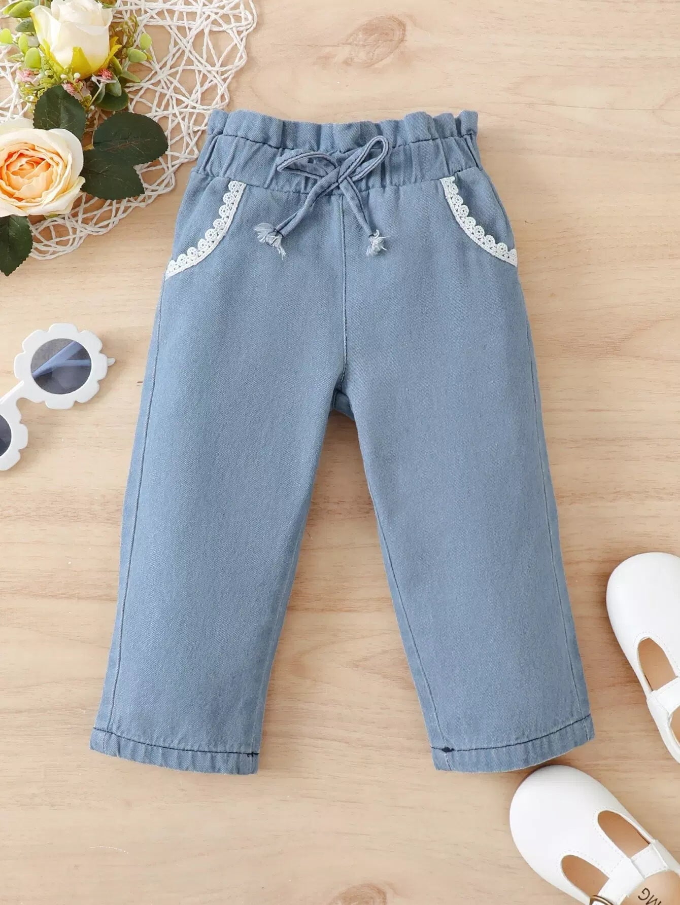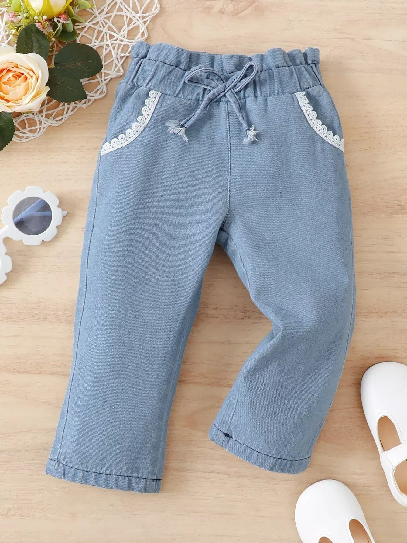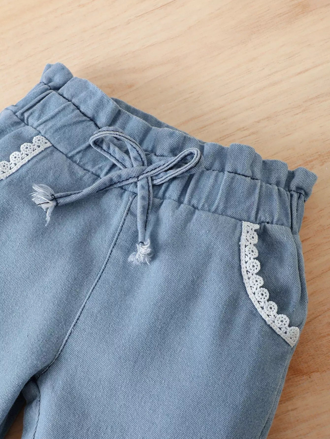 بنطلون جينز بعقدة أمامية من الدانتيل بلون مغاير