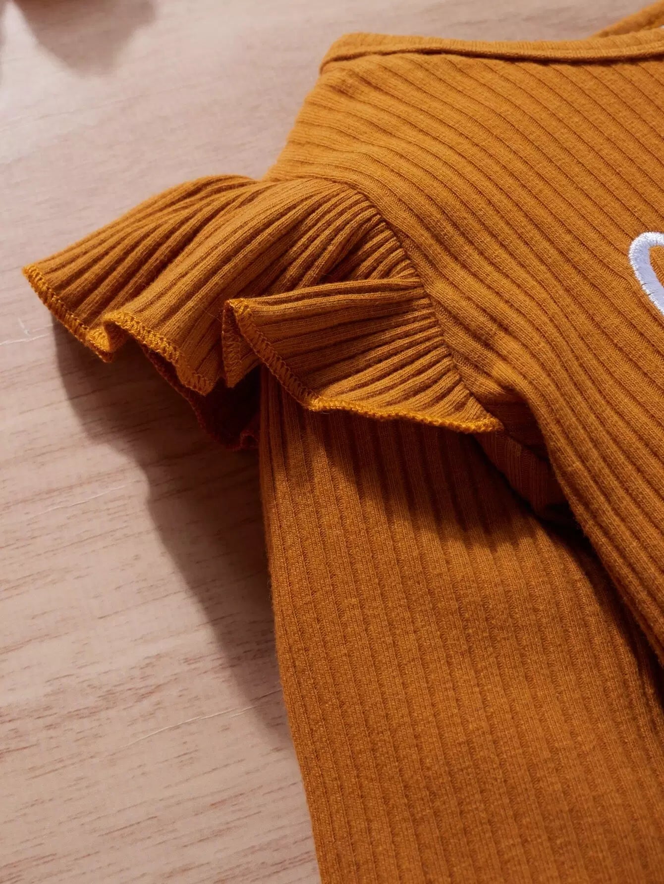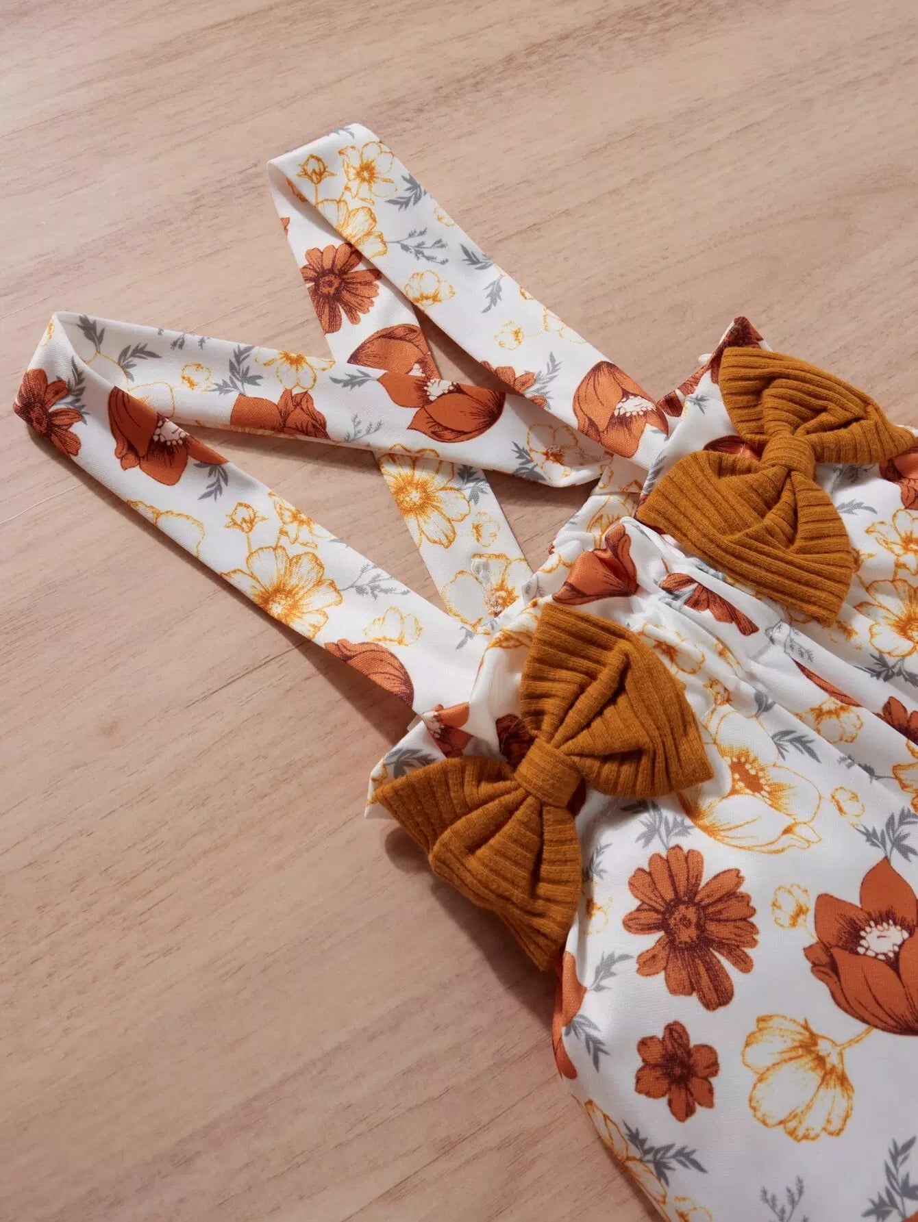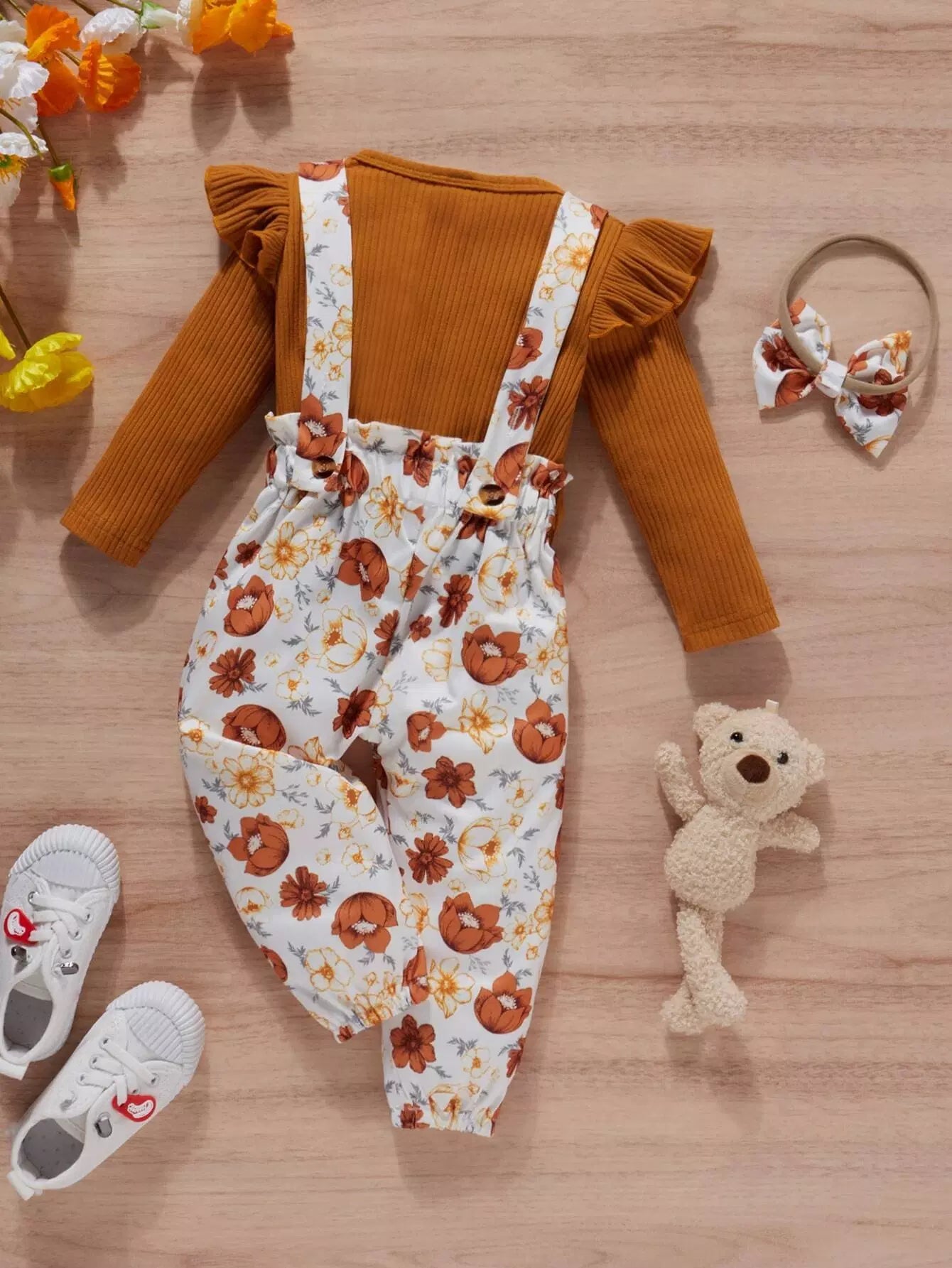 بلوزة بحواف كشكش مطرزة بحروف حروف طفولية وأفرول مزين بعقدة أمامية بطبعة زهور مع عصابة للرأس
