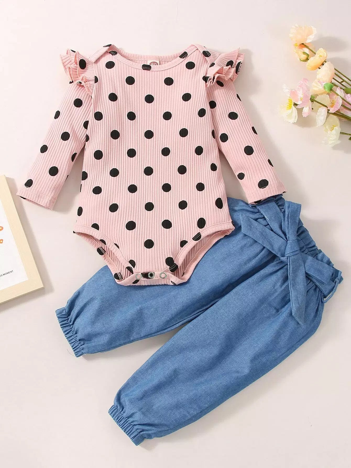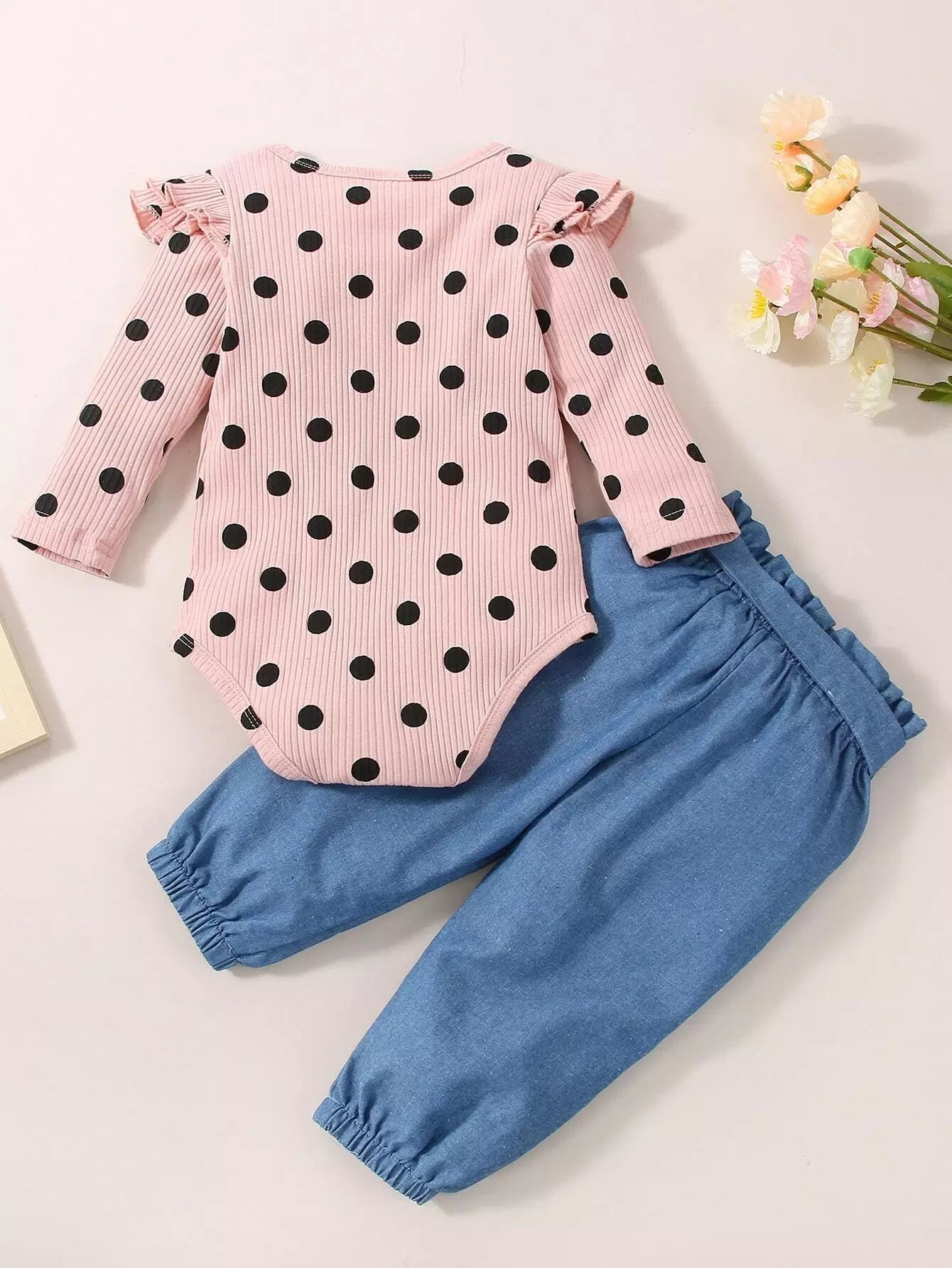 سالوبيت للأطفال منقط مع حقيبة ورقية من الجينز على الخصر بدون حزام