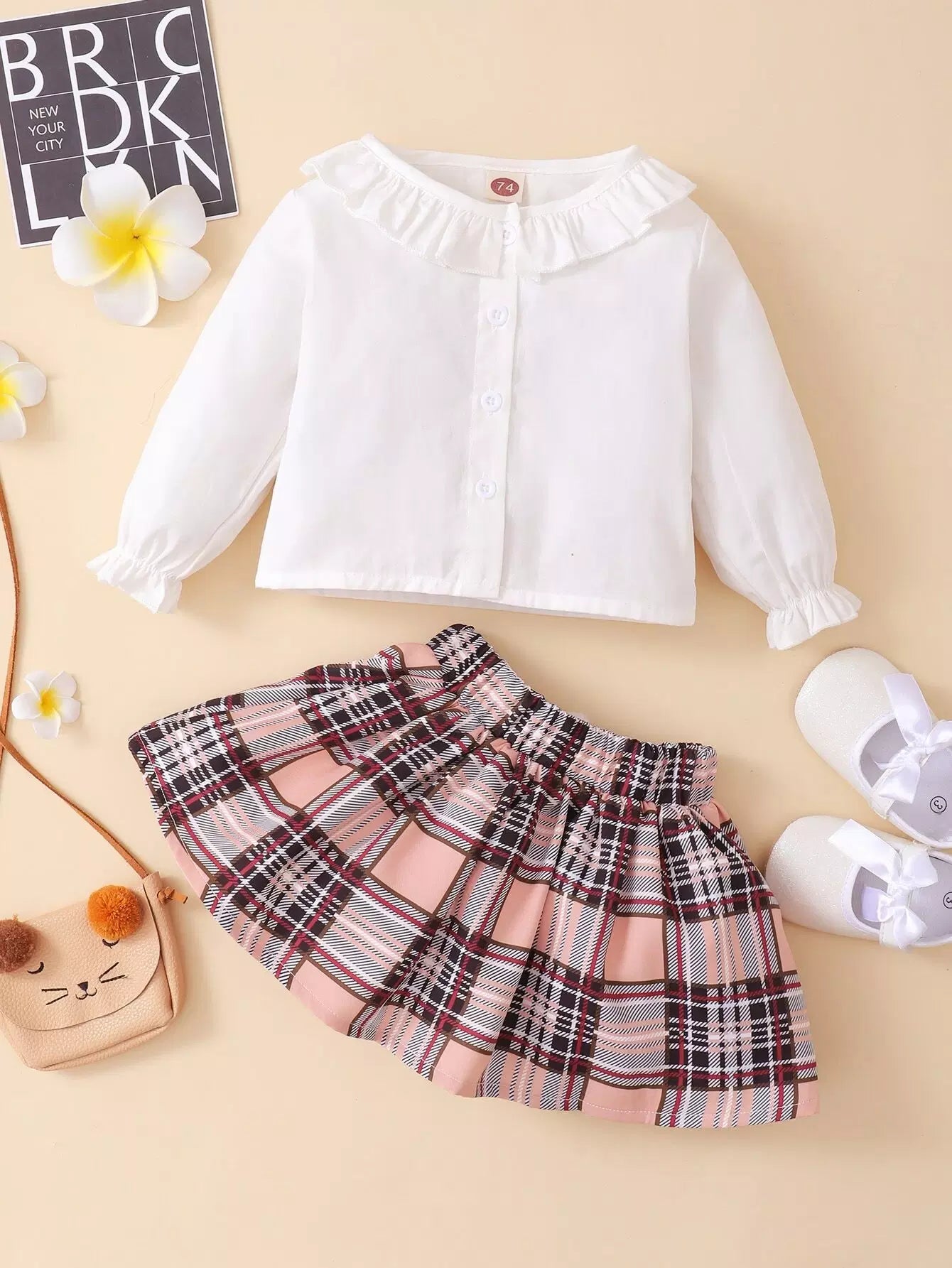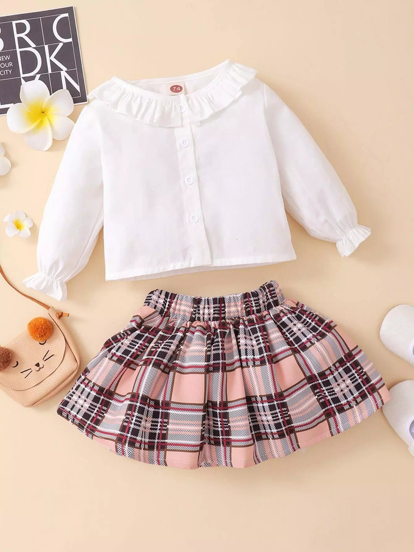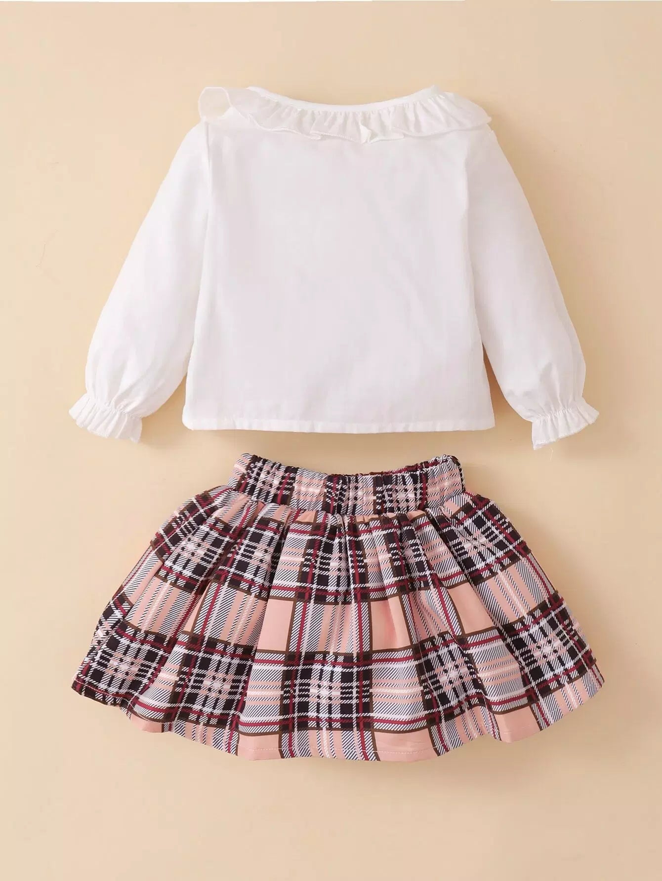 الأطفال - بلوزة بأكمام واسعة وتنورة مطبوعة منقوشة