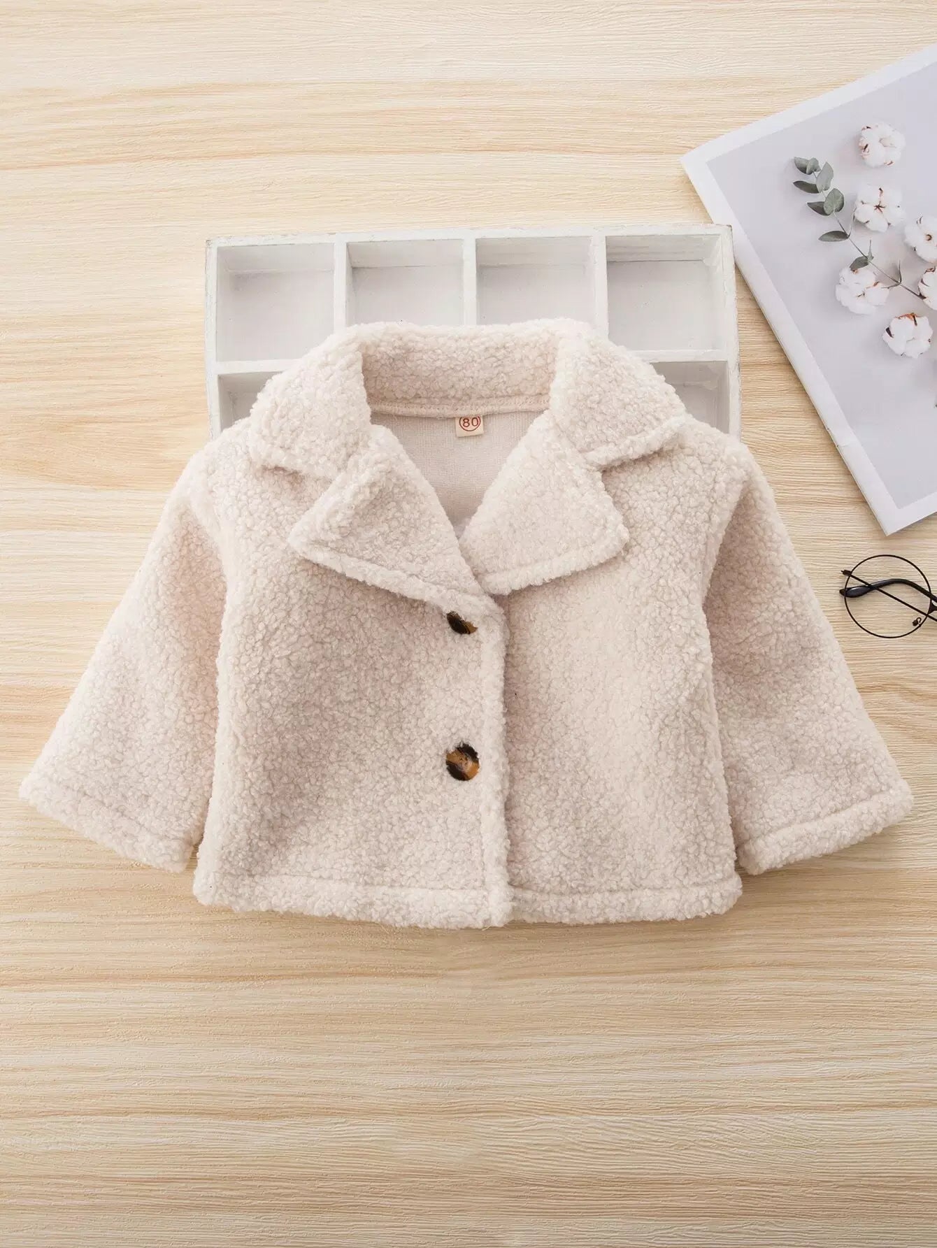 معطف تيدي برقبة صدر واحد بياقة واحدة للأطفال
