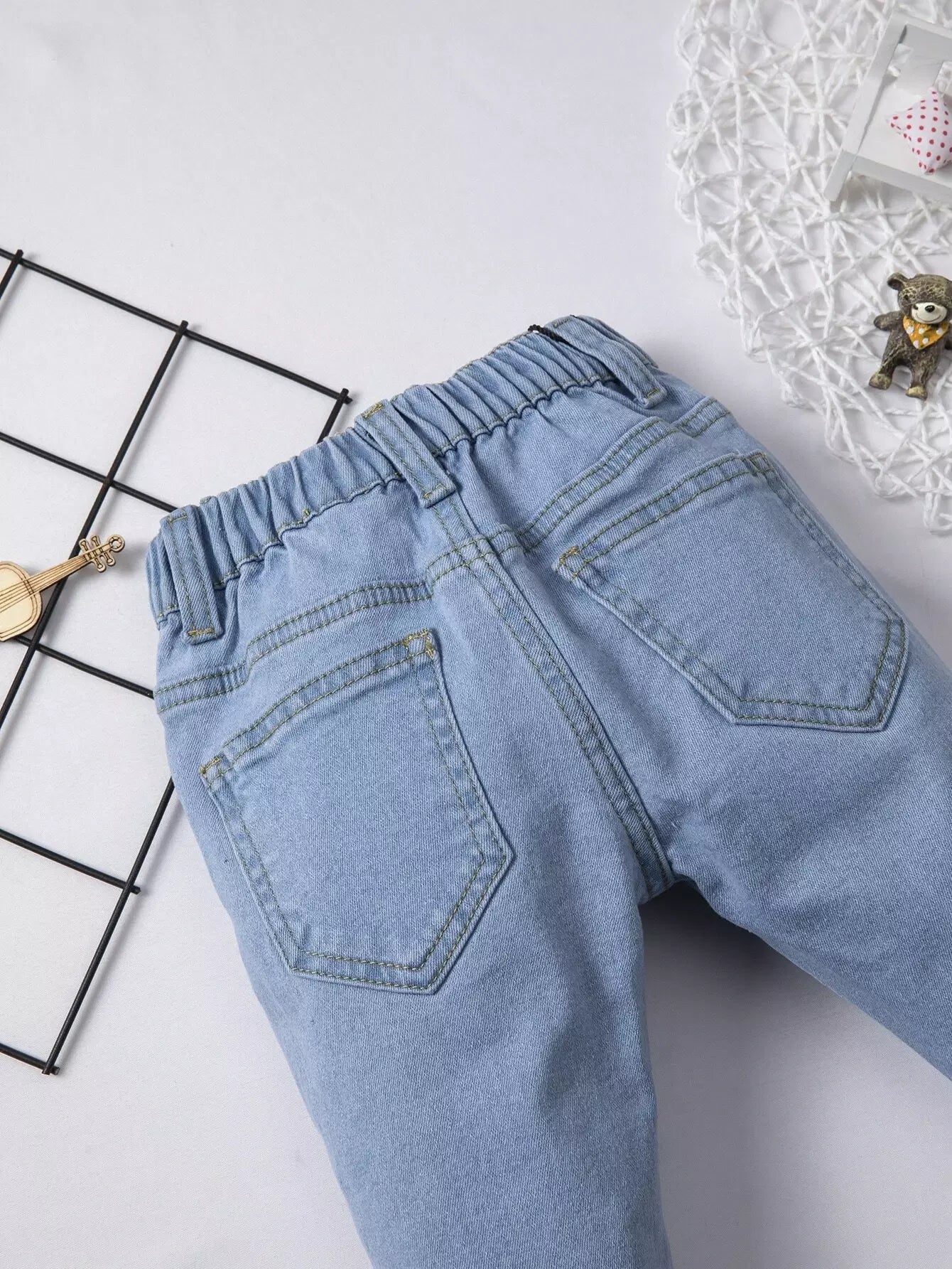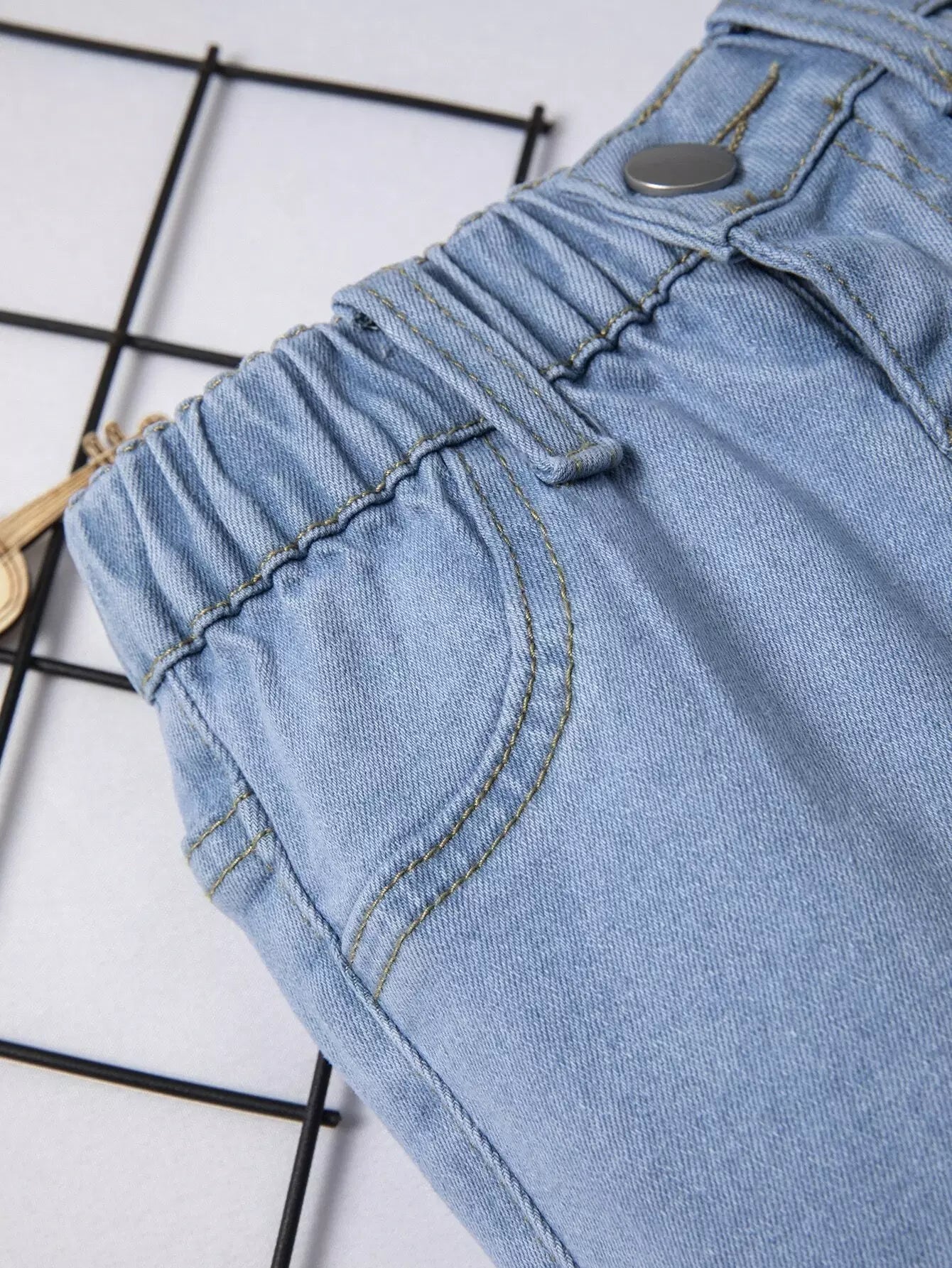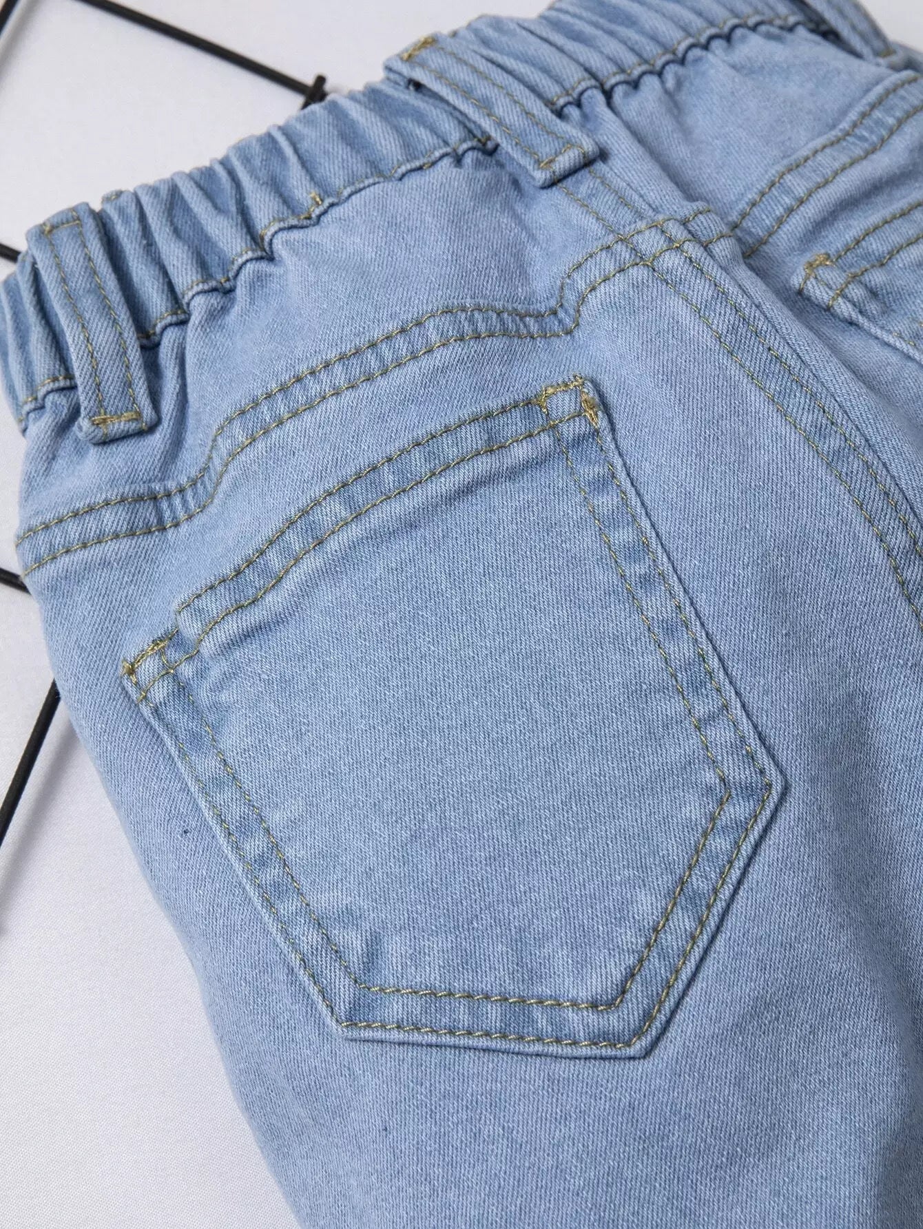 بنطلون جينز بجيب مائل مائل بخصر مرن للأطفال