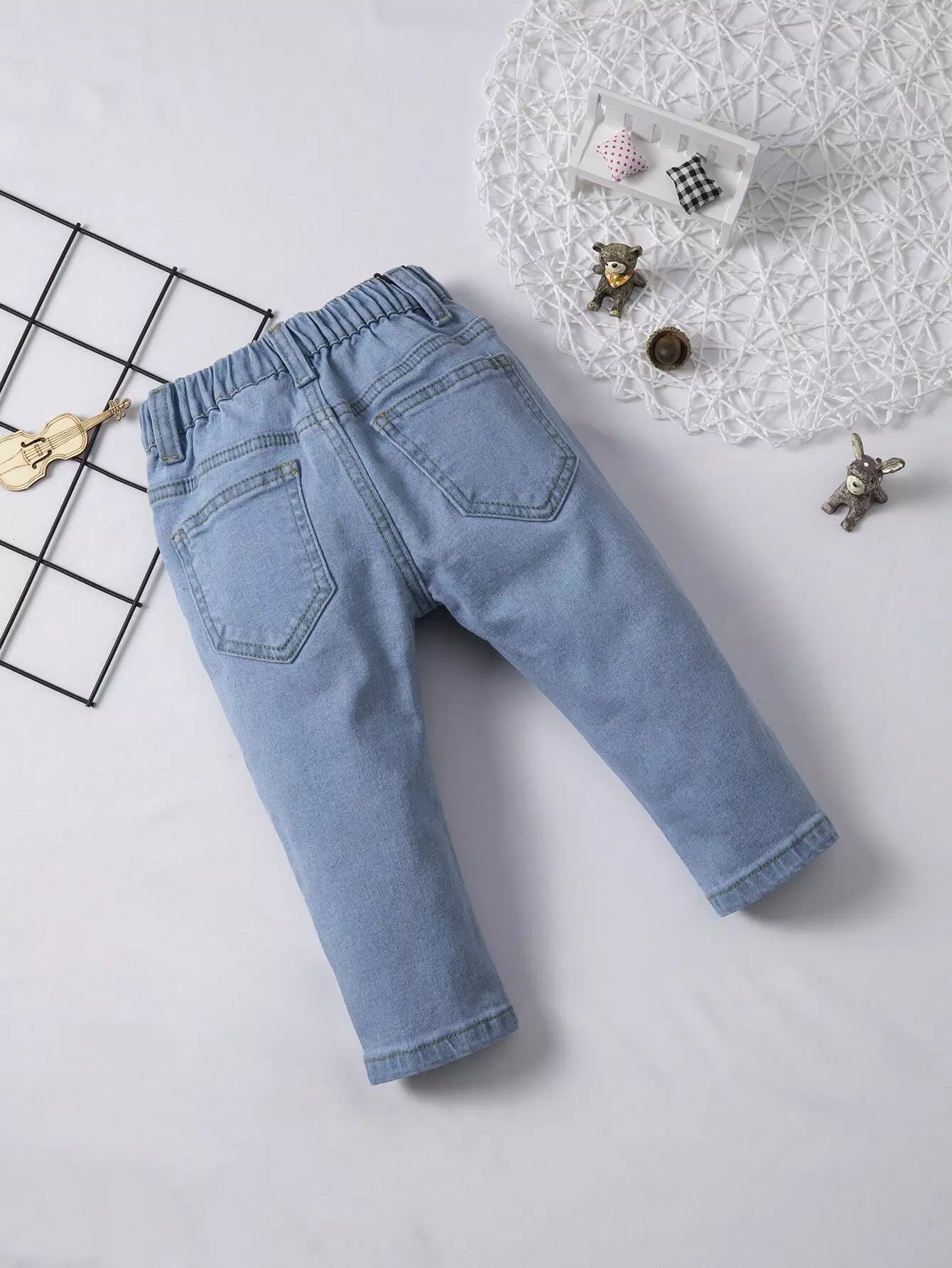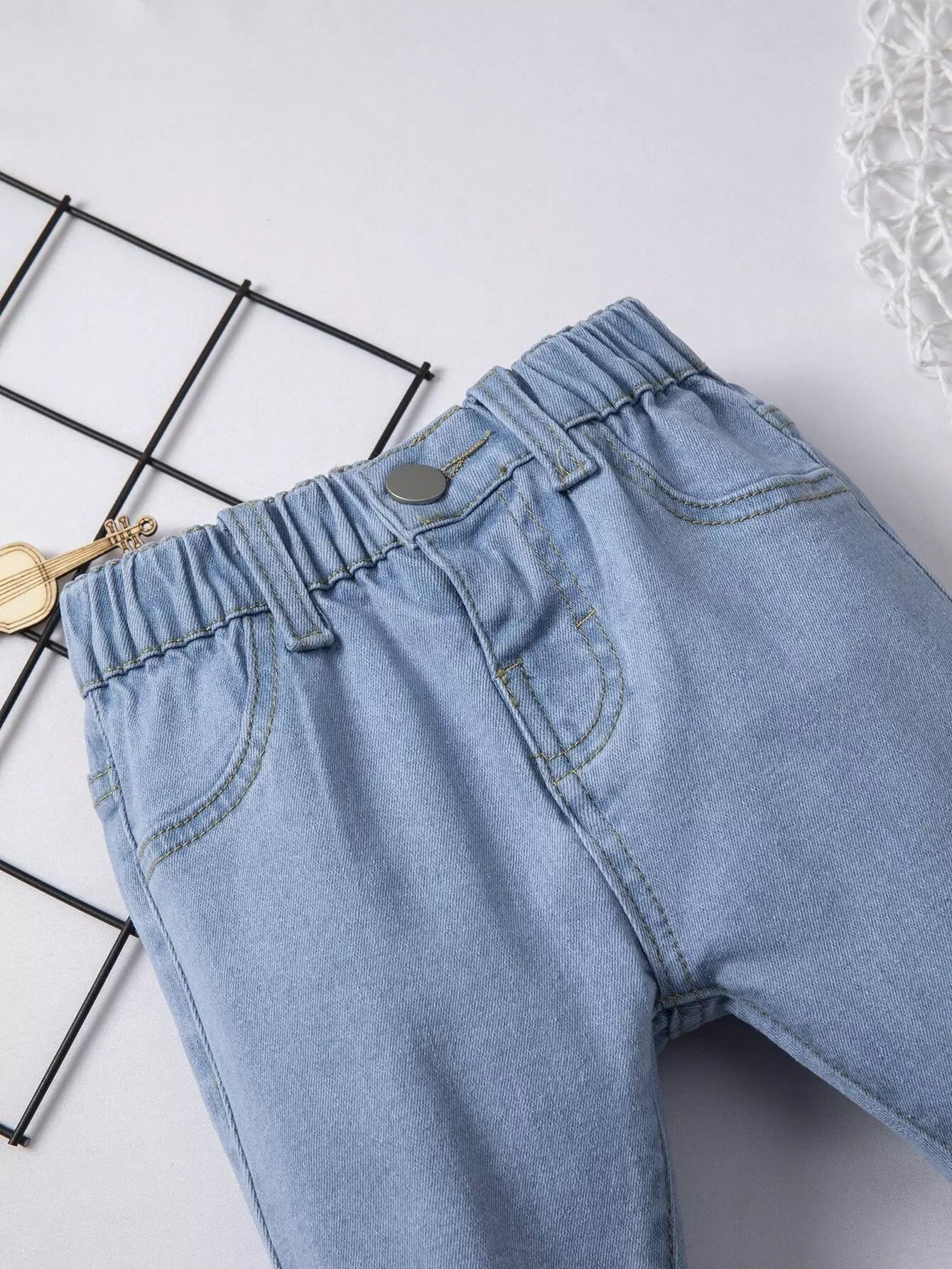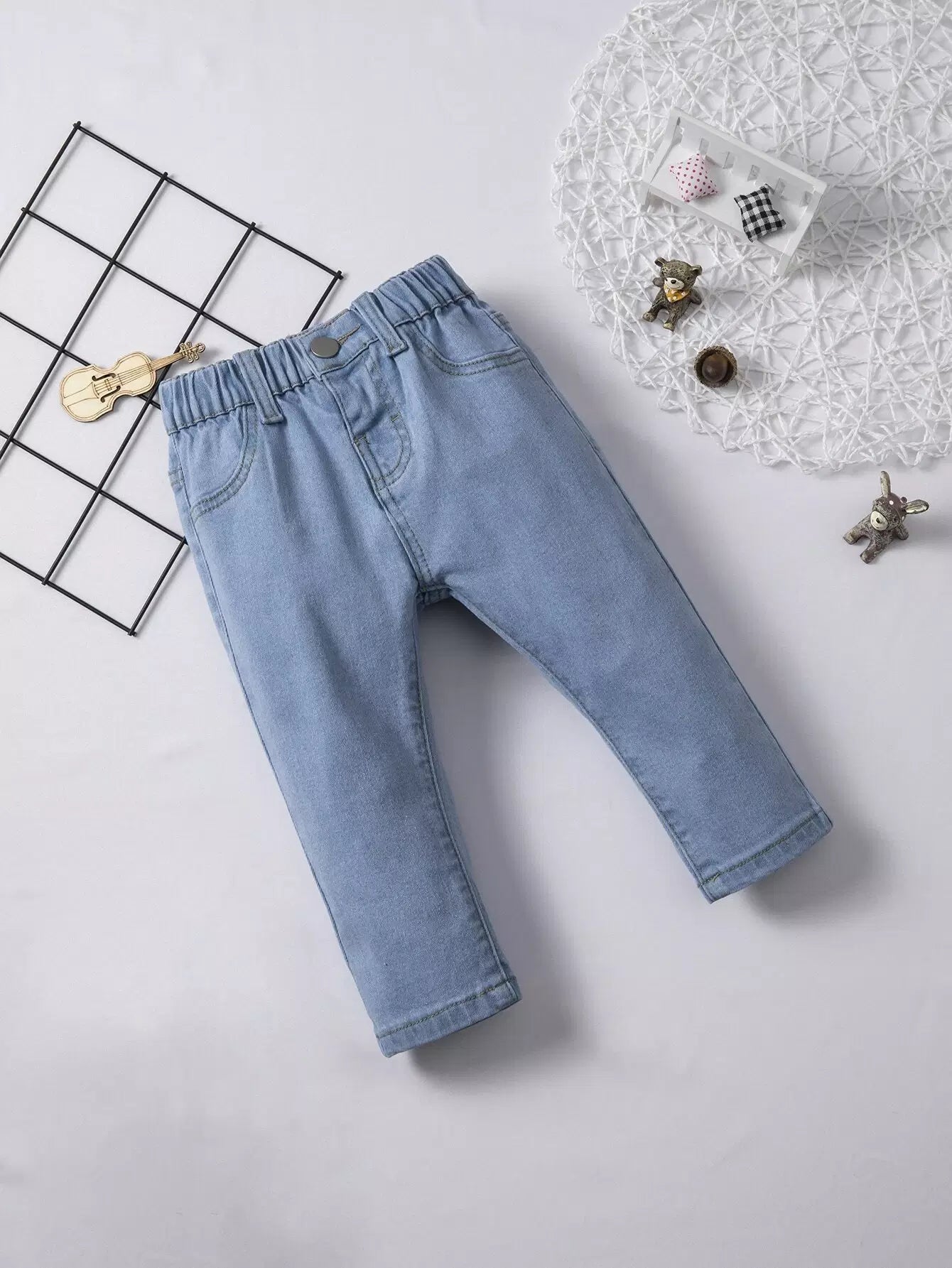 بنطلون جينز بجيب مائل مائل بخصر مرن للأطفال