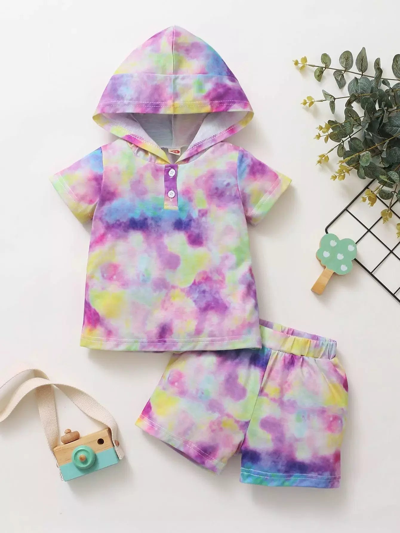 الأطفال - قميص بولو وسروال قصير بغطاء للرأس للجنسين
