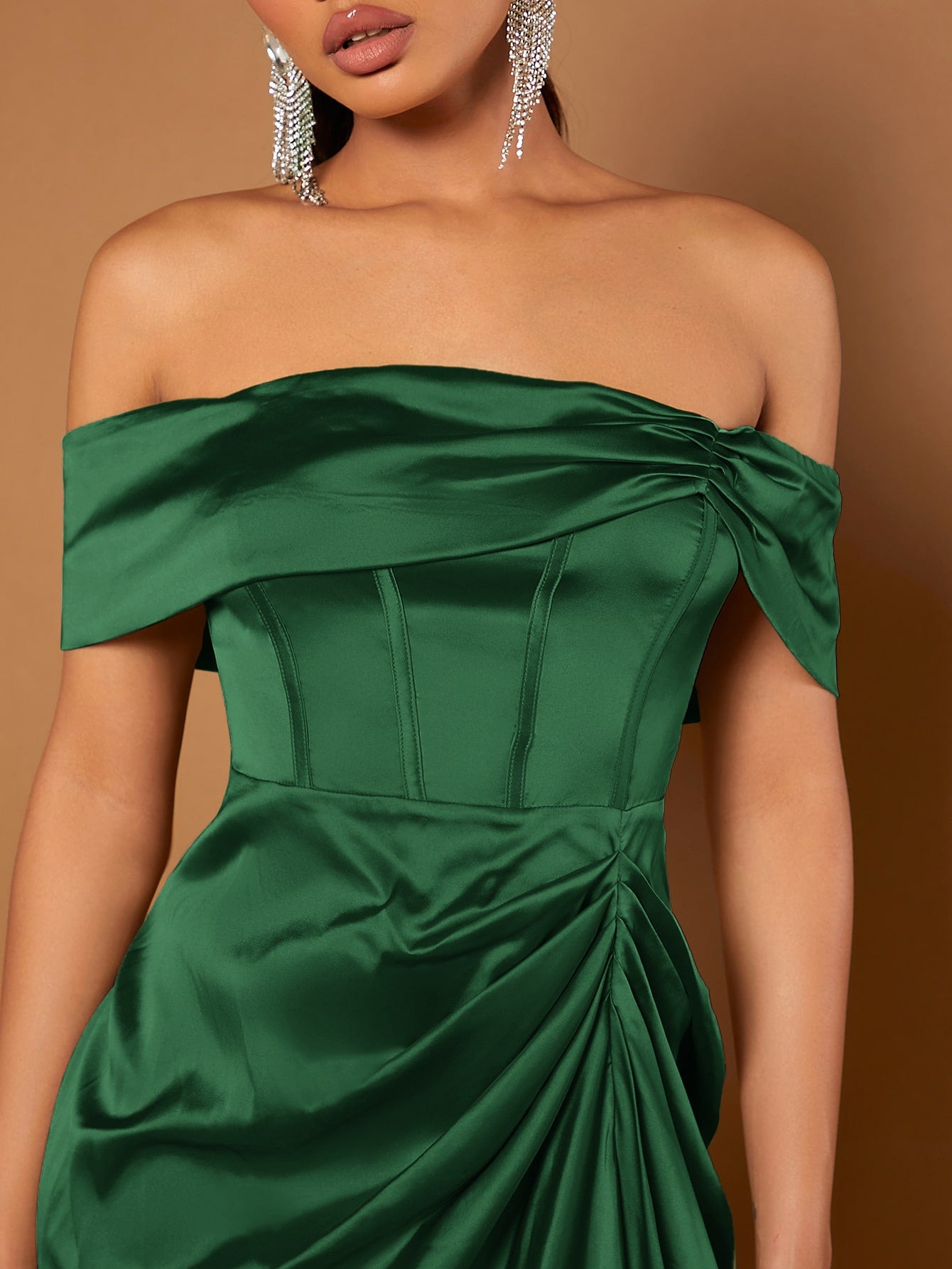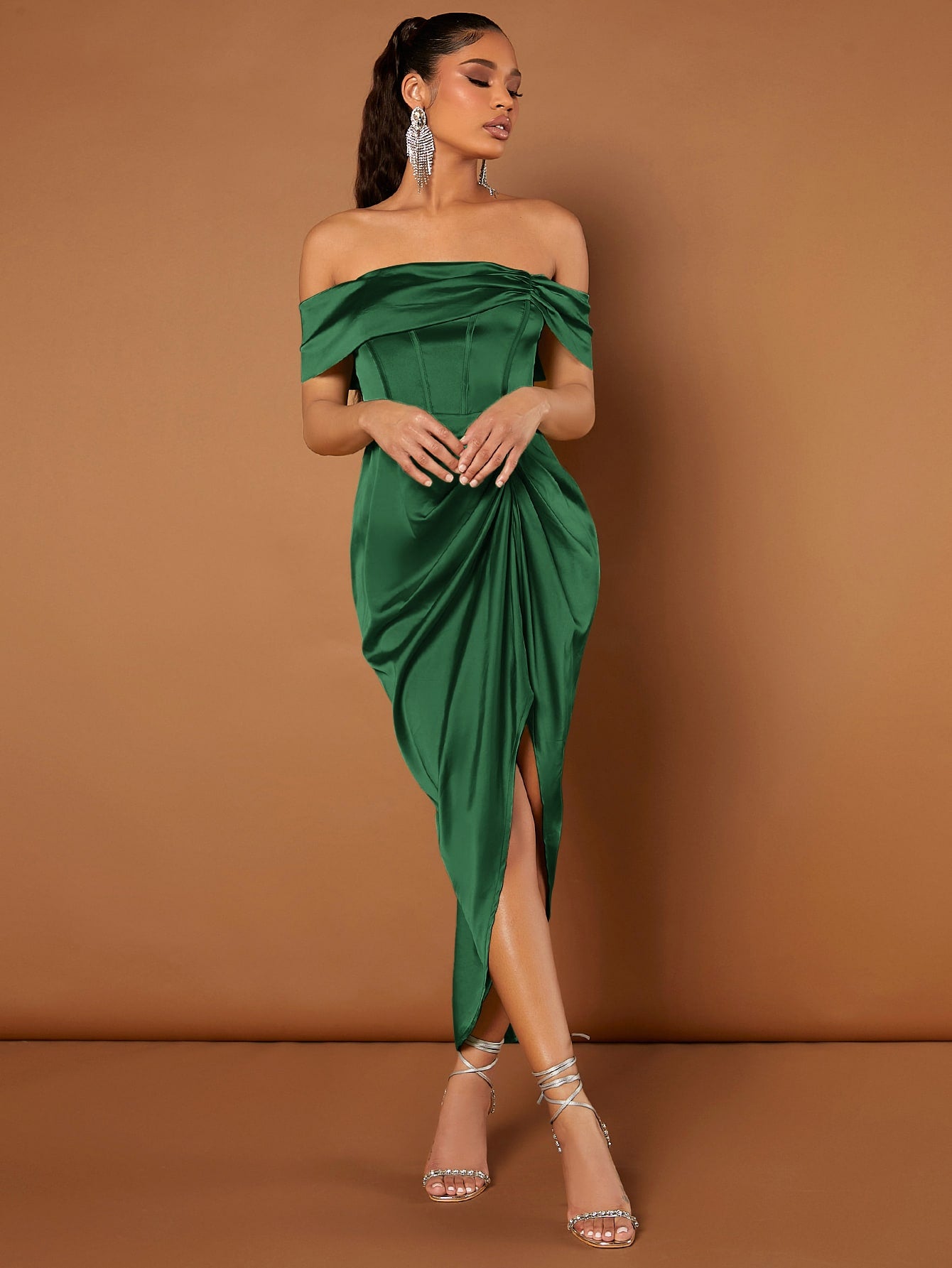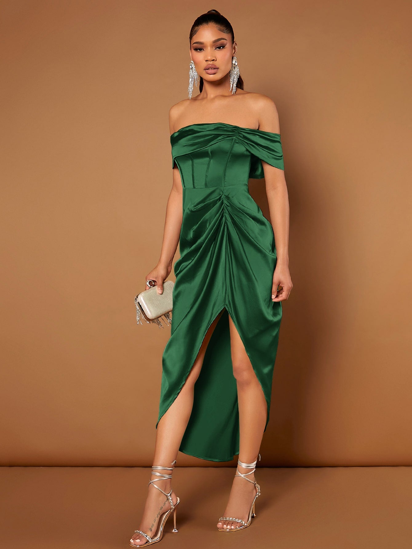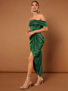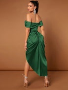 فستان BAE مكشوف الكتفين بحافة غير متماثلة مكشكشة