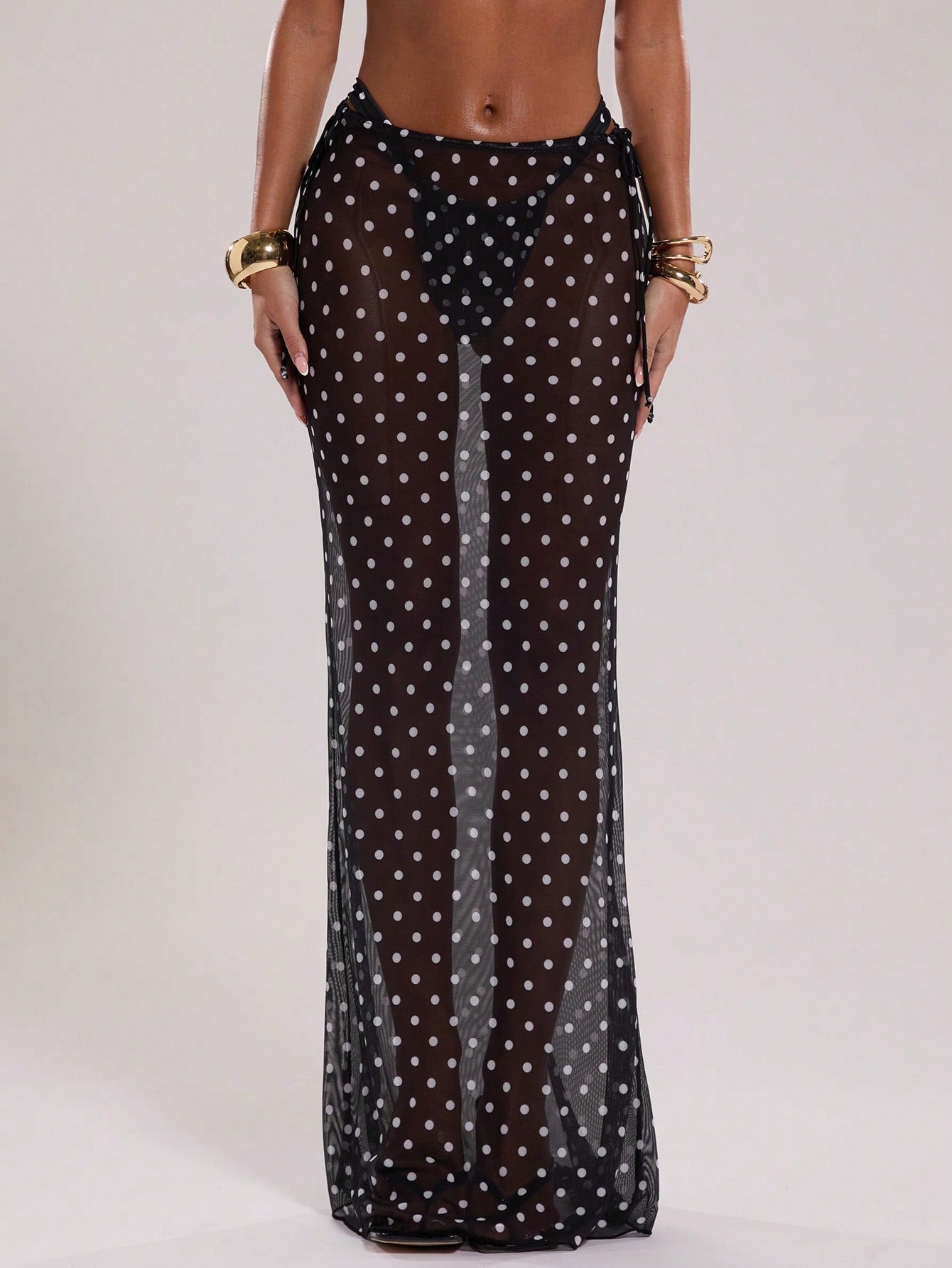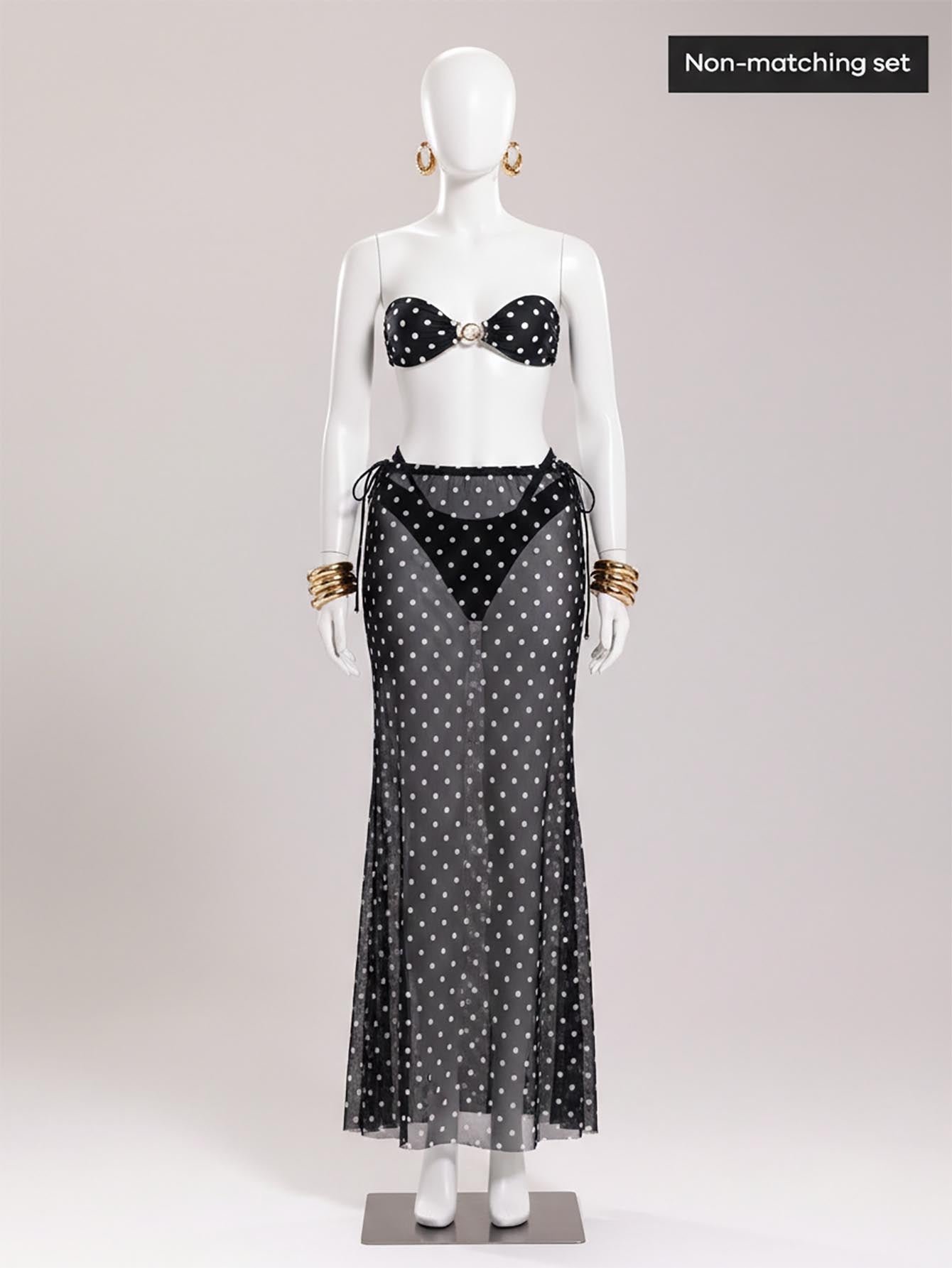 ملابس سباحة نسائية جديدة من BAE، باللونين الأسود والأبيض، منقطة، بخصر منخفض ورباط، مناسبة للمنتجعات