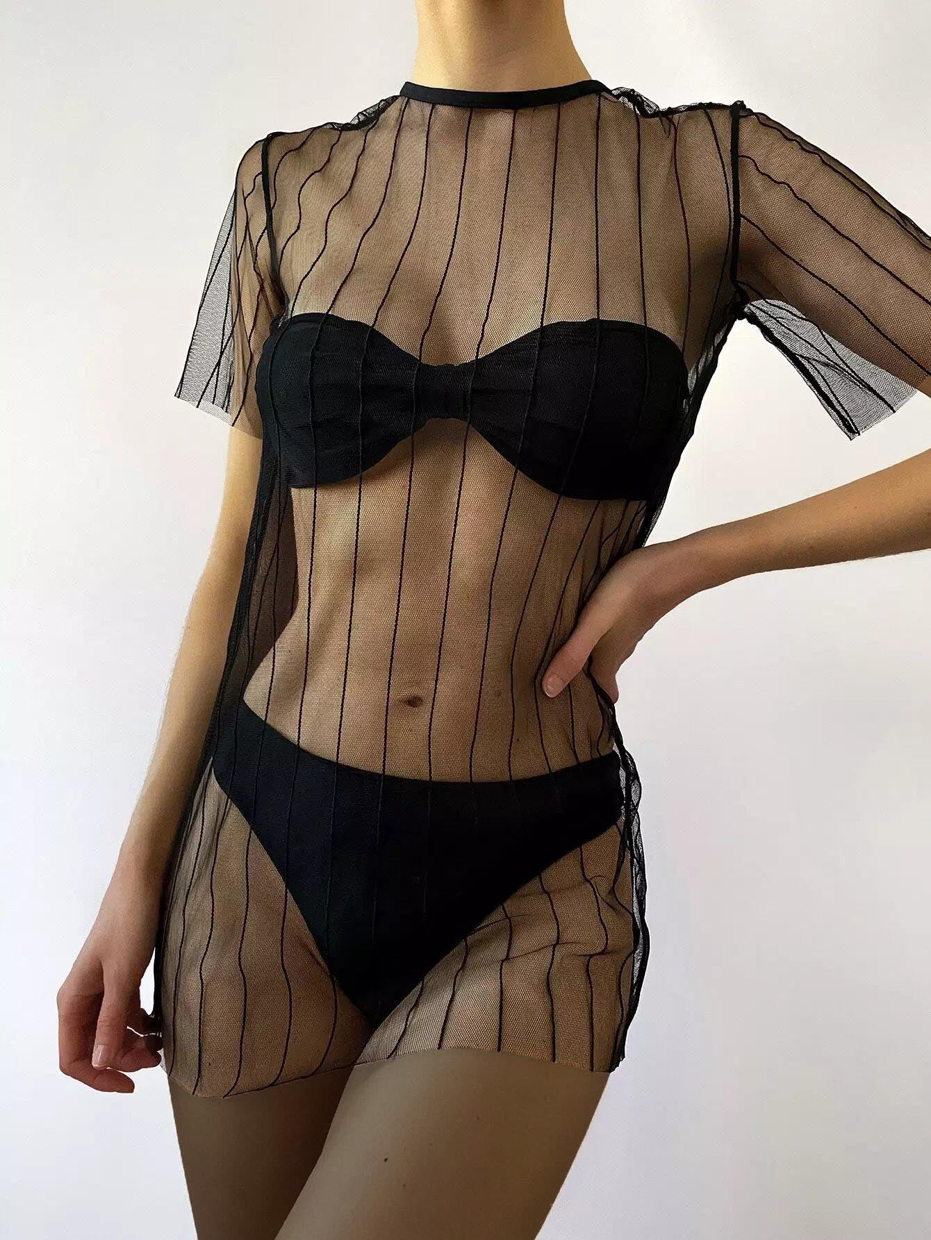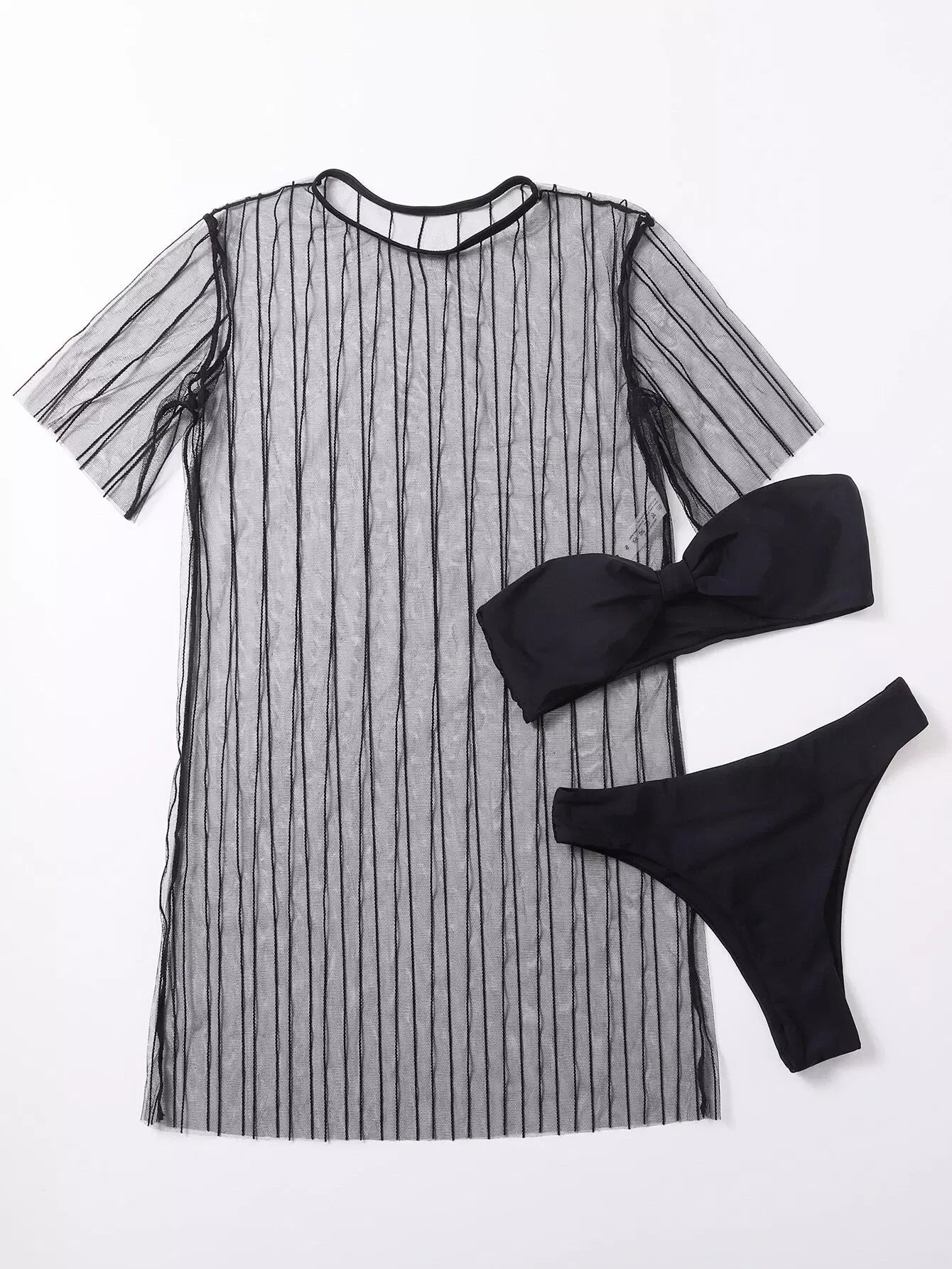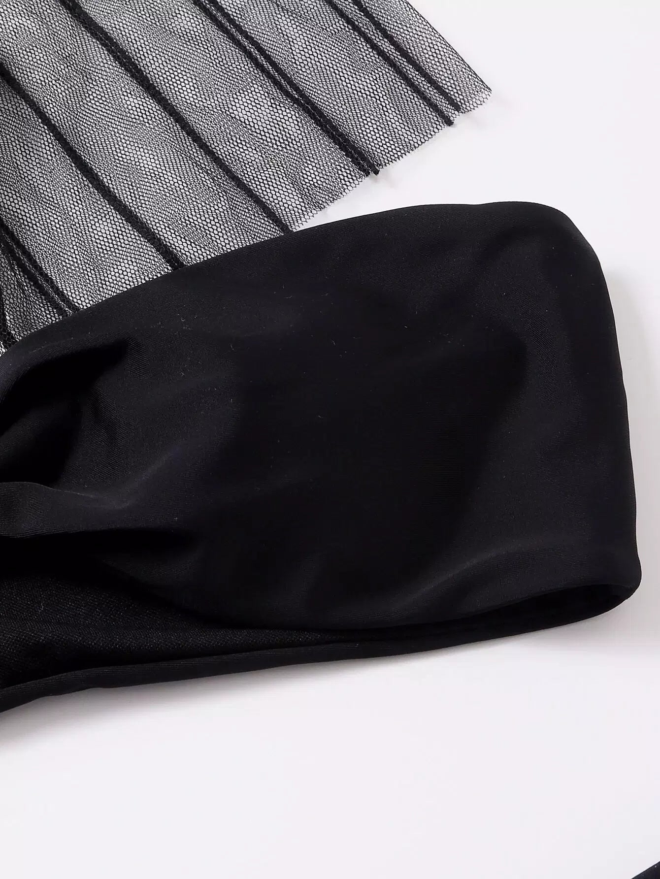 بدلة سباحة بيكيني بعصابة مع غطاء شبكي
