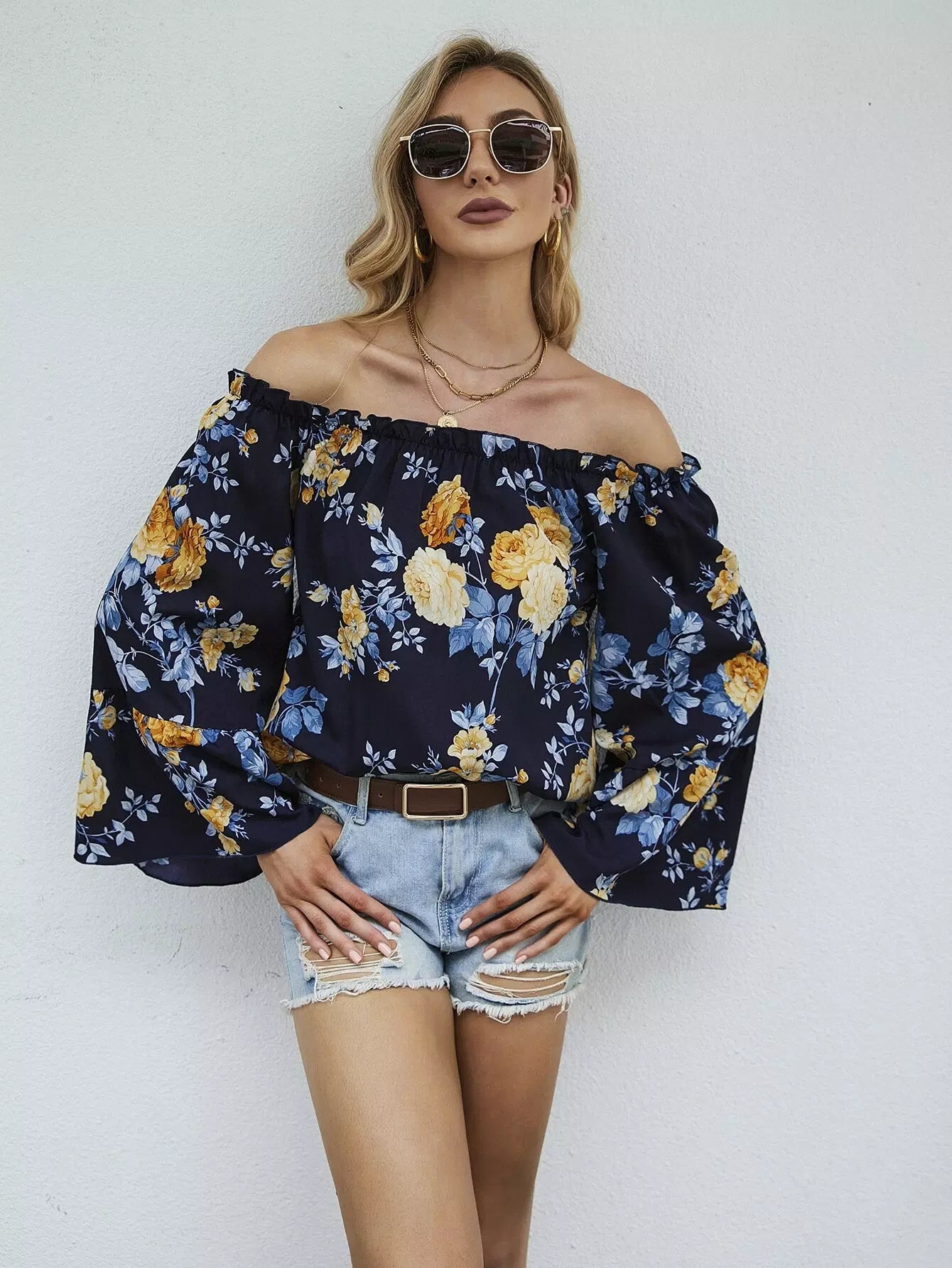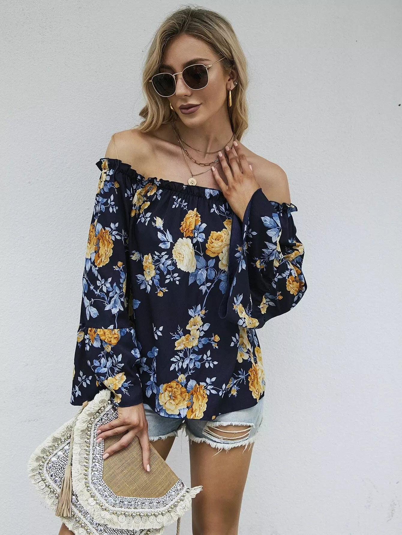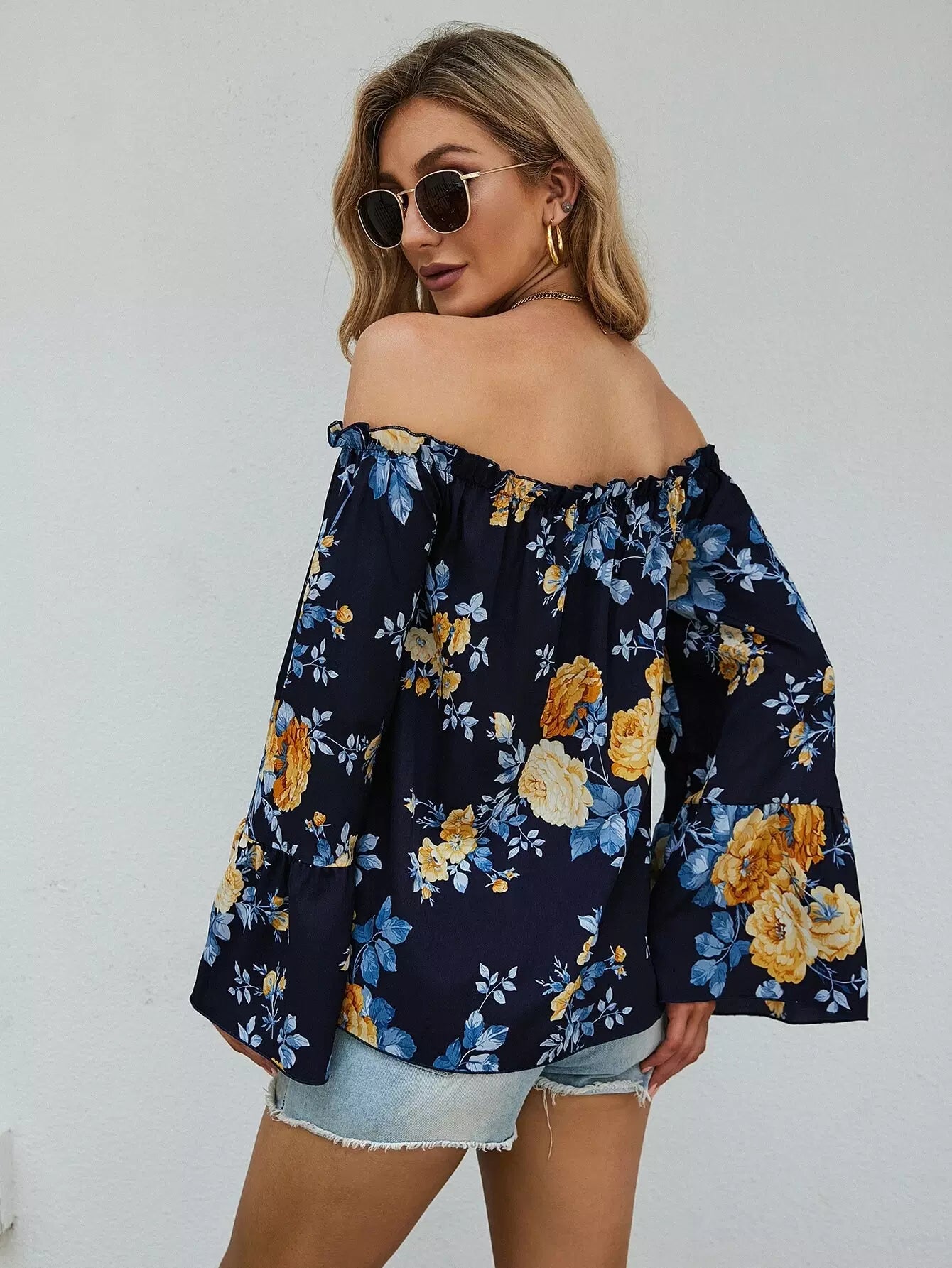 بلوزة بأكمام منفوشة بطبعة زهور باردو