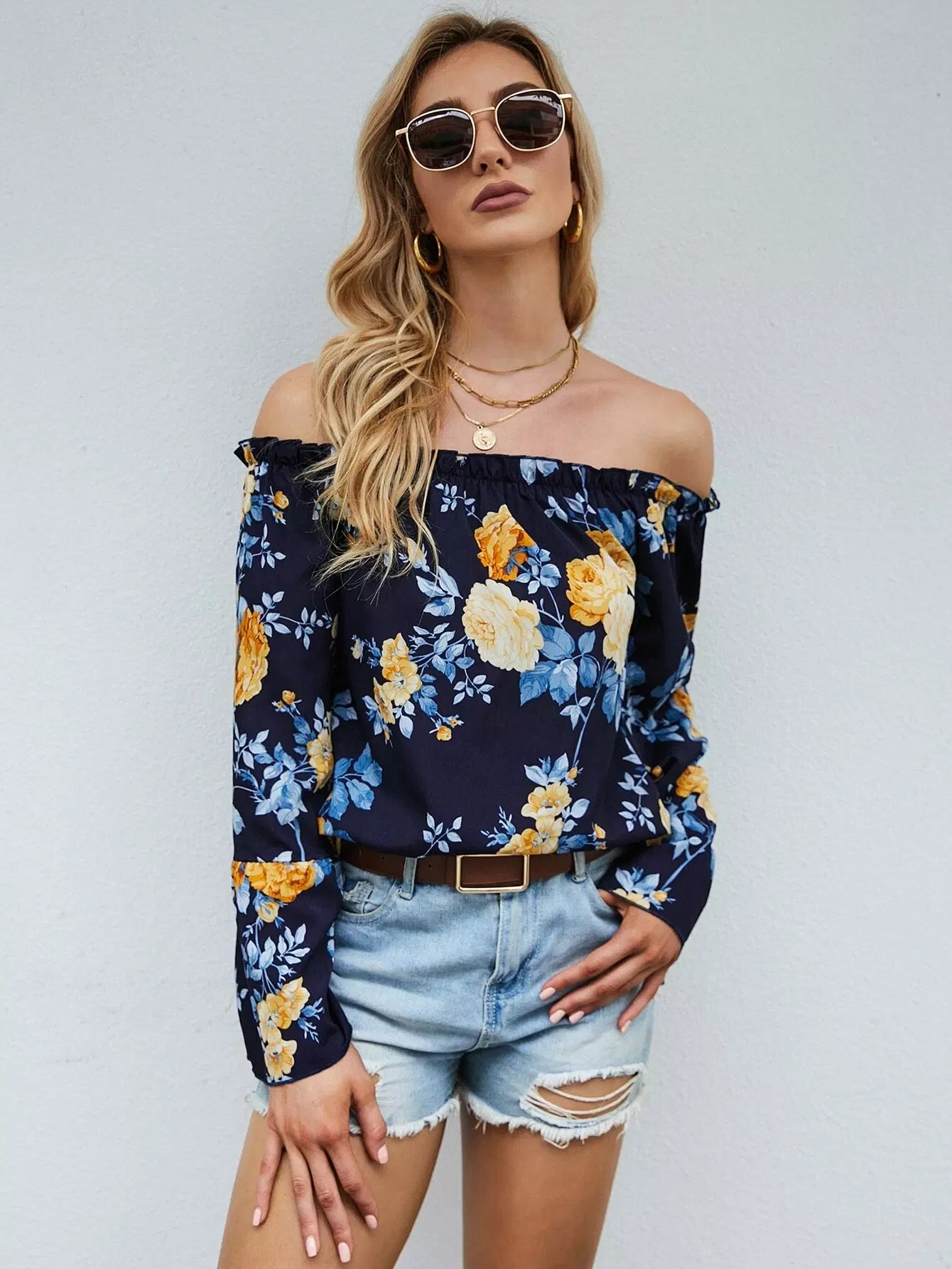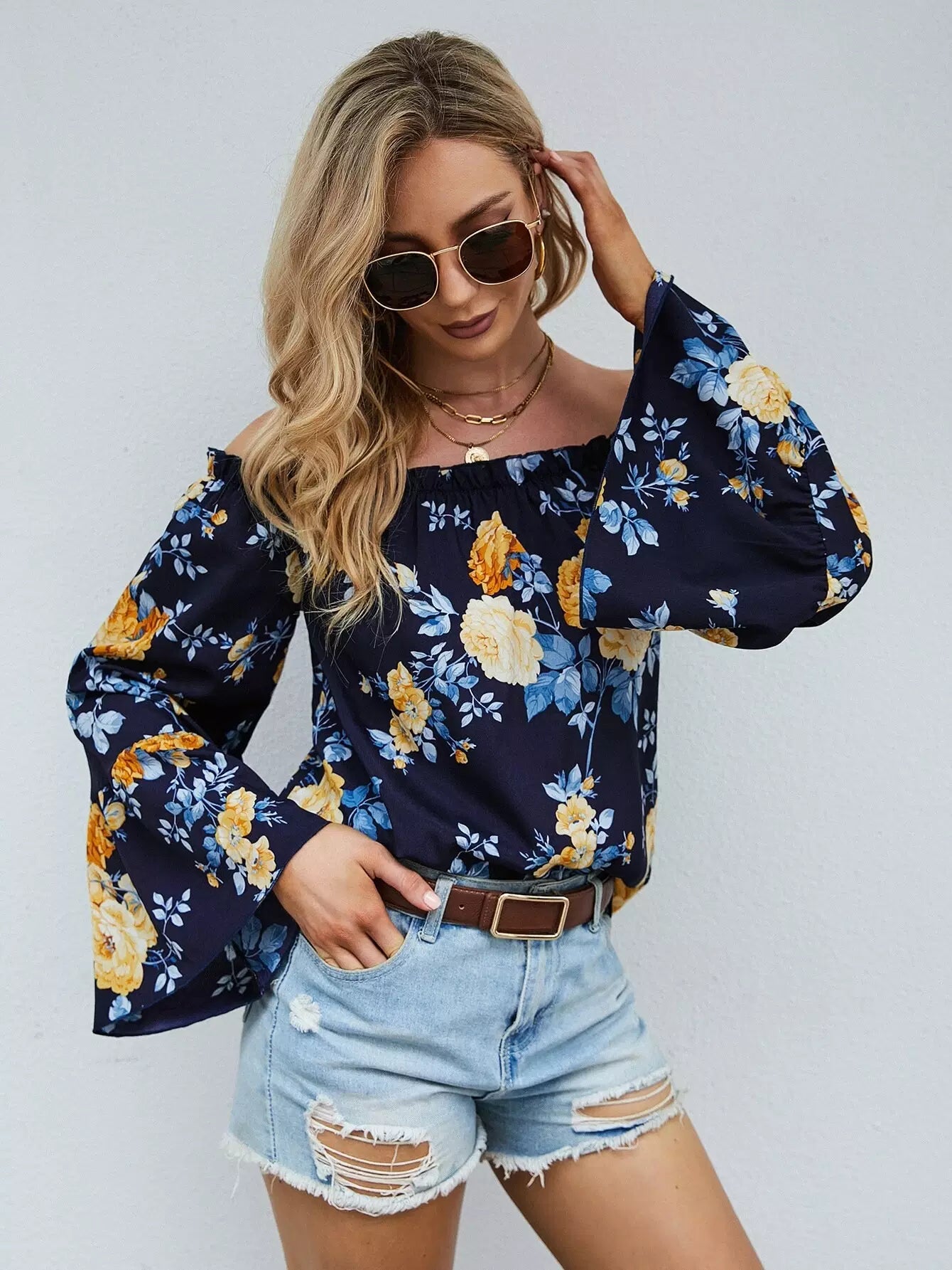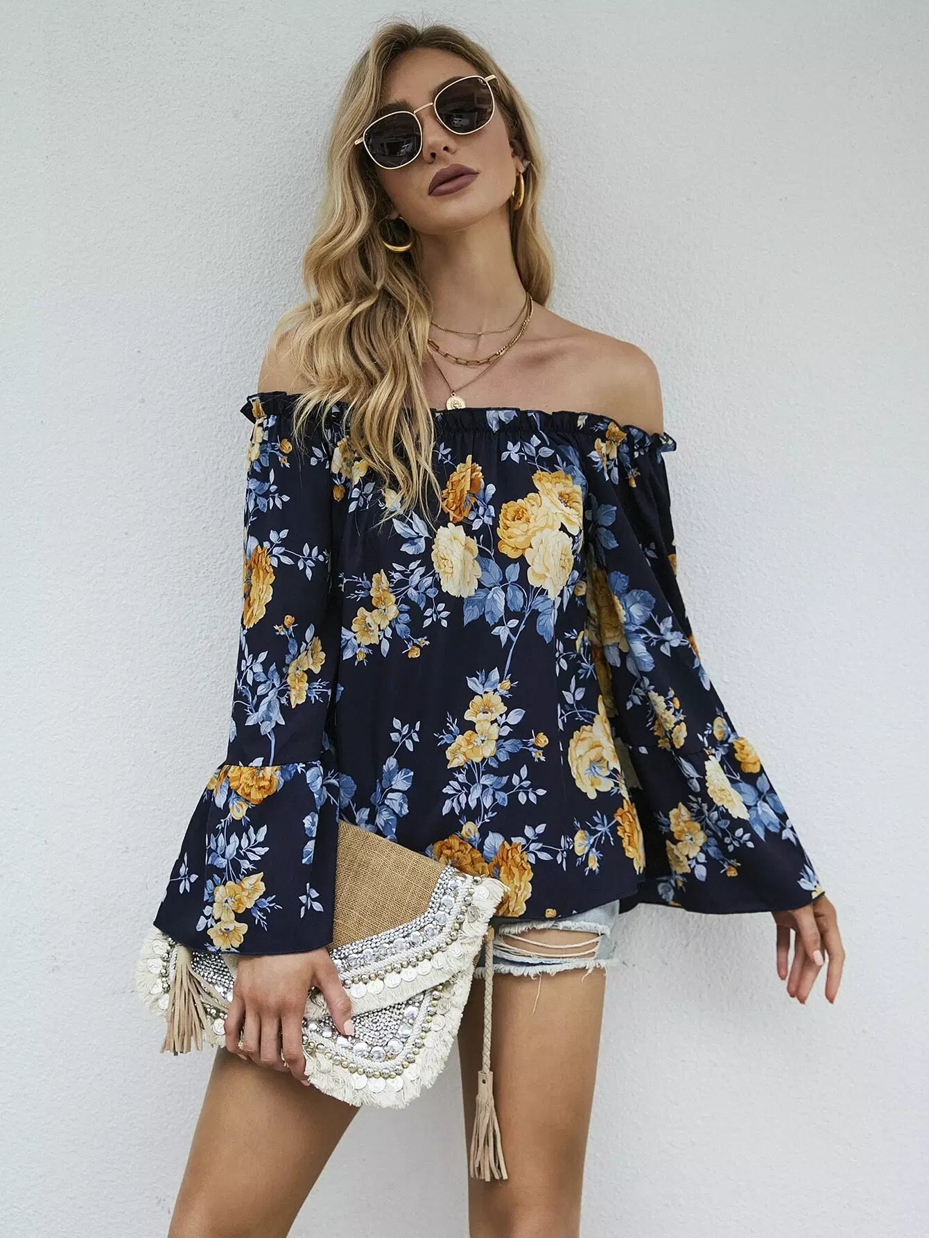 بلوزة بأكمام منفوشة بطبعة زهور باردو