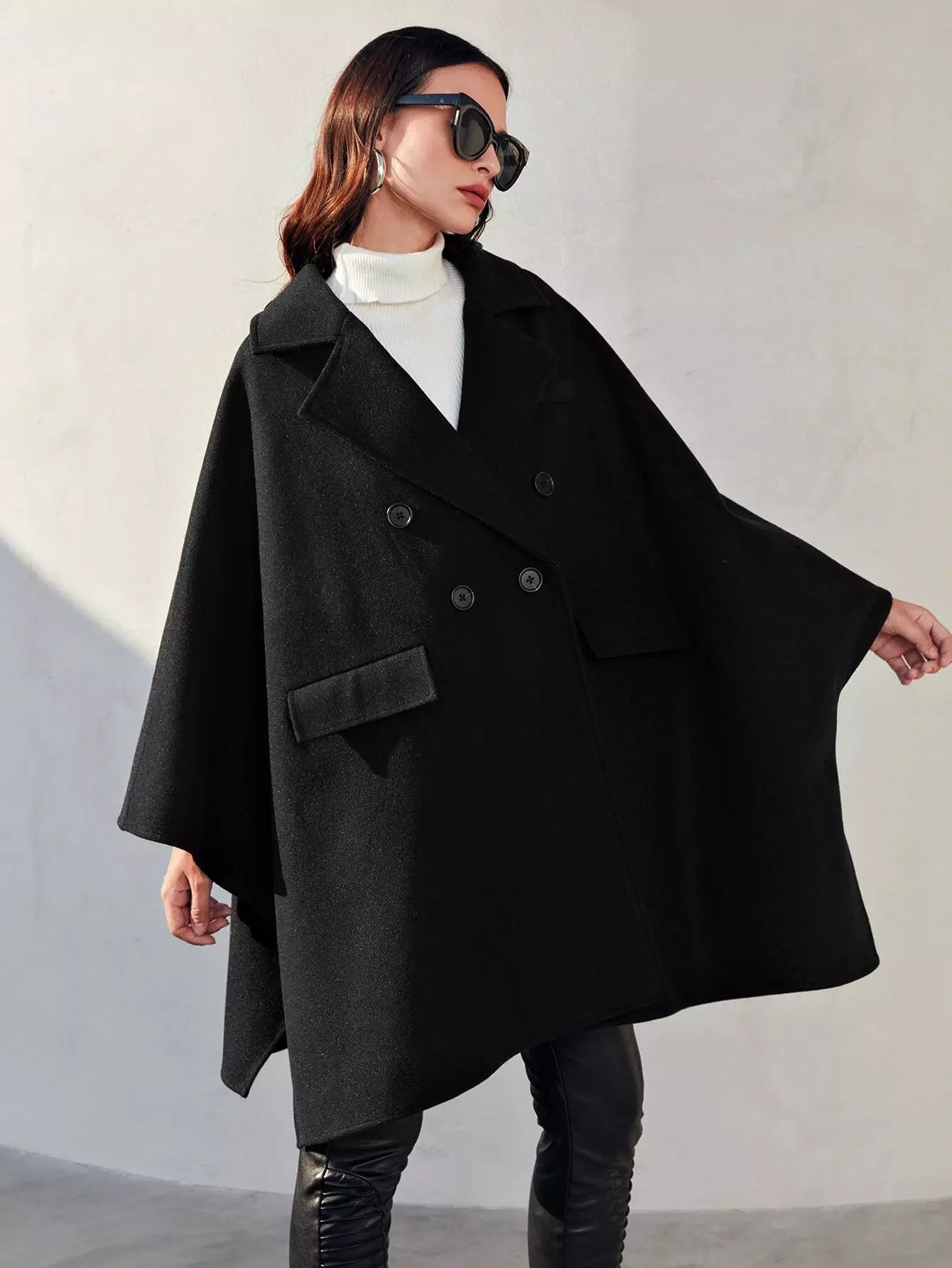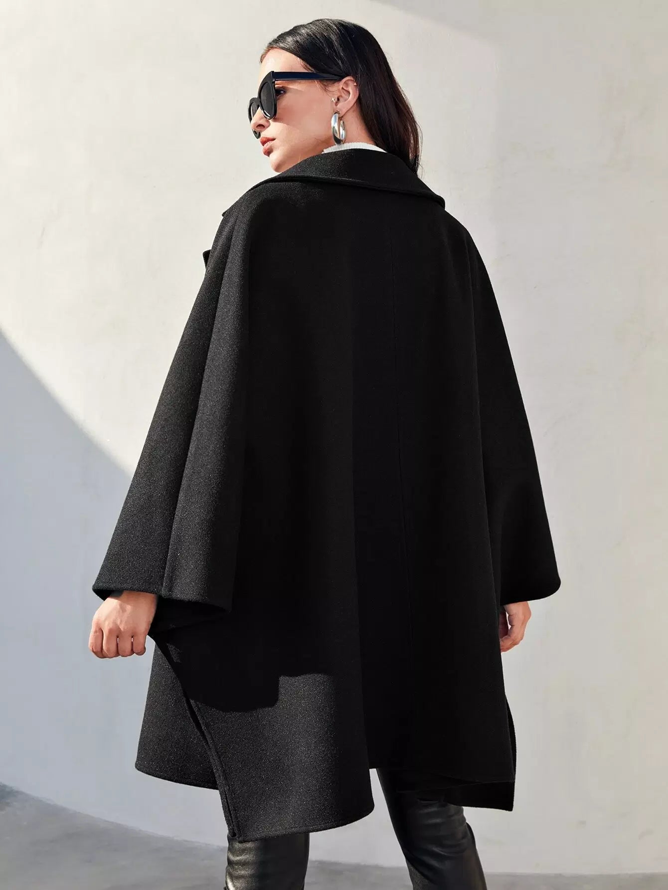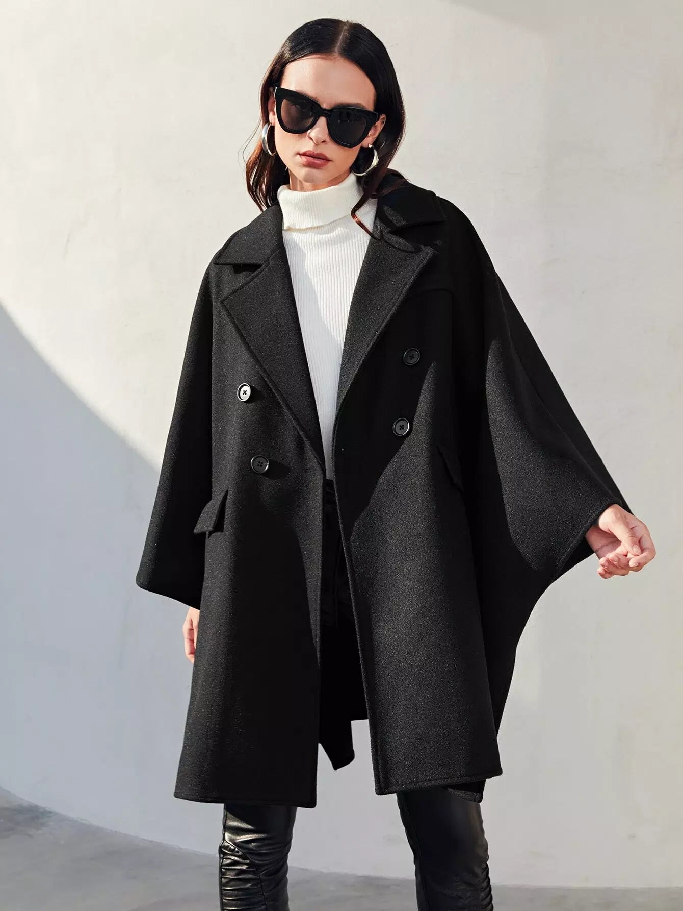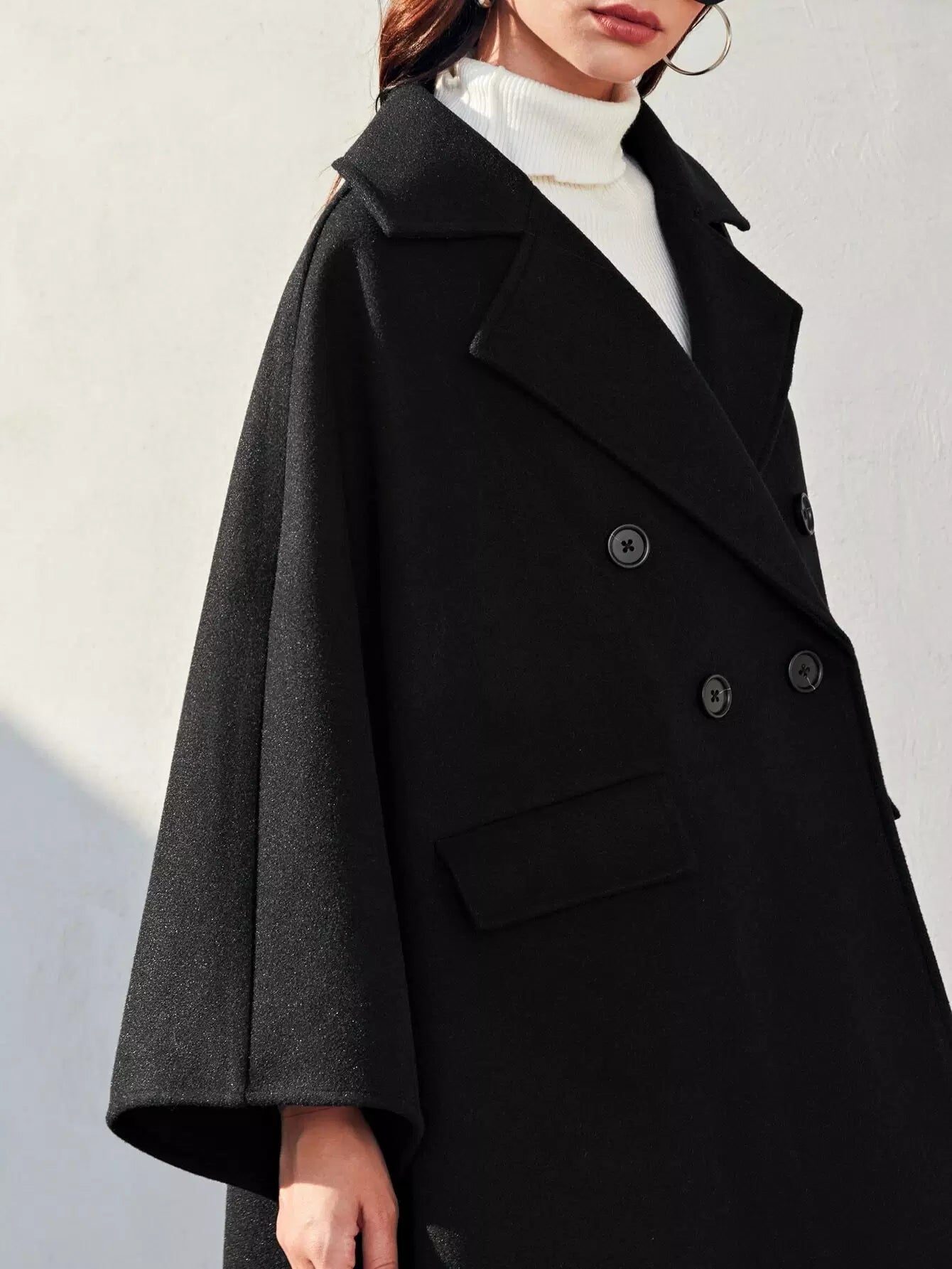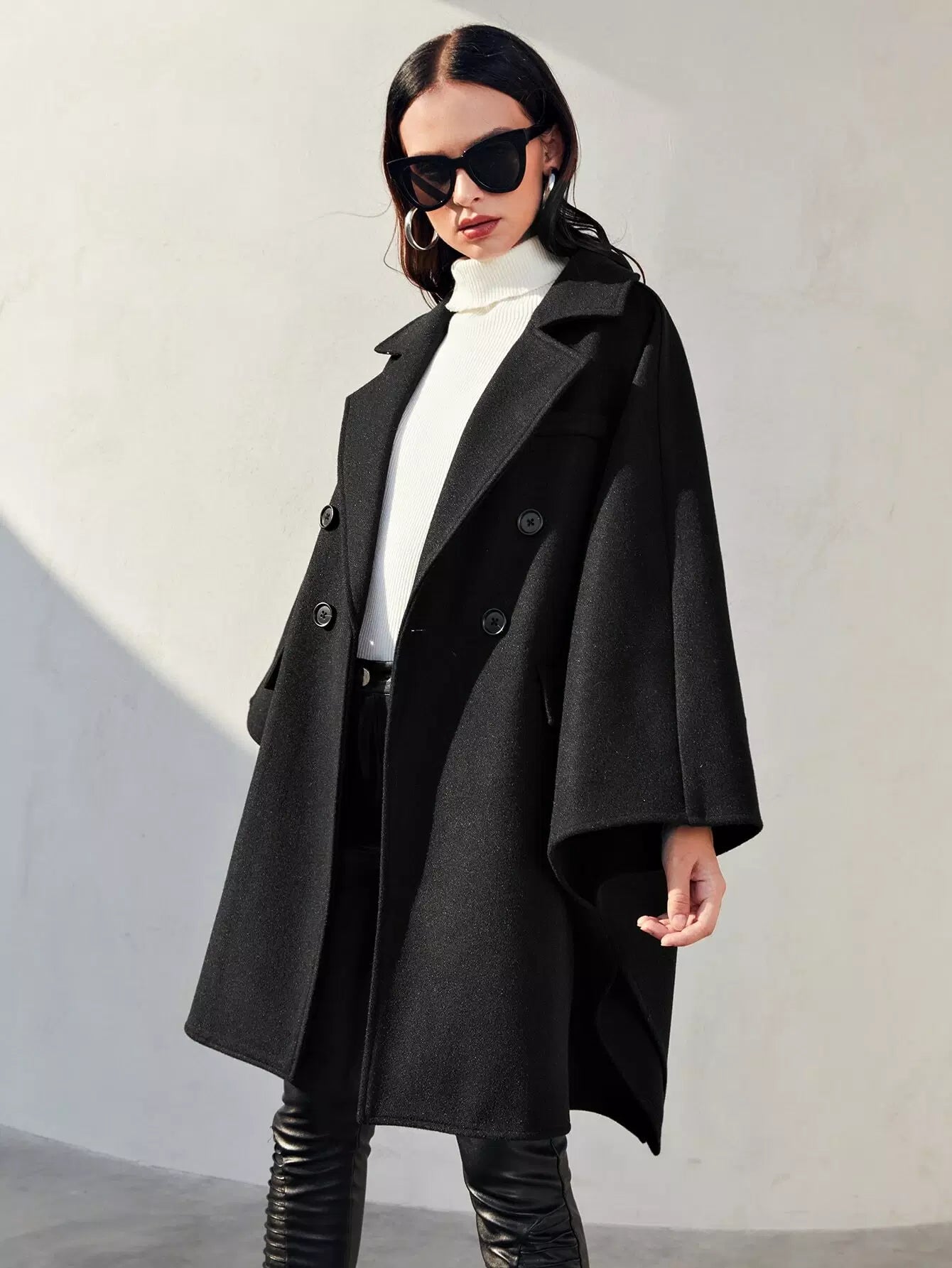 معطف بأكمام باتوينغ بأزرار مزدوجة أمامية بأزرار مزدوجة