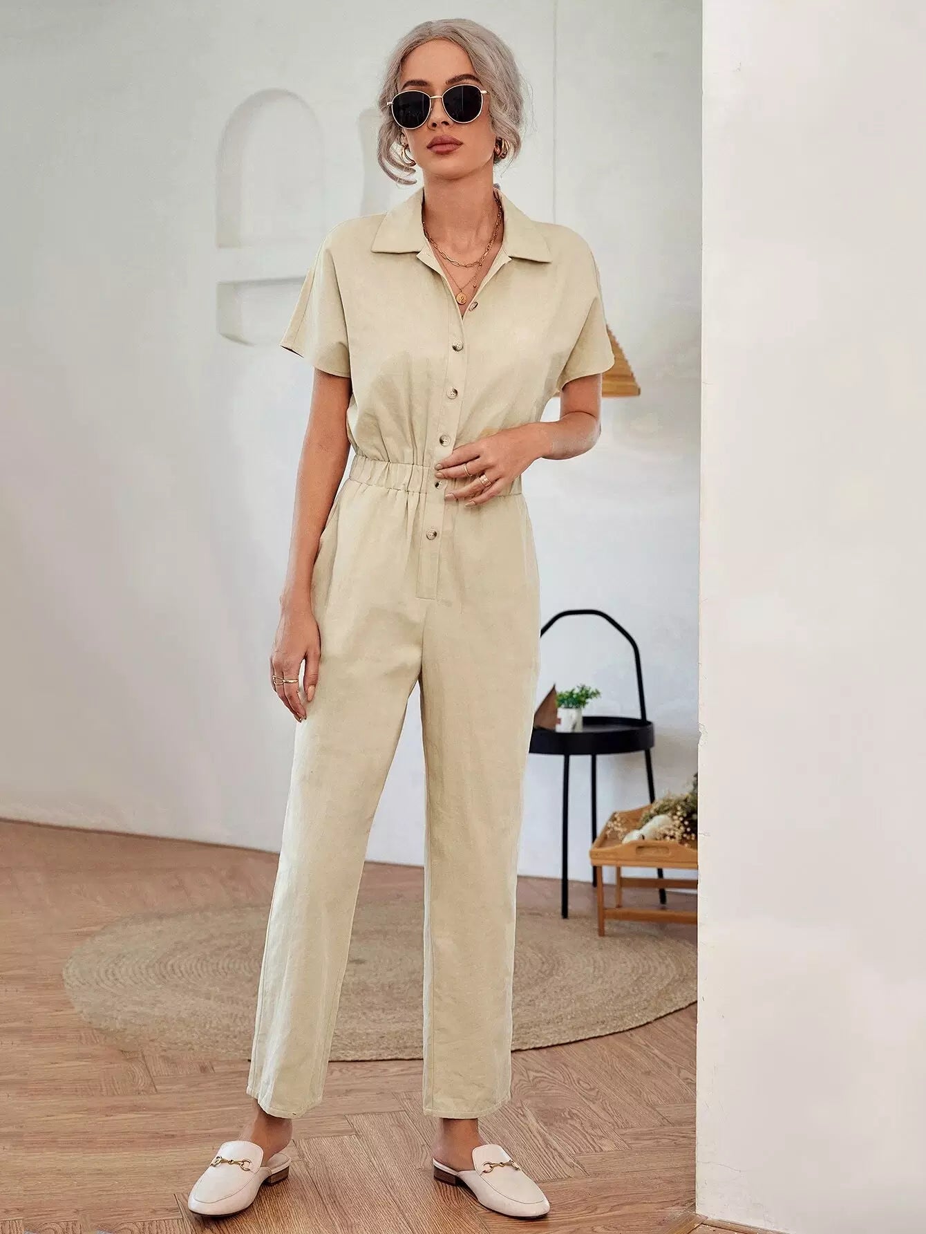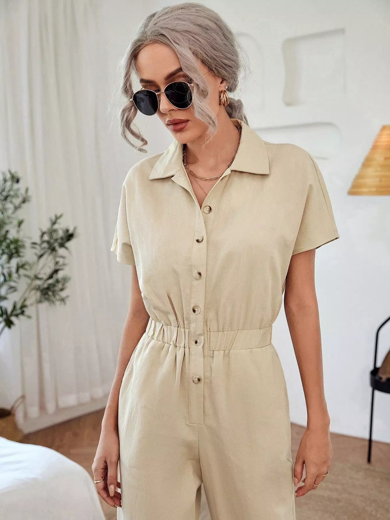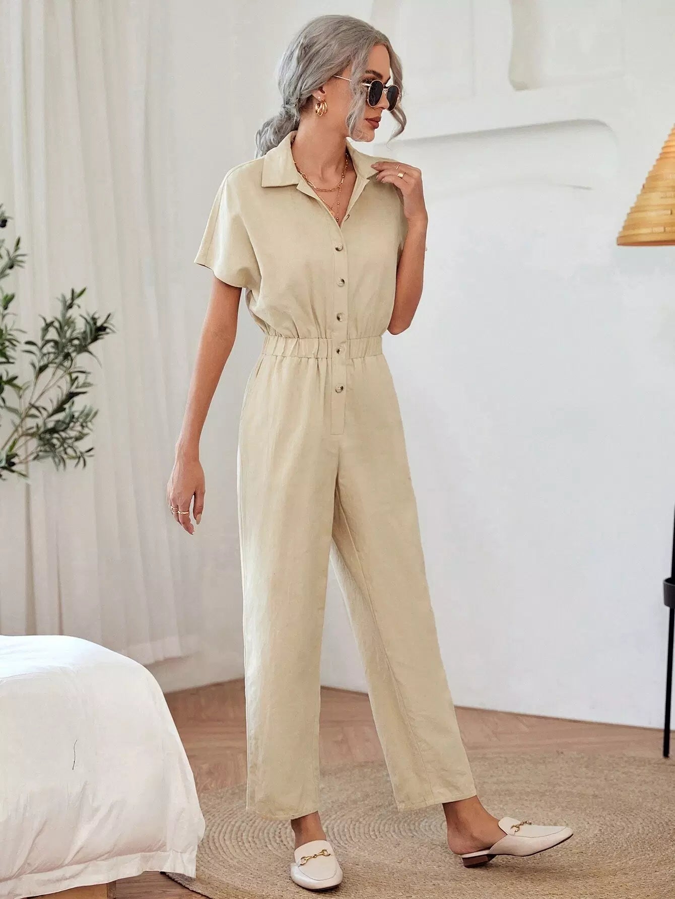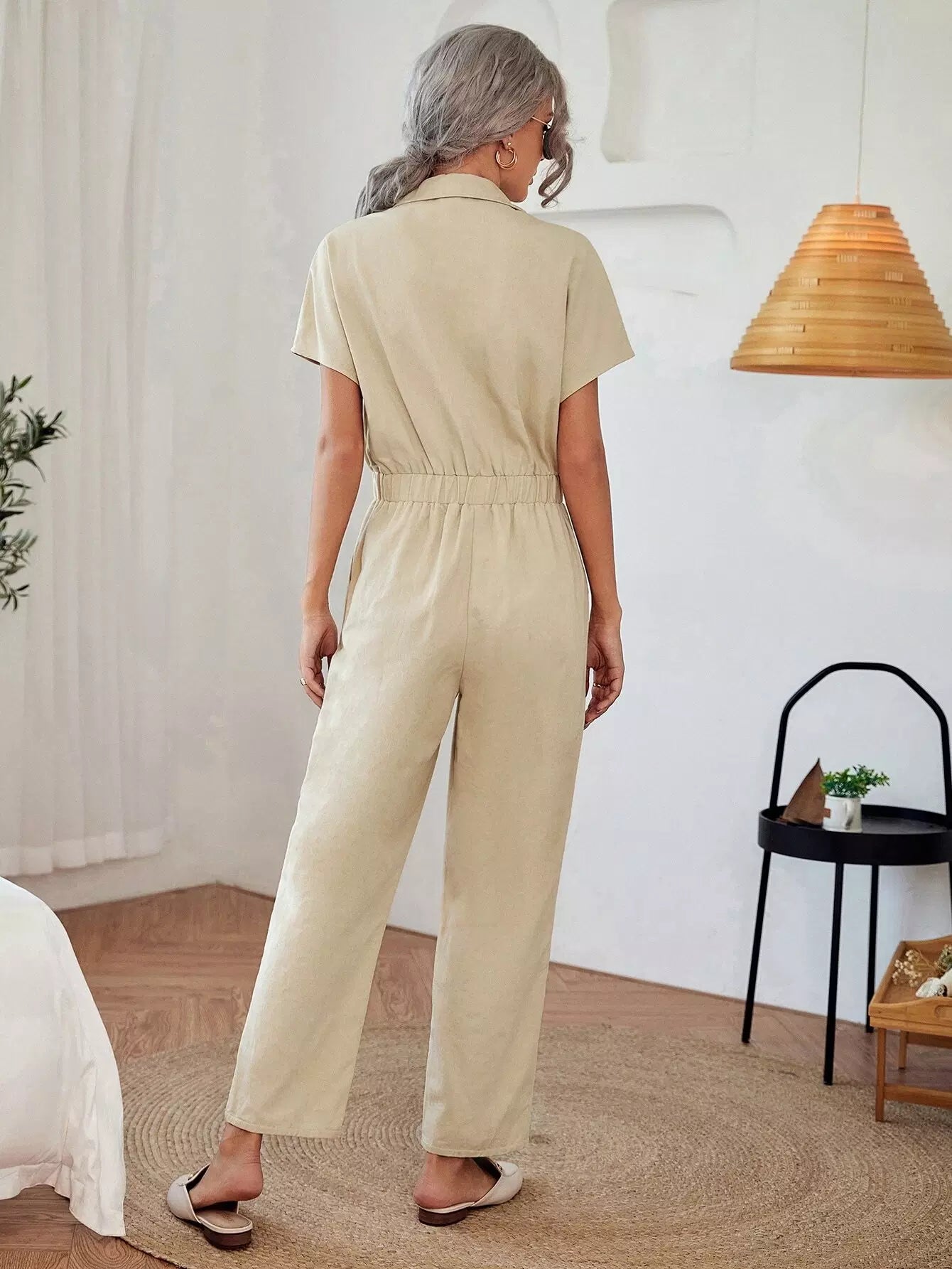 جمبسوت بأكمام طويلة وخصر مائل مرن وجيب مائل