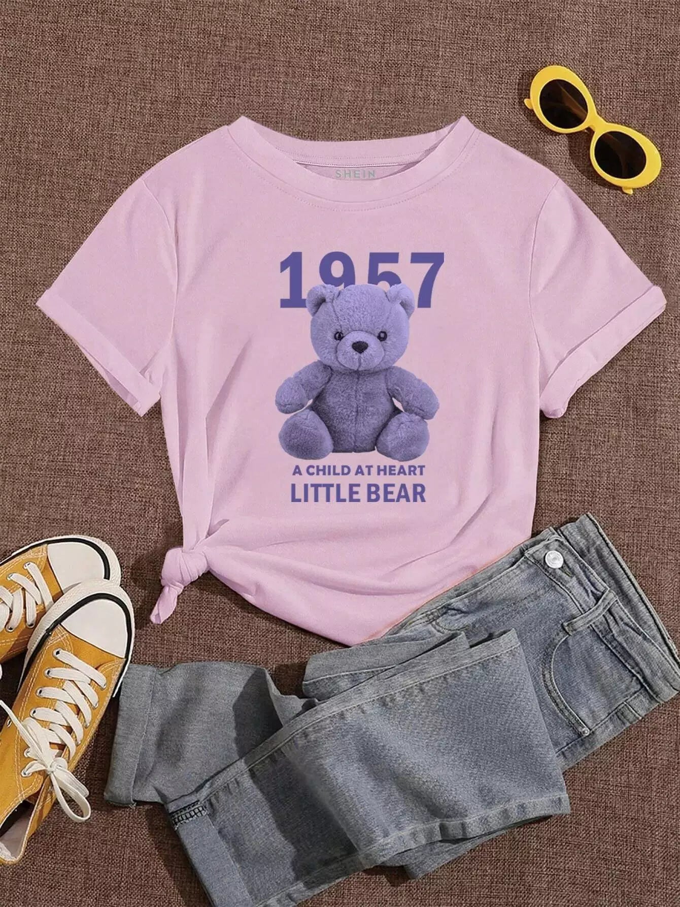 تي شيرت دمية دب وشعار جرافيك