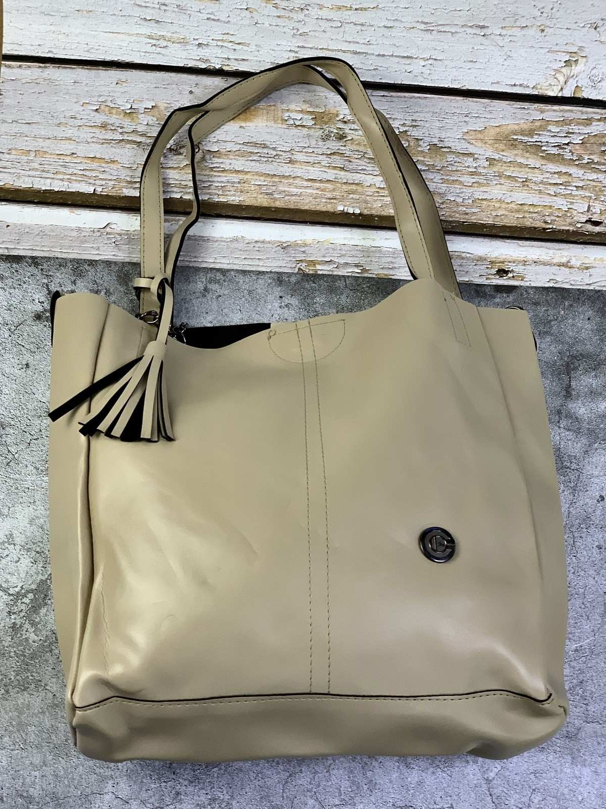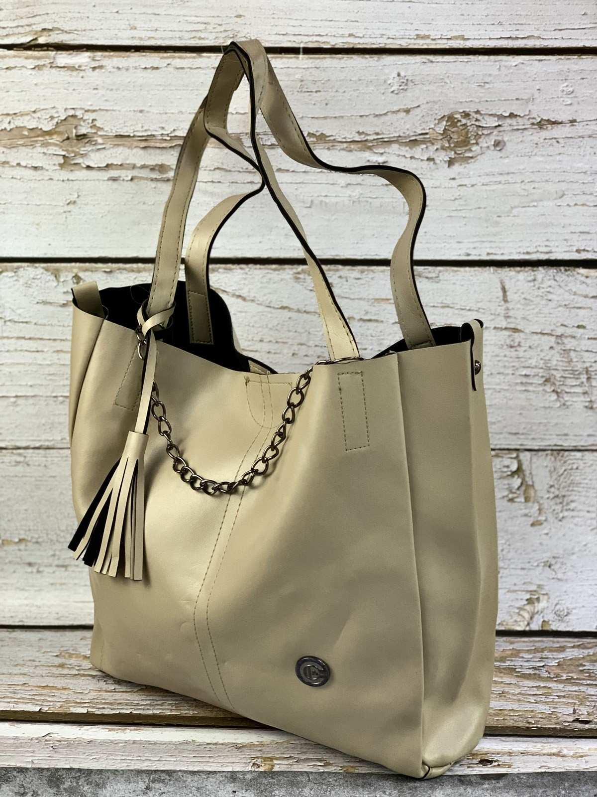 للنساء - حقيبة باللون البيج مع أحزمة جلدية