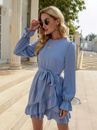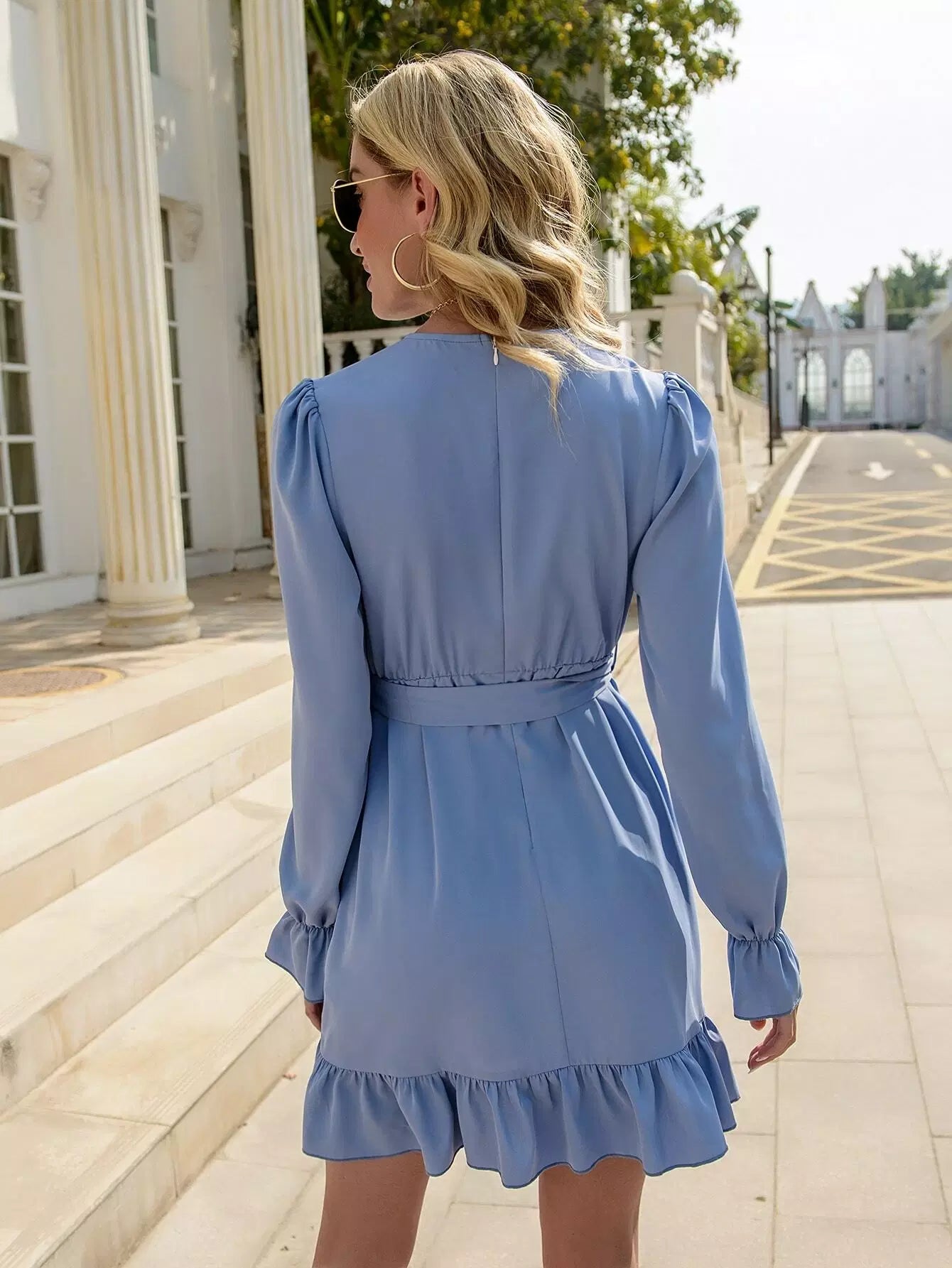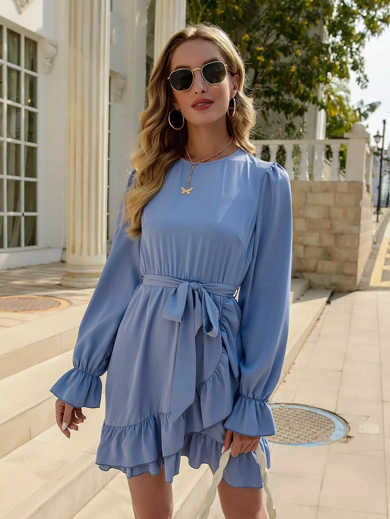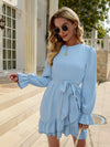 فستان بحاشية مكشكشة وأكمام جرس بدون حزام
