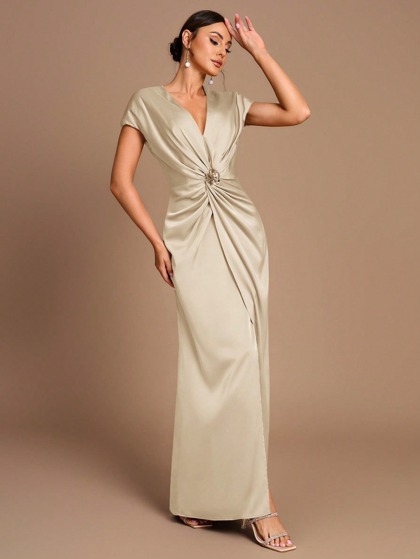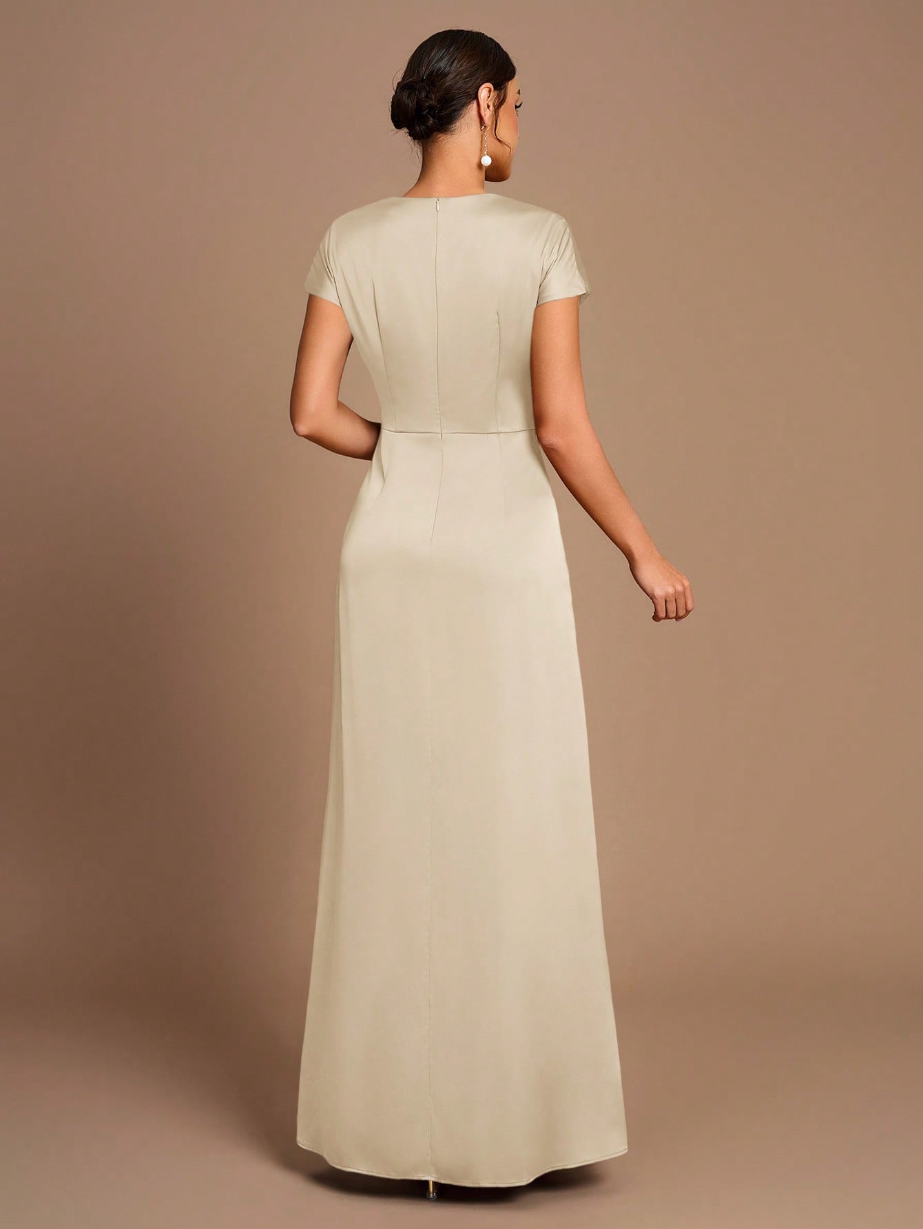 فستان وصيفة العروس بيل الأنيق الرومانسي بلون القهوة بأكمام مطوية وفتحة جانبية على شكل حرف A