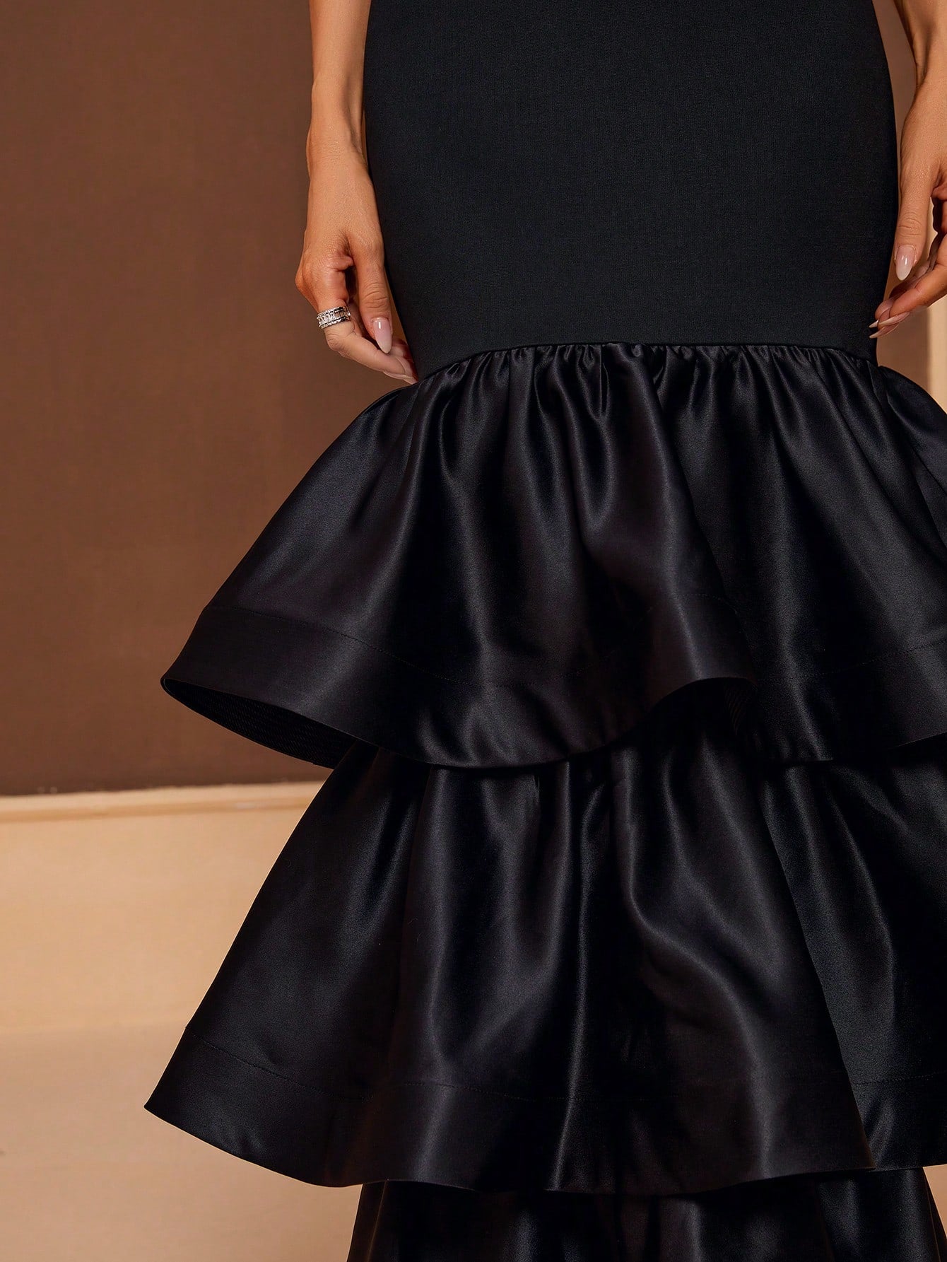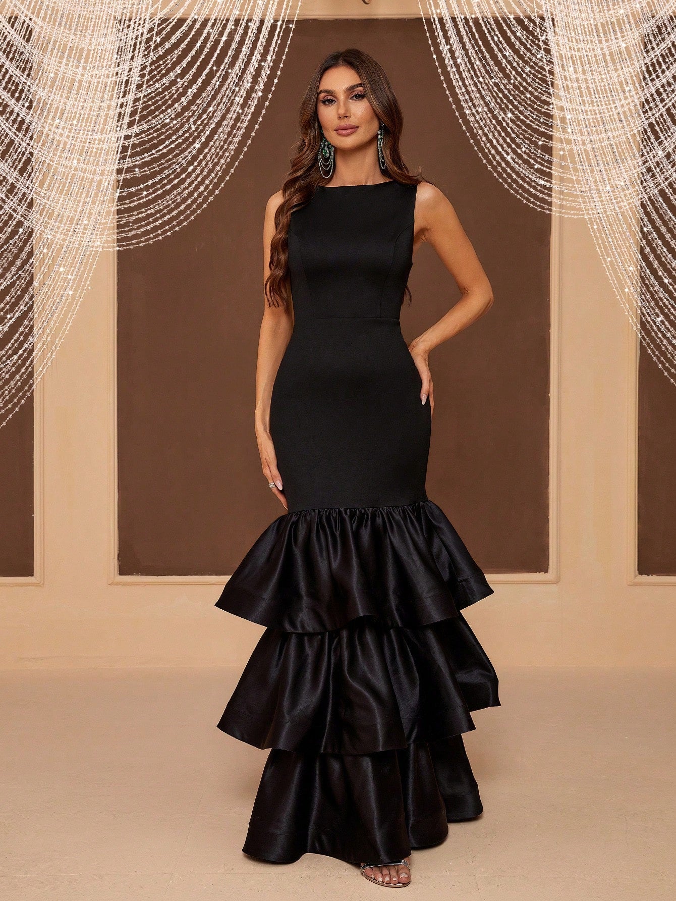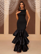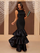 فستان سهرة نسائي من بيل، بتصميم متعدد الطبقات وقماش مرقع، فستان عشاء أسود أنيق لحفلات التخرج الرسمية
