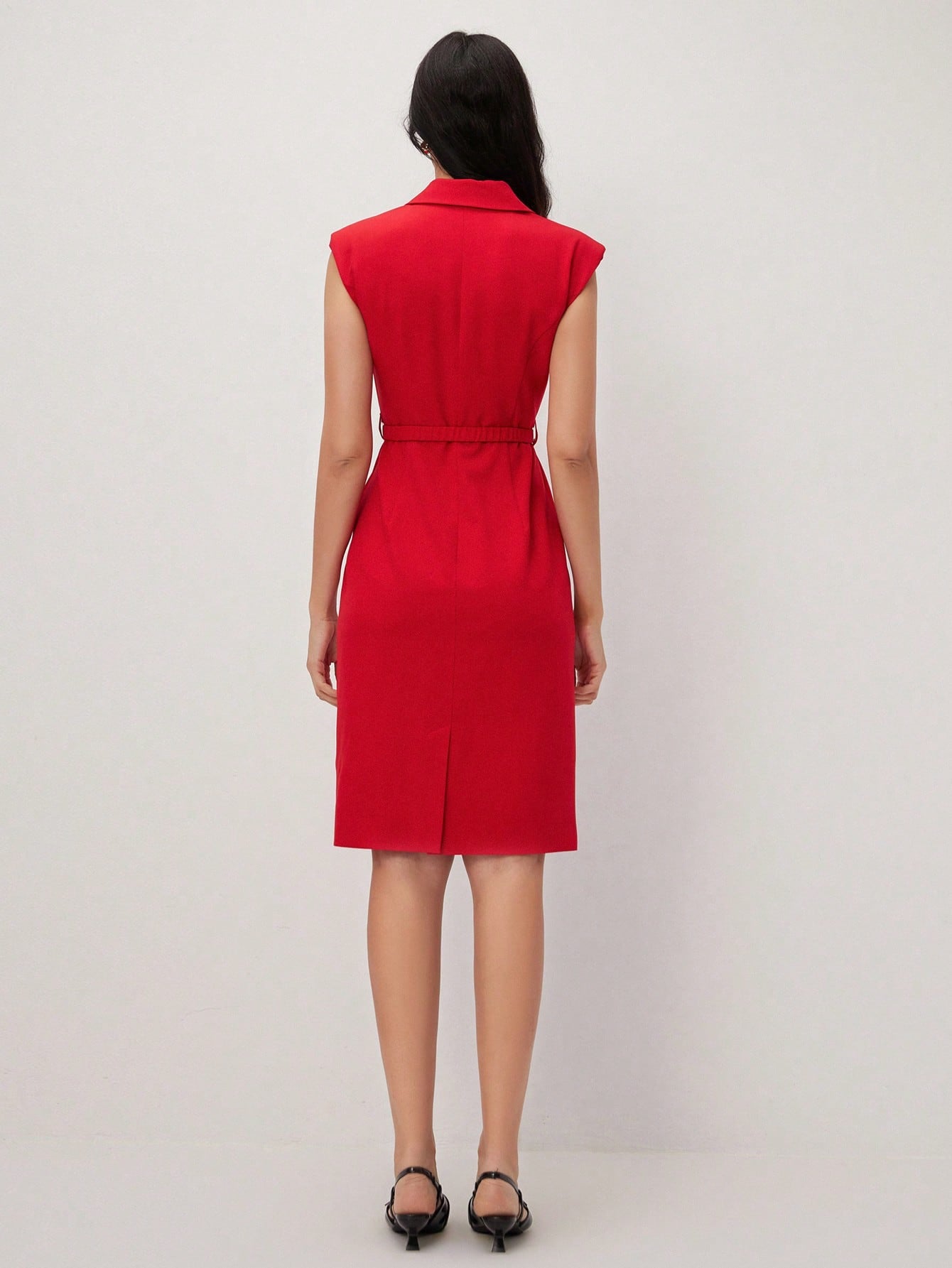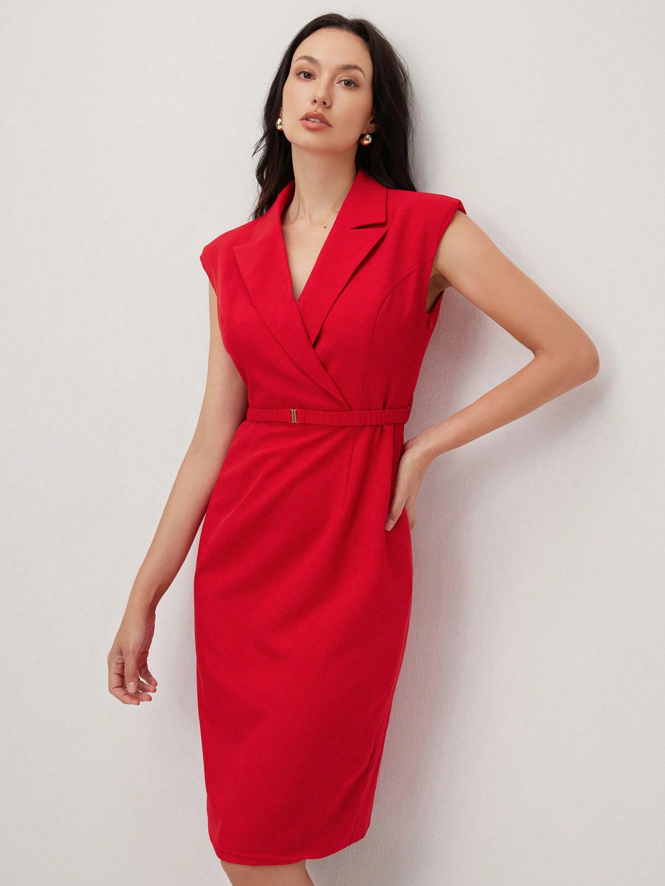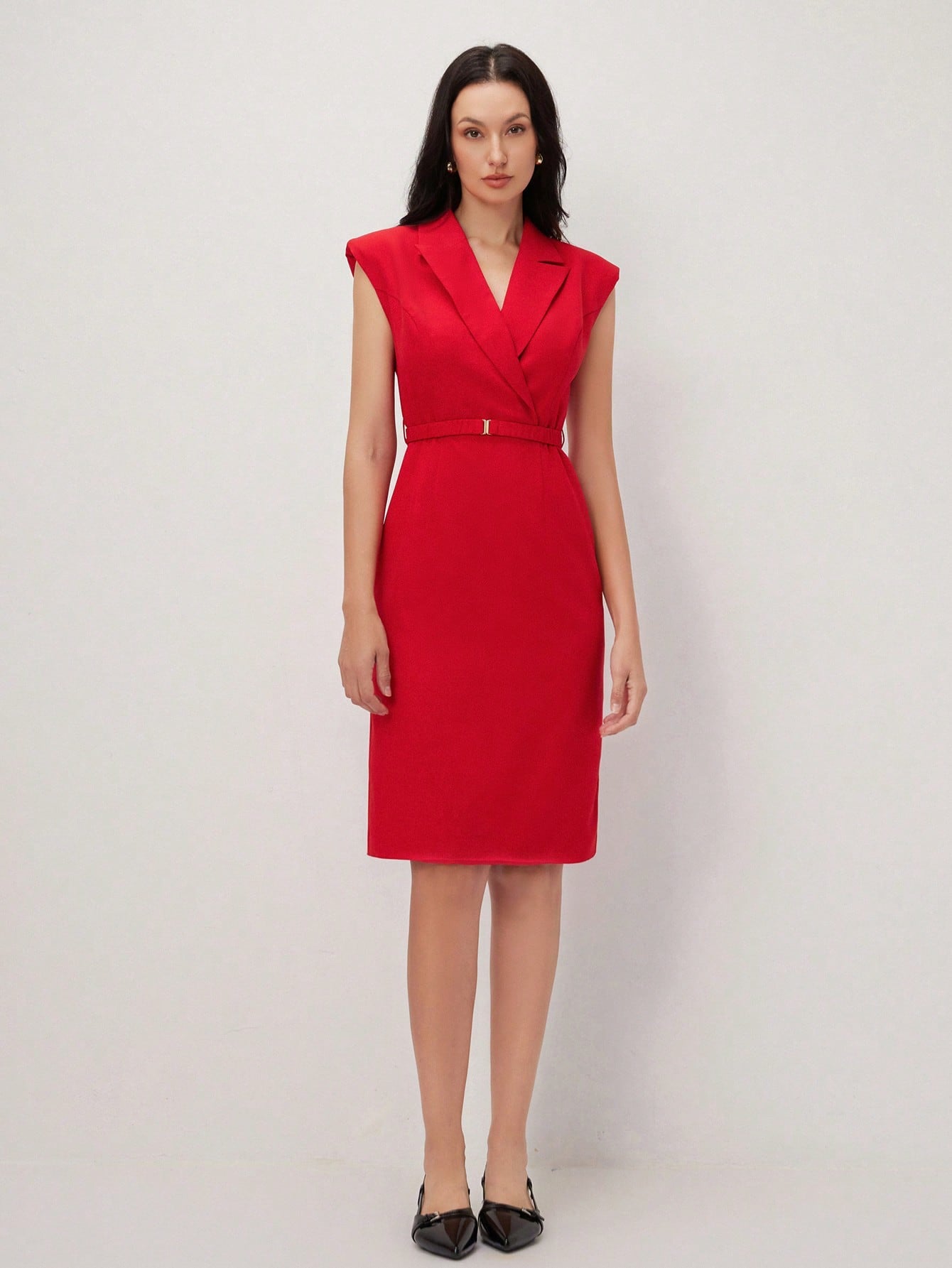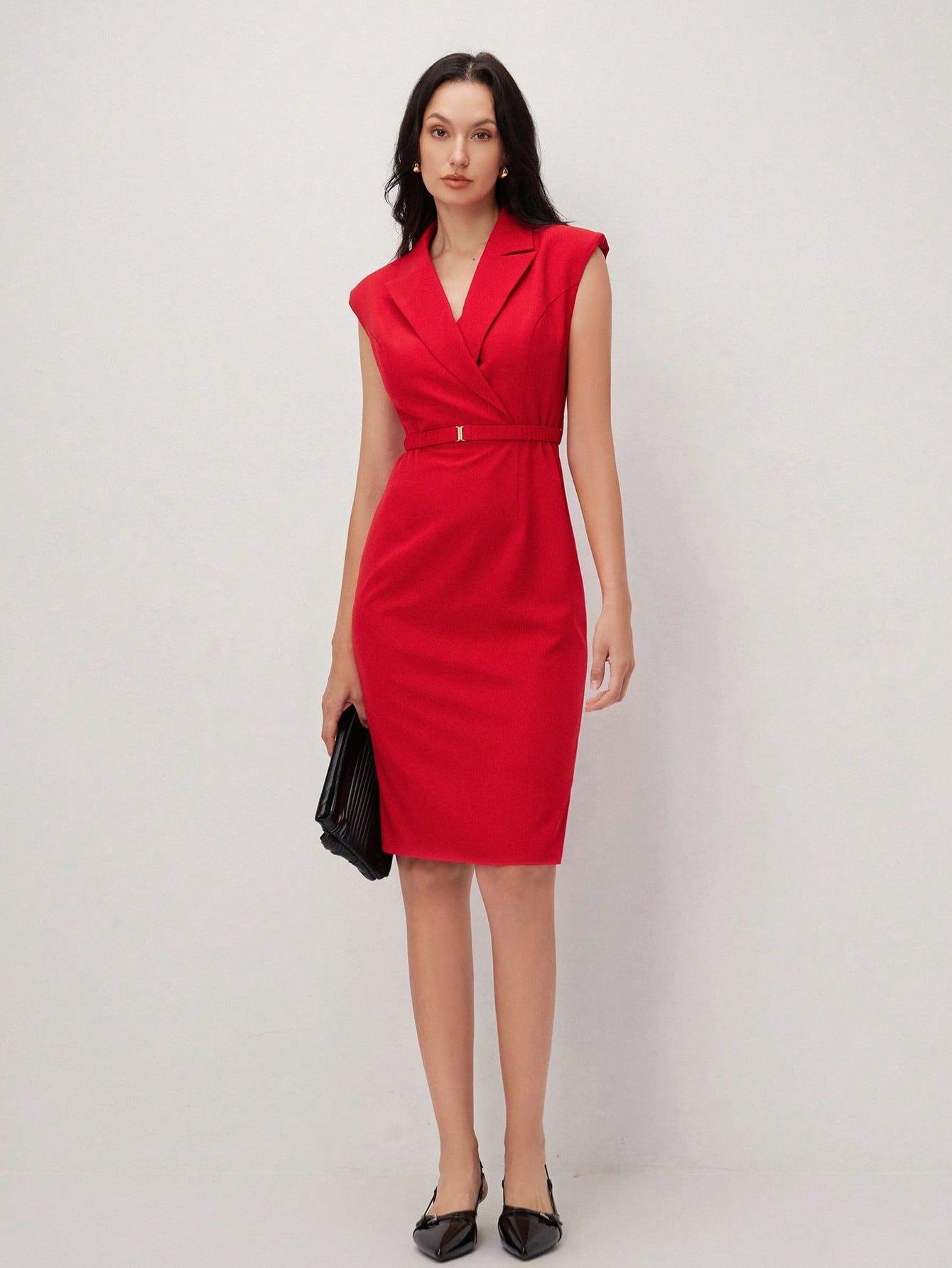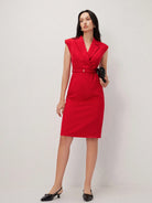 فستان بيز شيك أحمر أنيق للعمل الكاجوال للنساء
