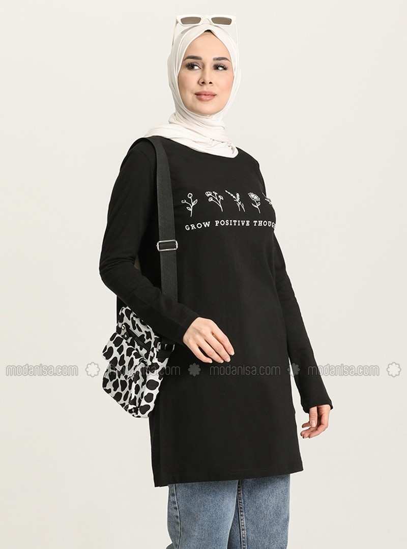 تونيك برقبة دائرية سوداء