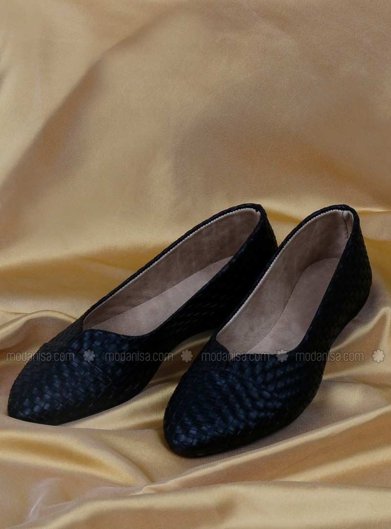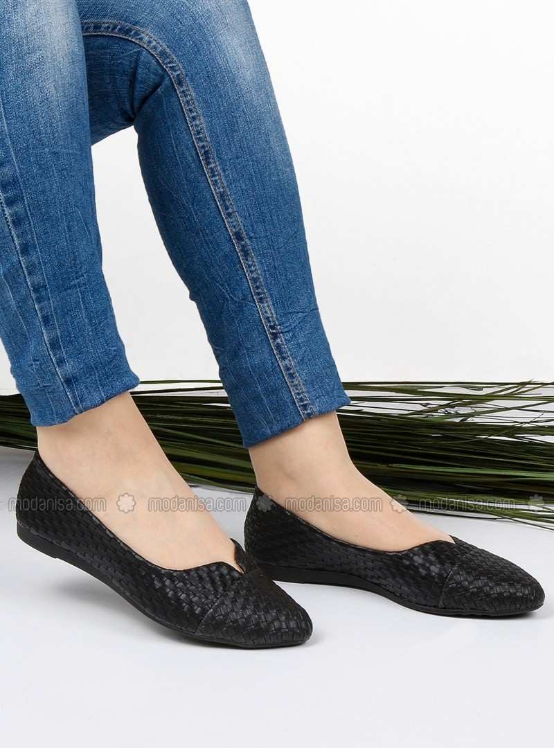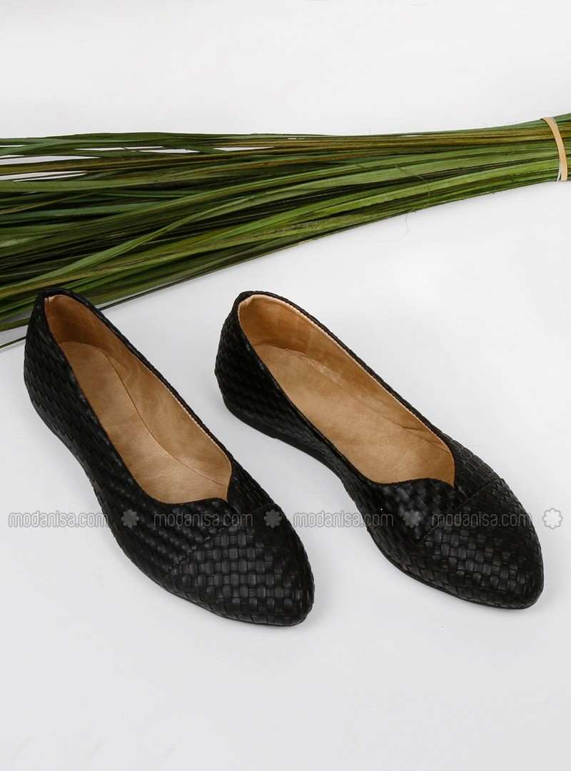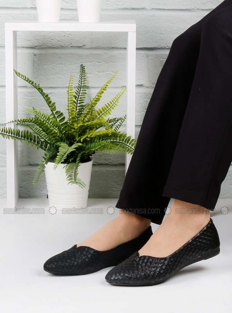للنساء - حذاء مسطح كاجوال مسطح باللون الأسود