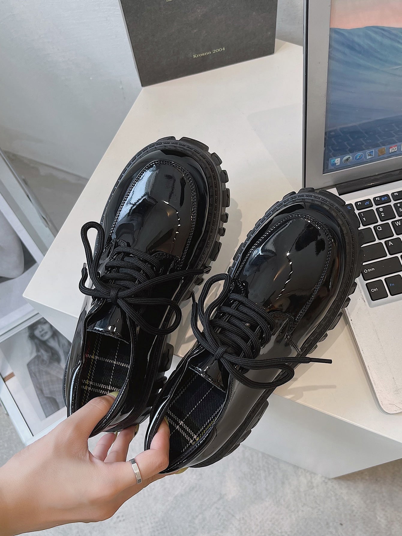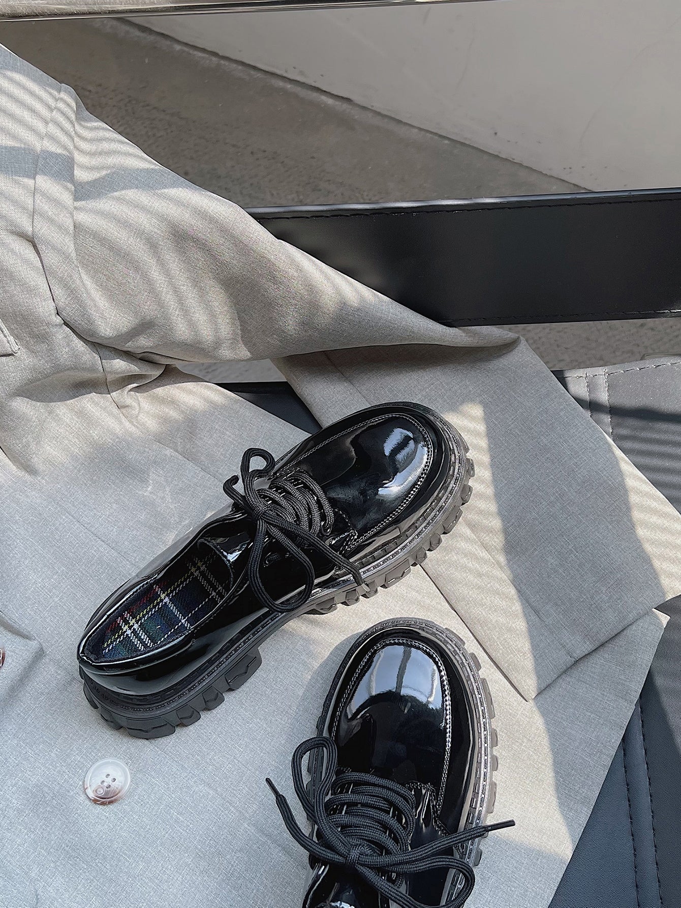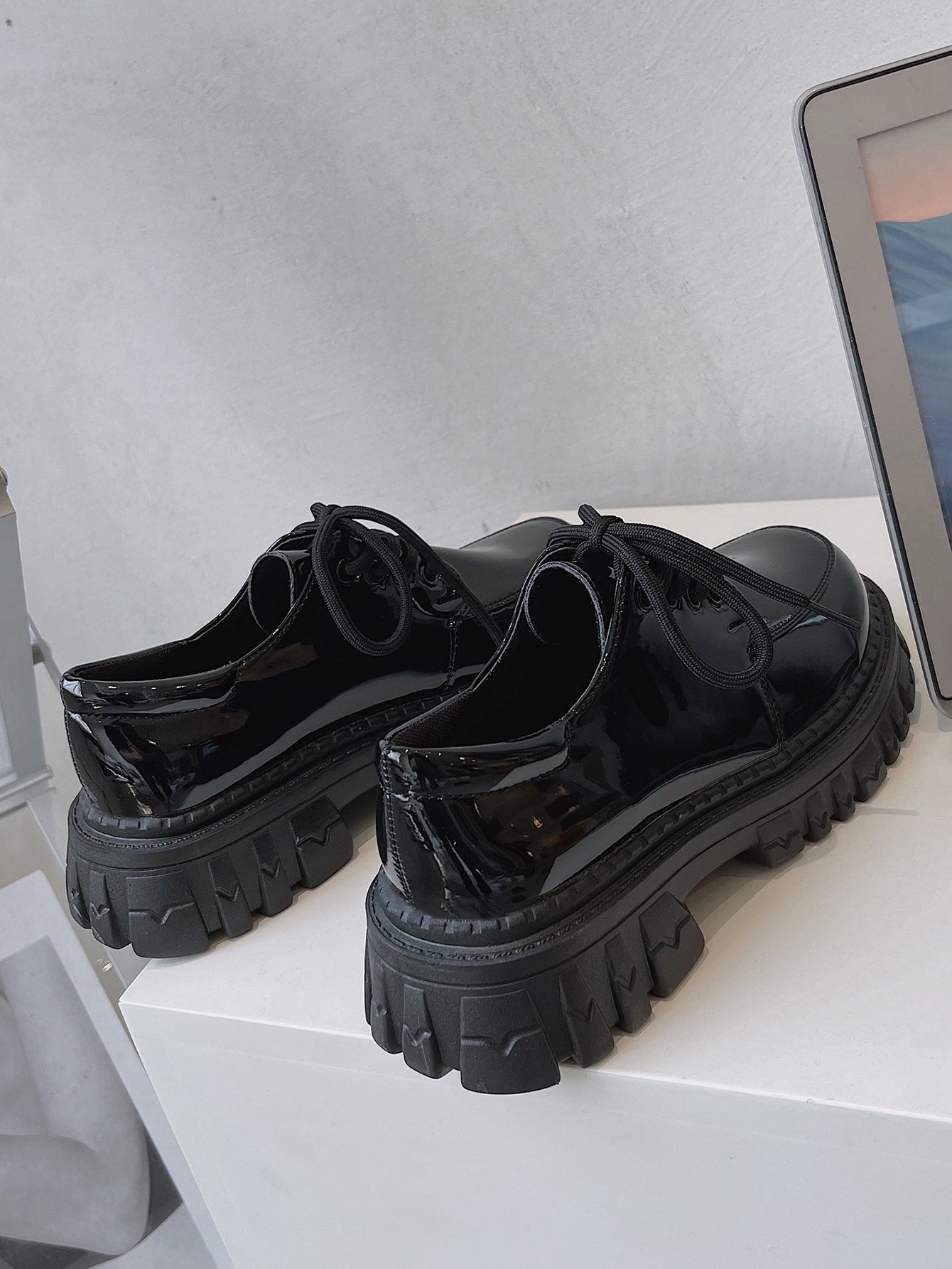women Black Platform Lace-Up Oxfords For Women