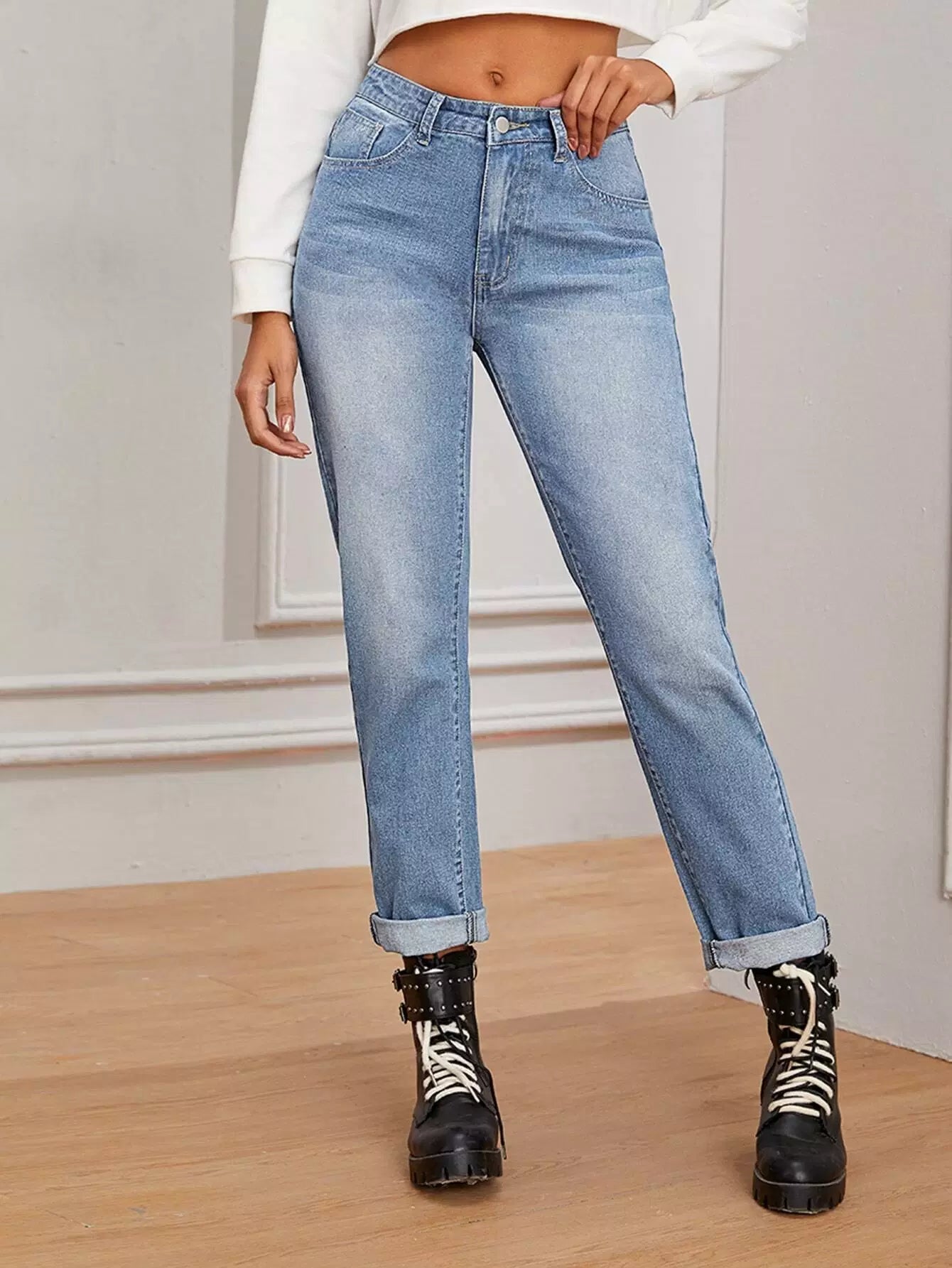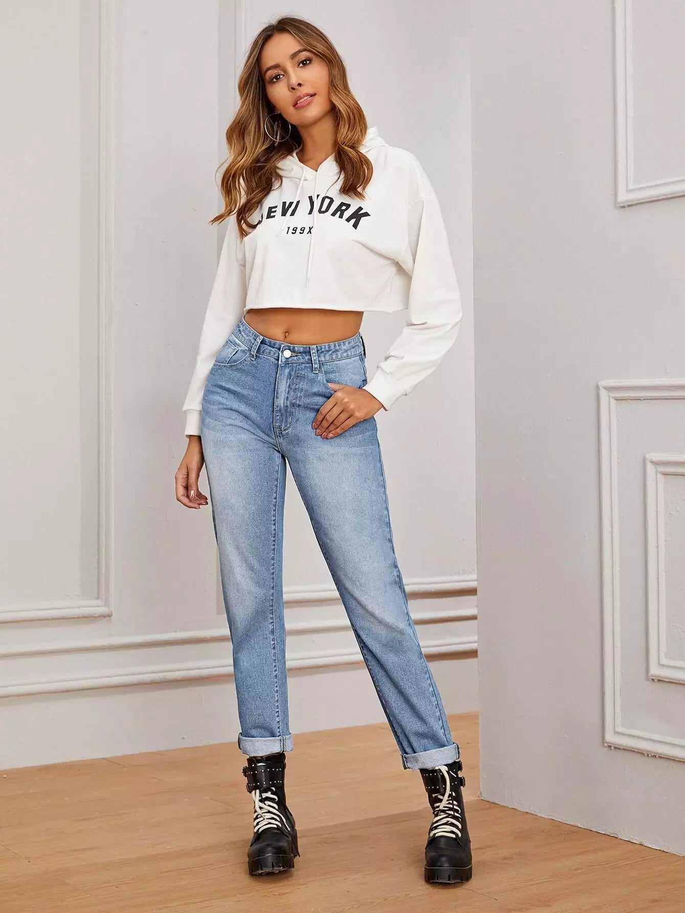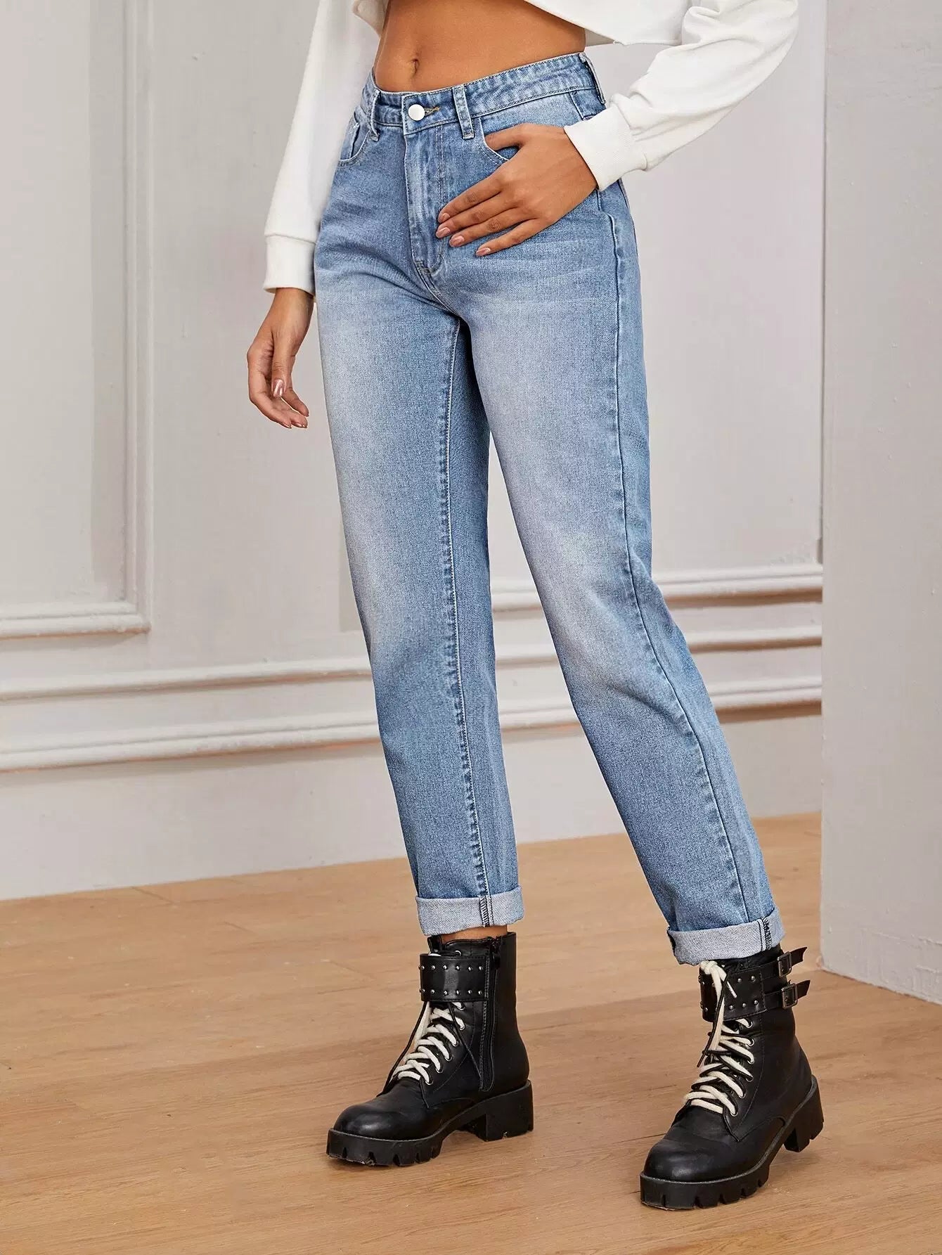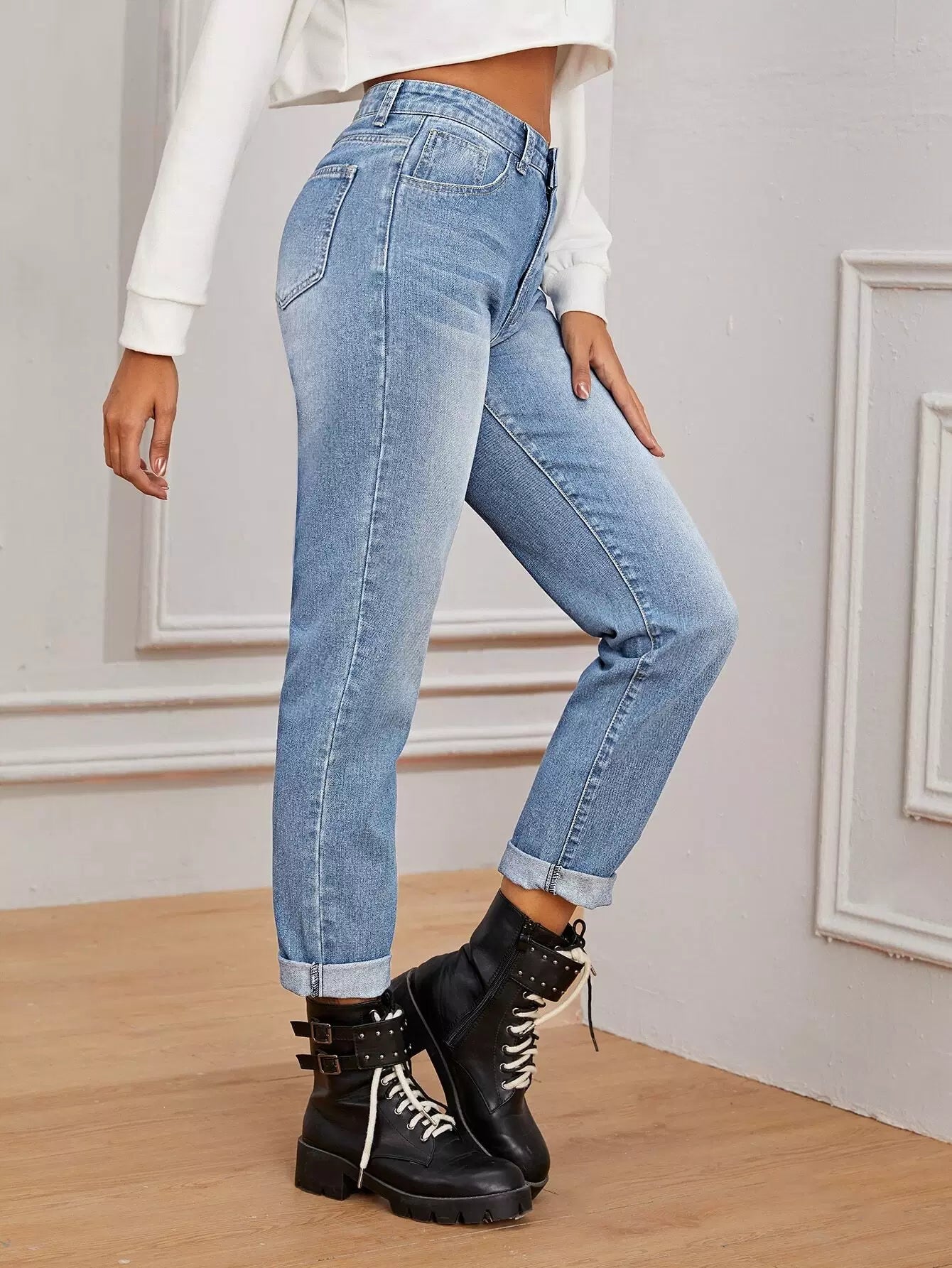 بنطلون جينز جينز بوي فريندنغ غسيل مبيض