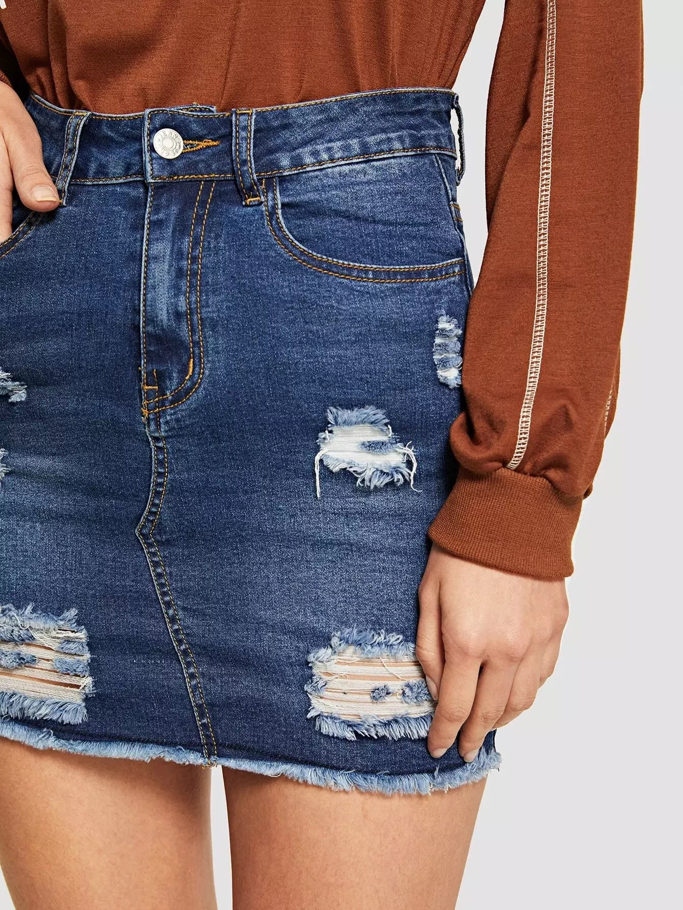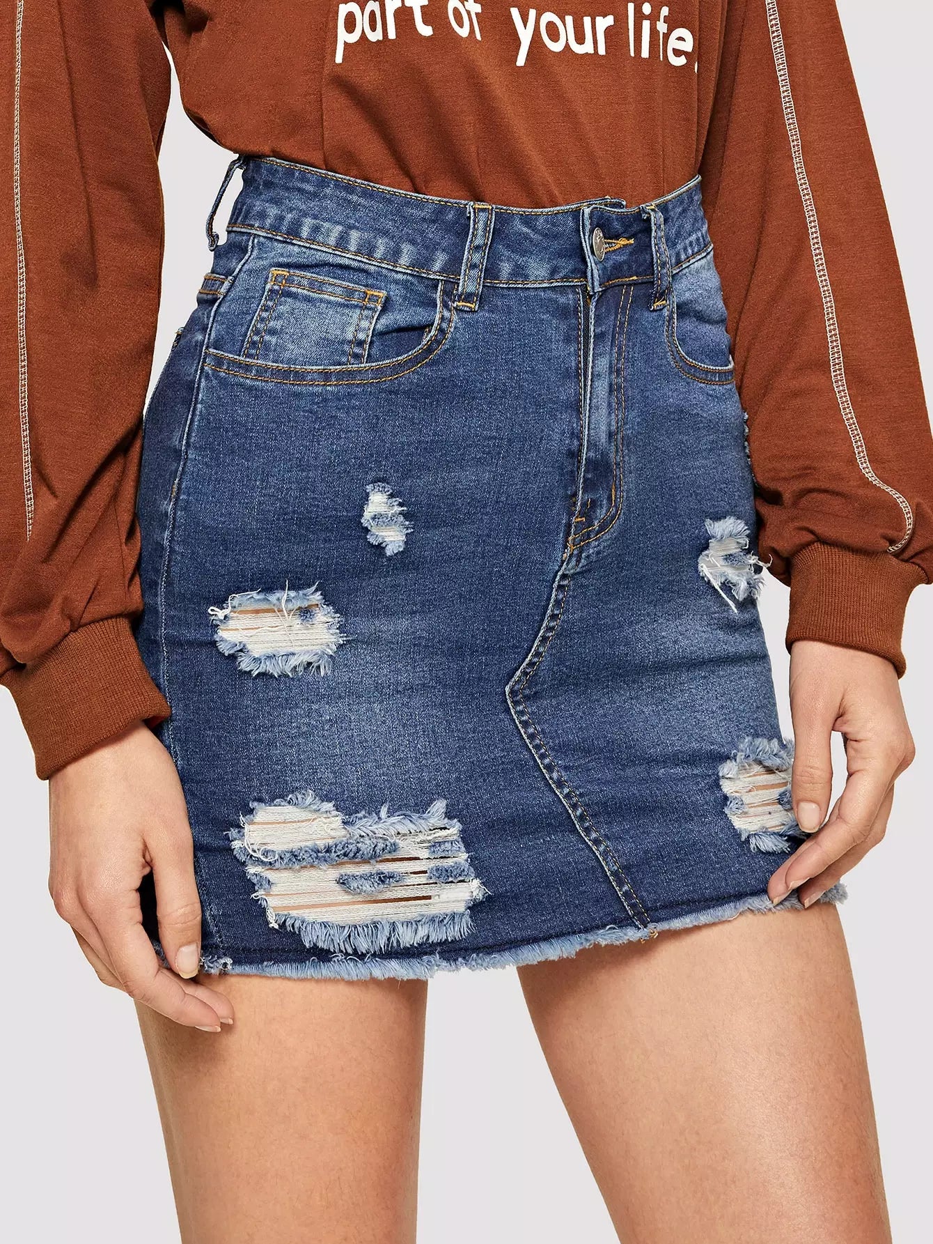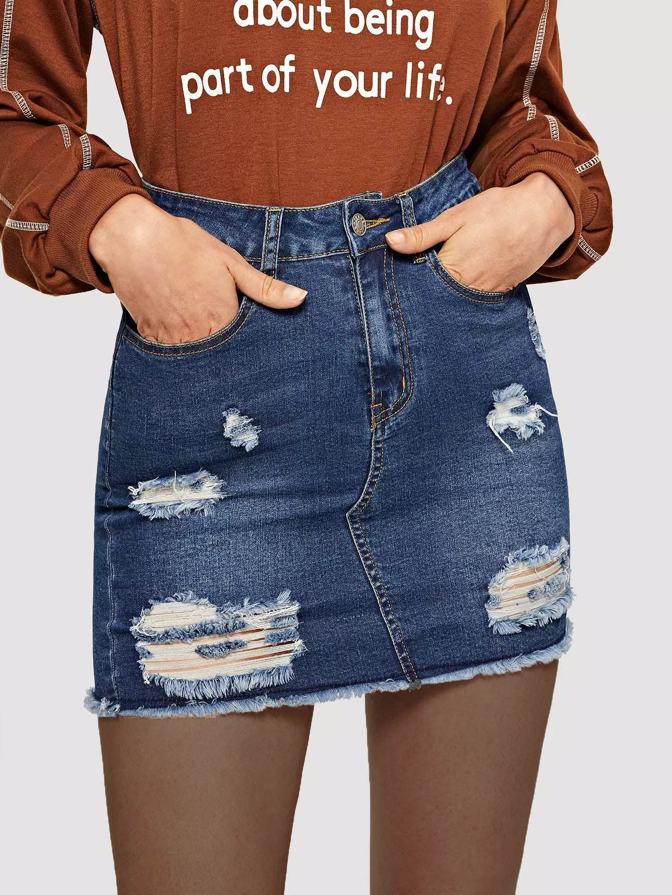 تنورة جينز ممزقة ومغسولة بماء التبييض
