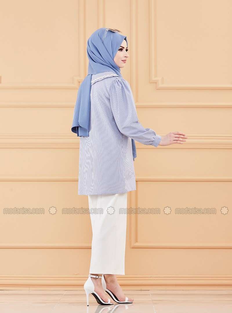 سترة زرقاء مستديرة الياقة