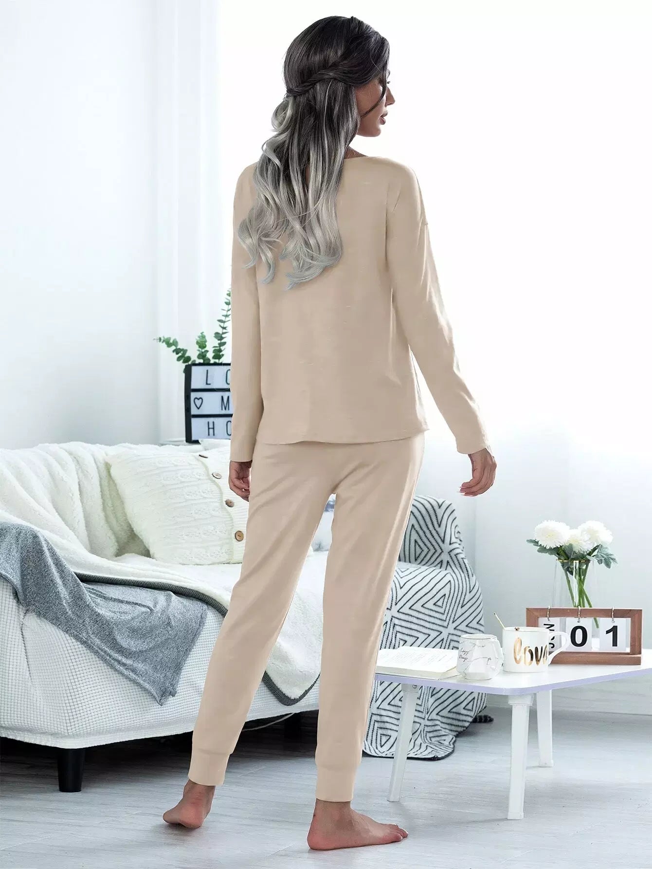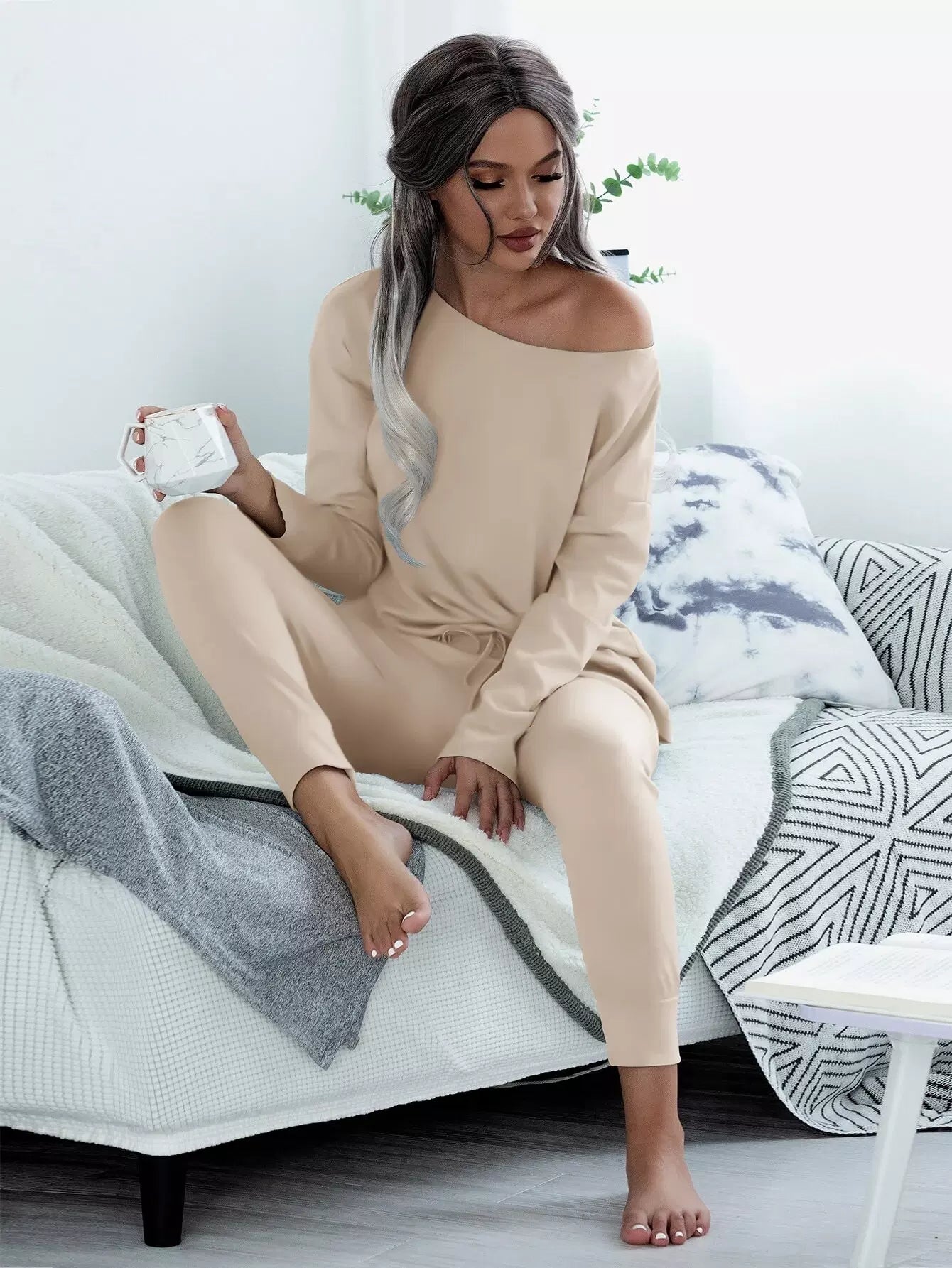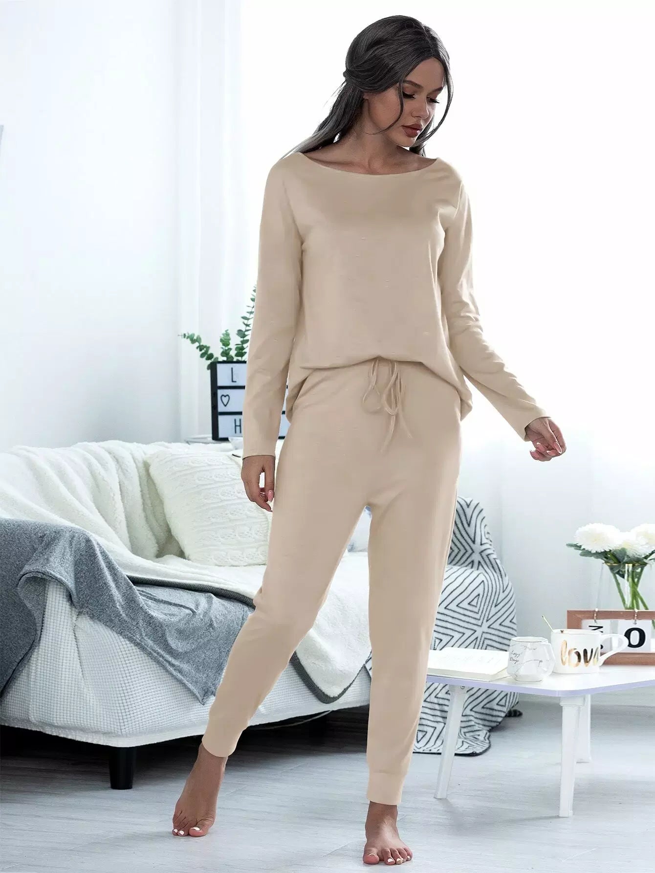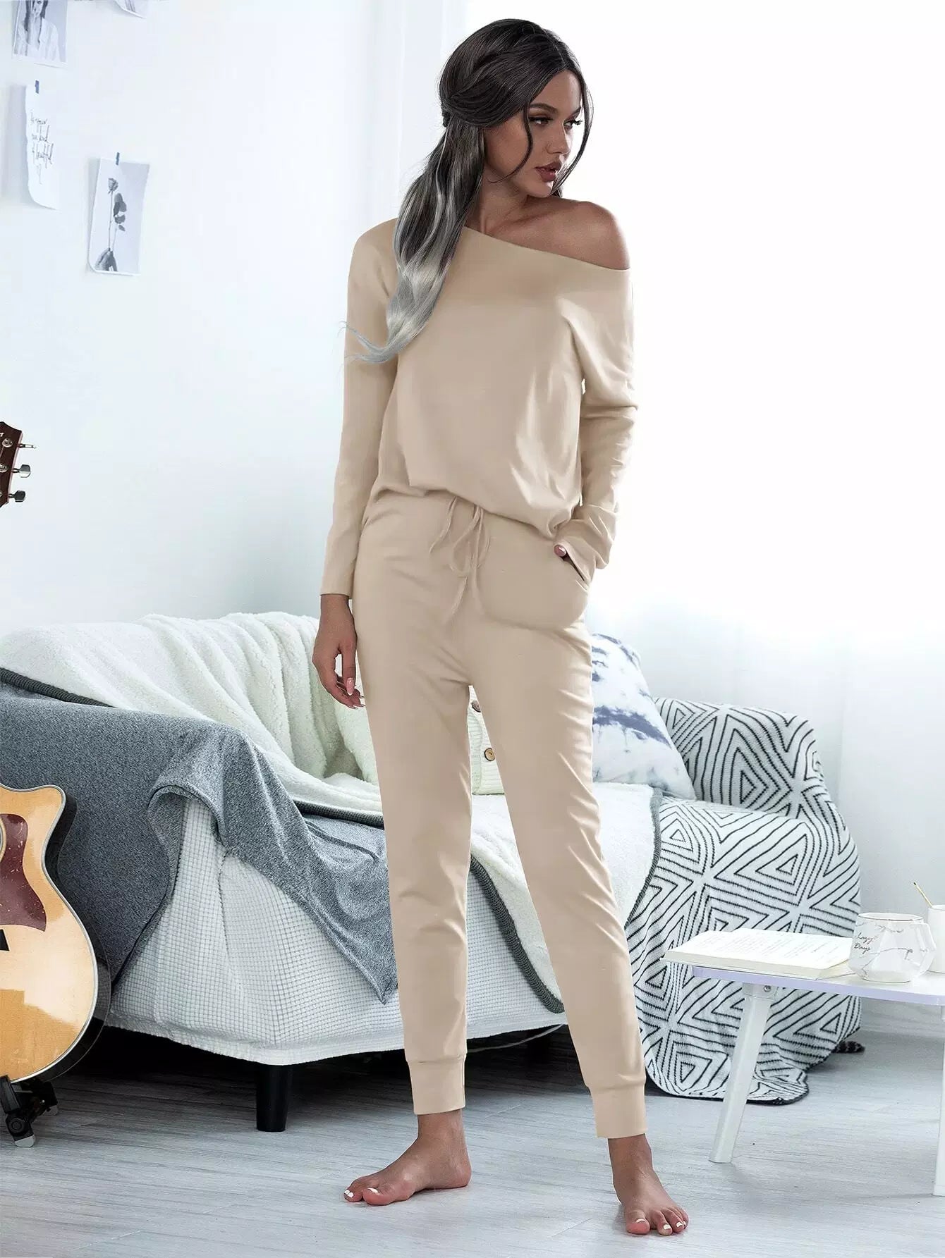 تي شيرت برقبة قارب برقبة قارب سادة منسدلة الكتفين وبنطال رياضي
