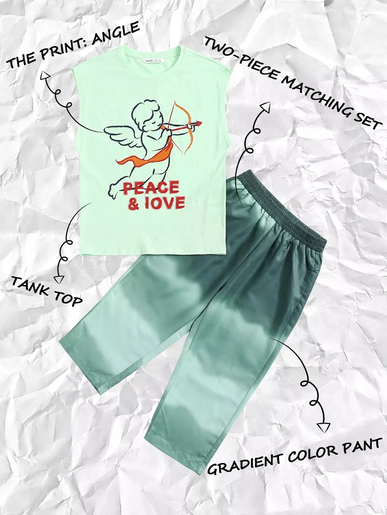 طقم تانك توب بطبعة كيوبيد وبنطلون مصبوغ بالربط للأولاد