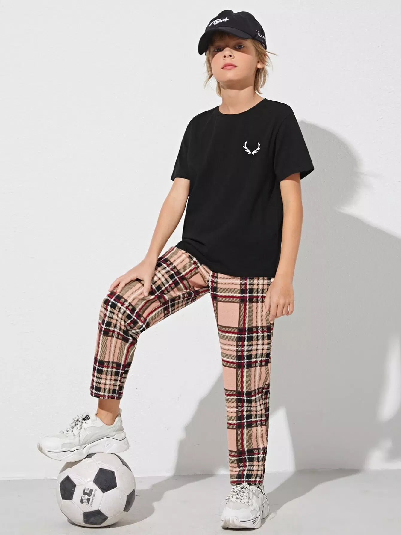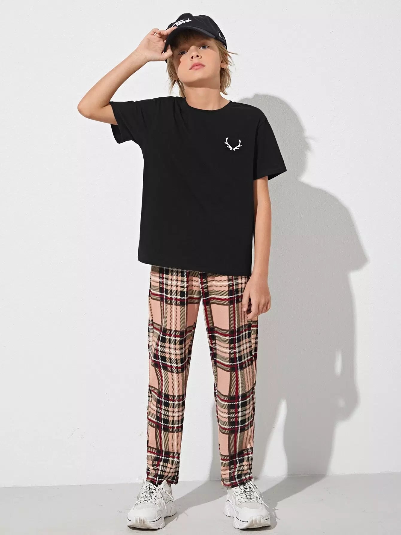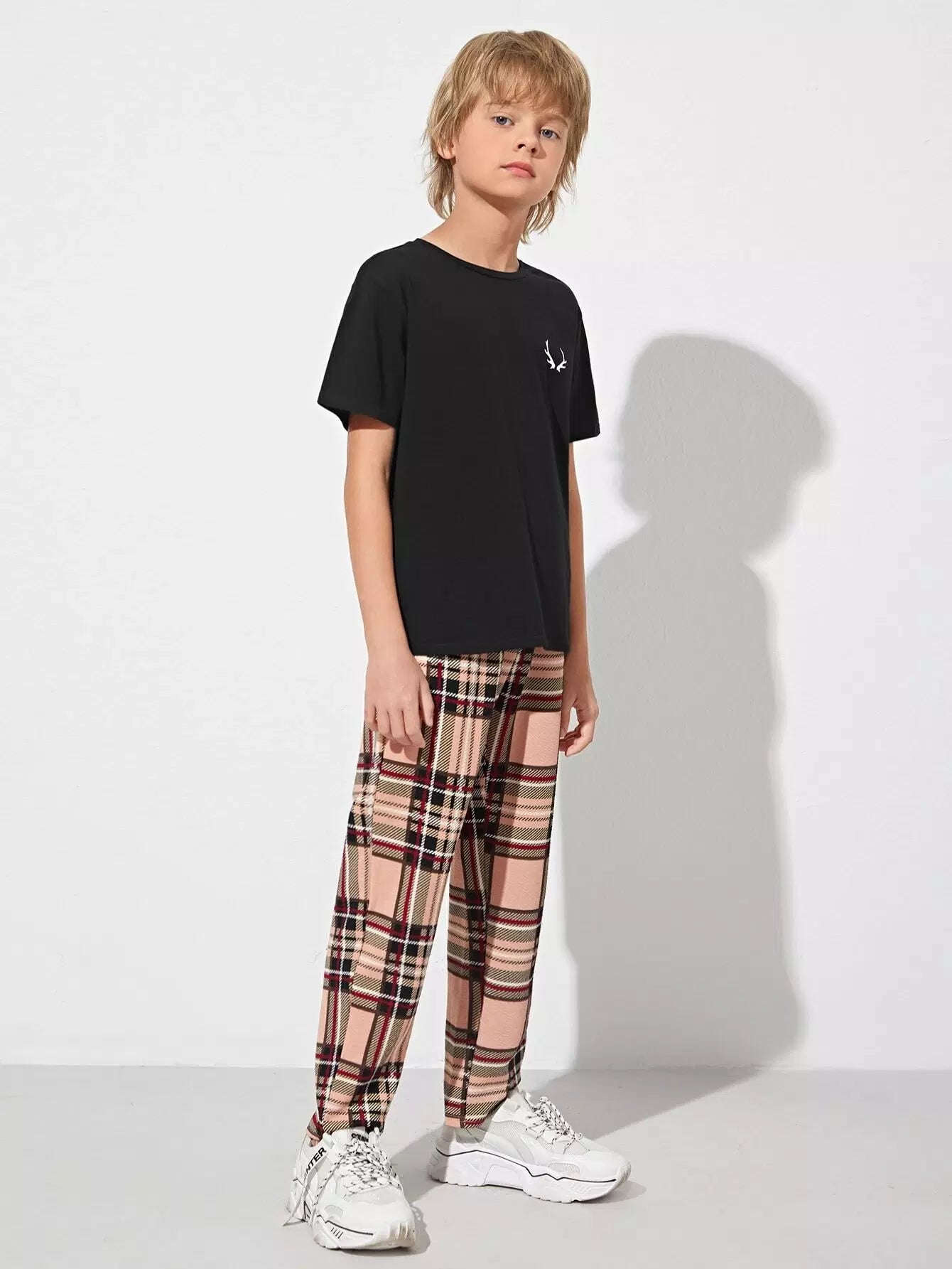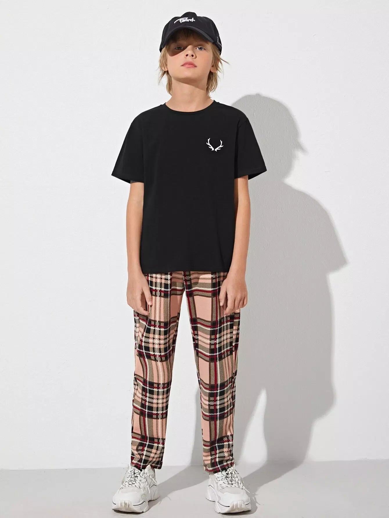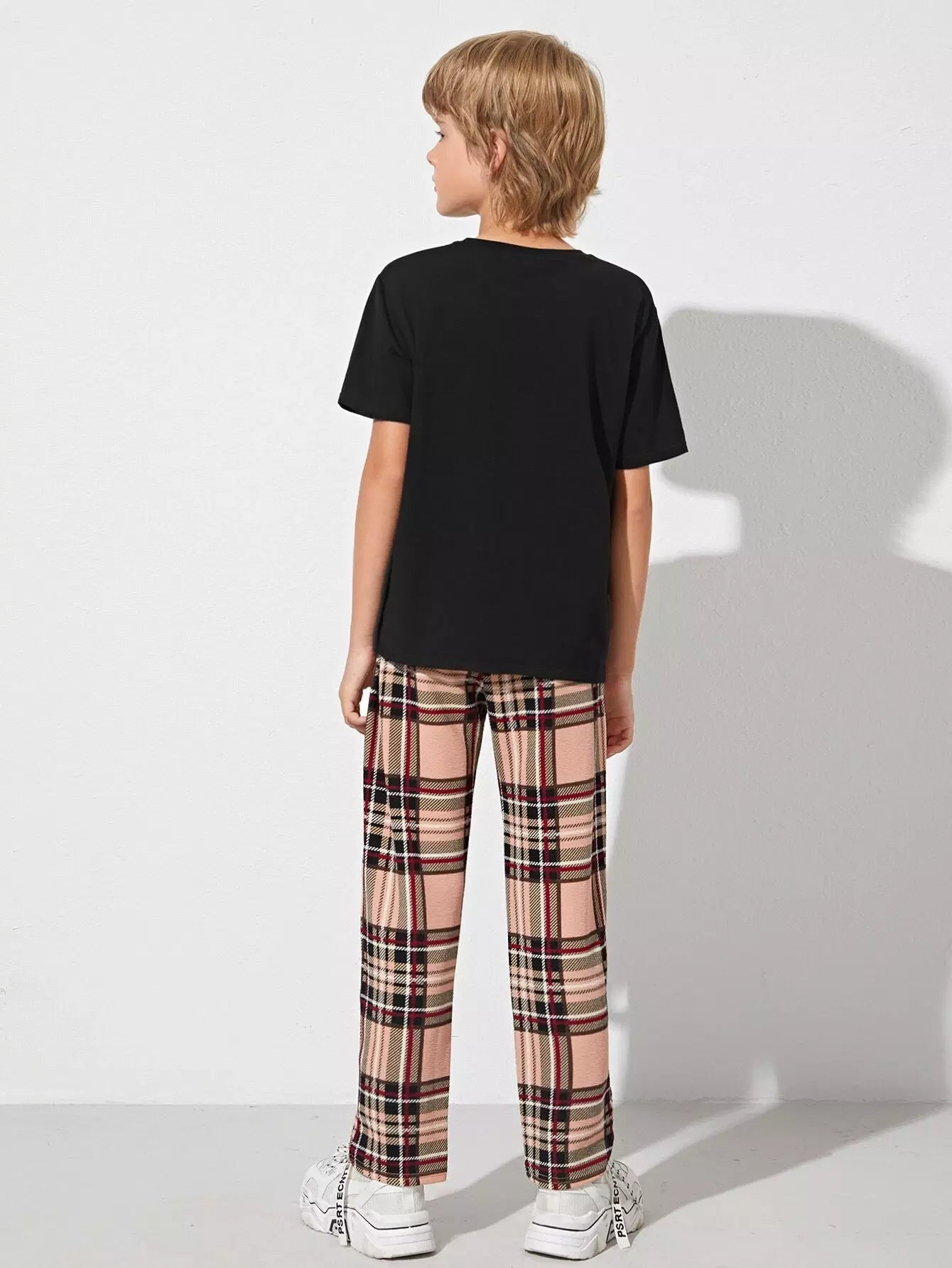 طقم تي شيرت بطبعة جرافيكية وبنطلون منقوش للأولاد
