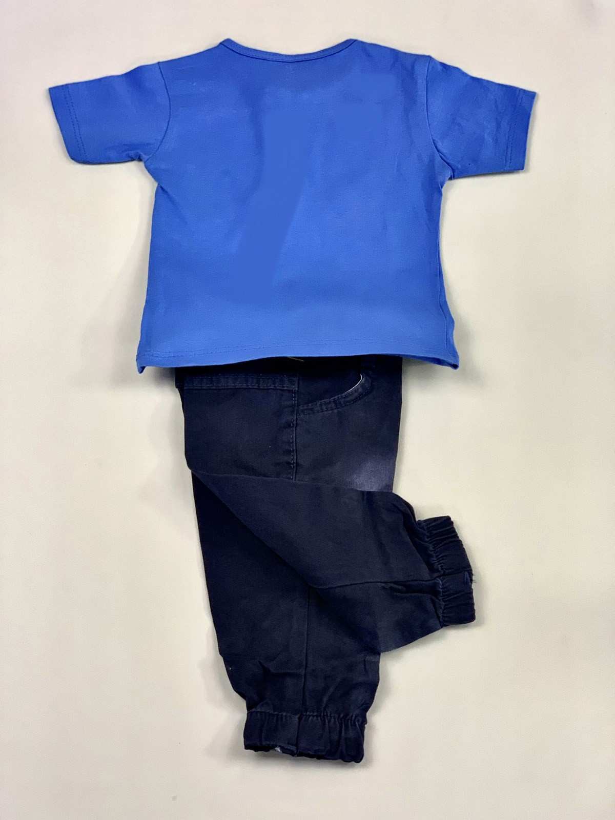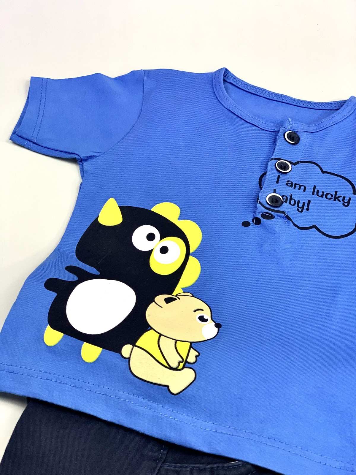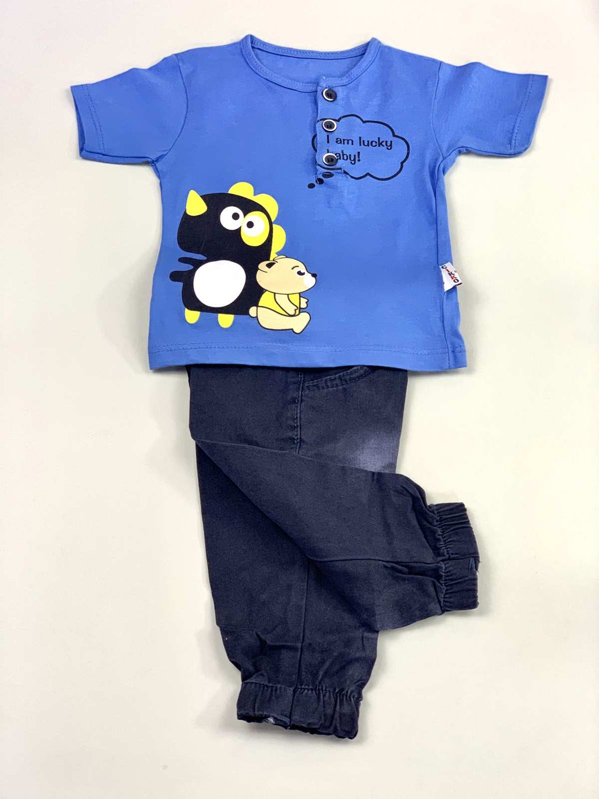 طقم جينز للأولاد مع تيشيرت أزرق I AM LUCKY
