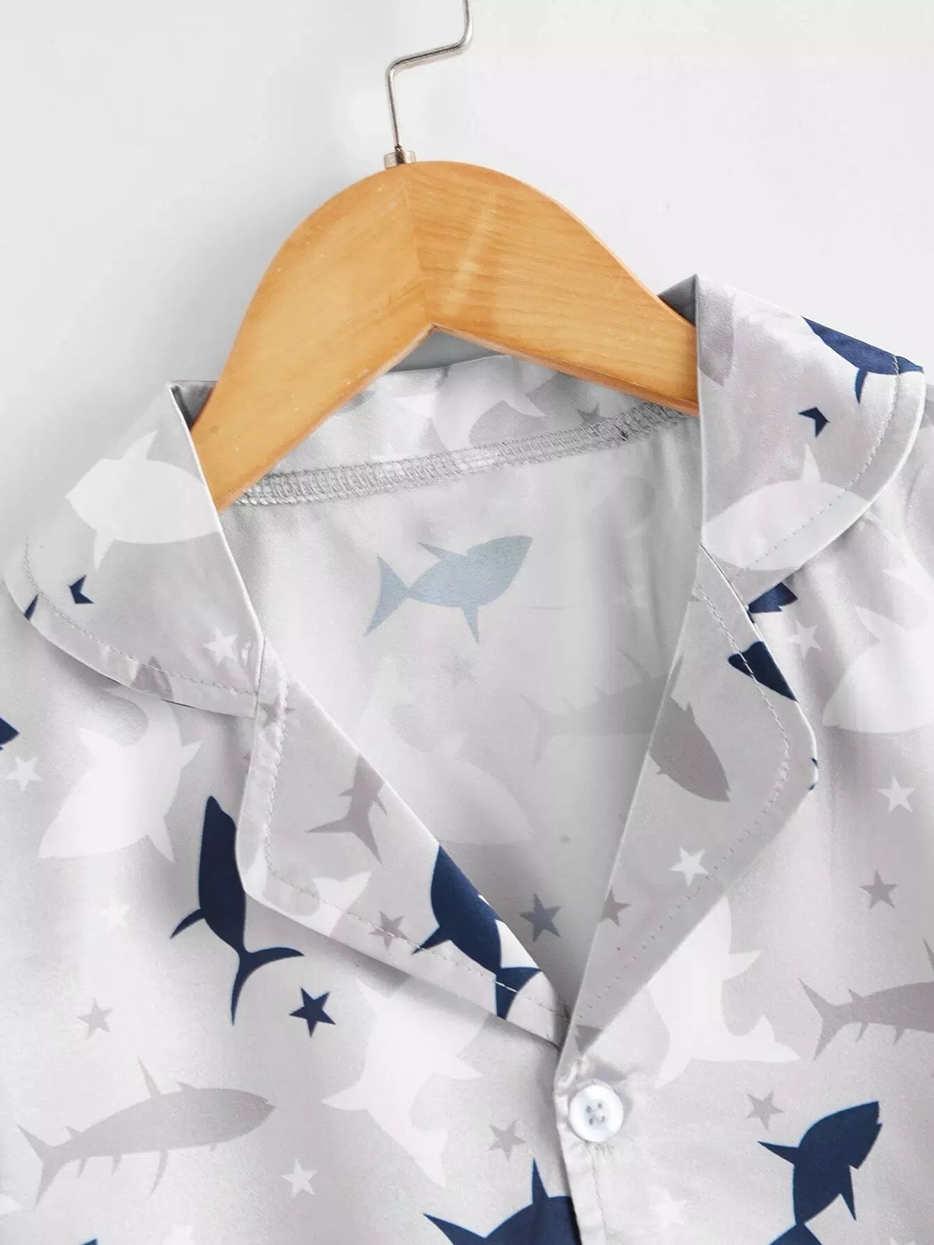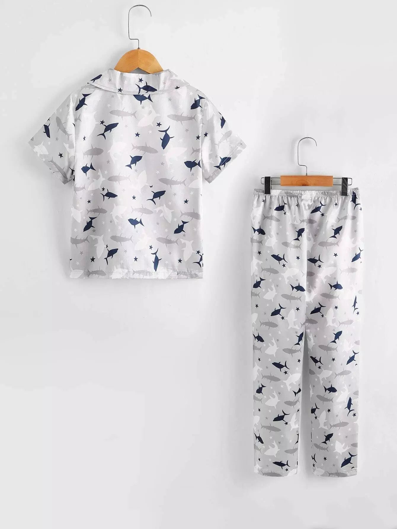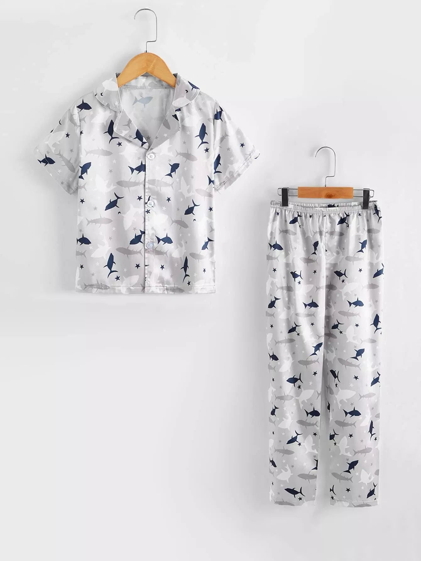 طقم بيجامة بياقة على الياقة بياقة كرتونية للأولاد