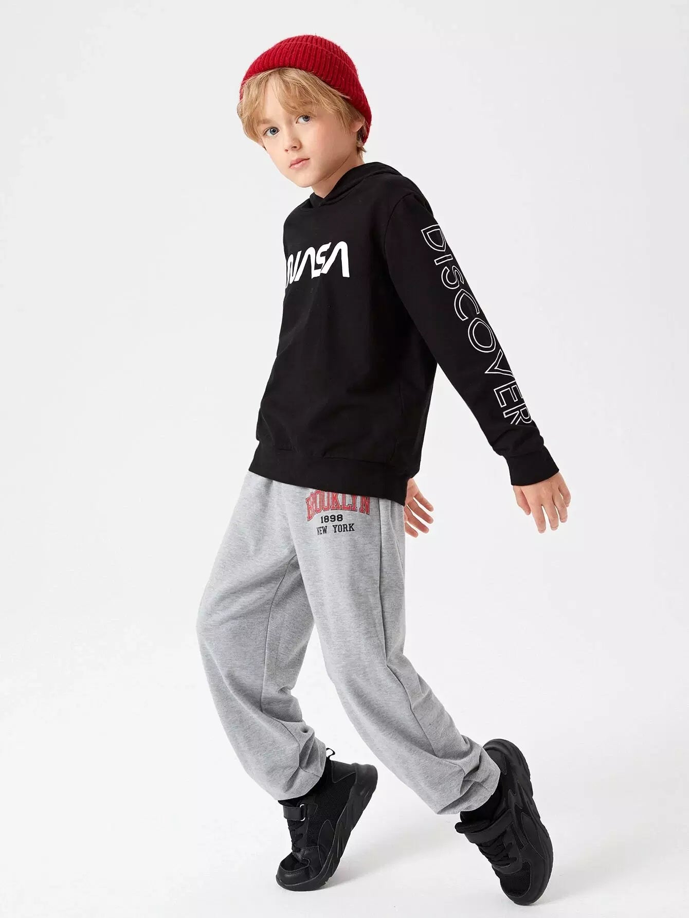 بنطال رياضي بجيوب مائلة ورسومات بأحرف للأولاد