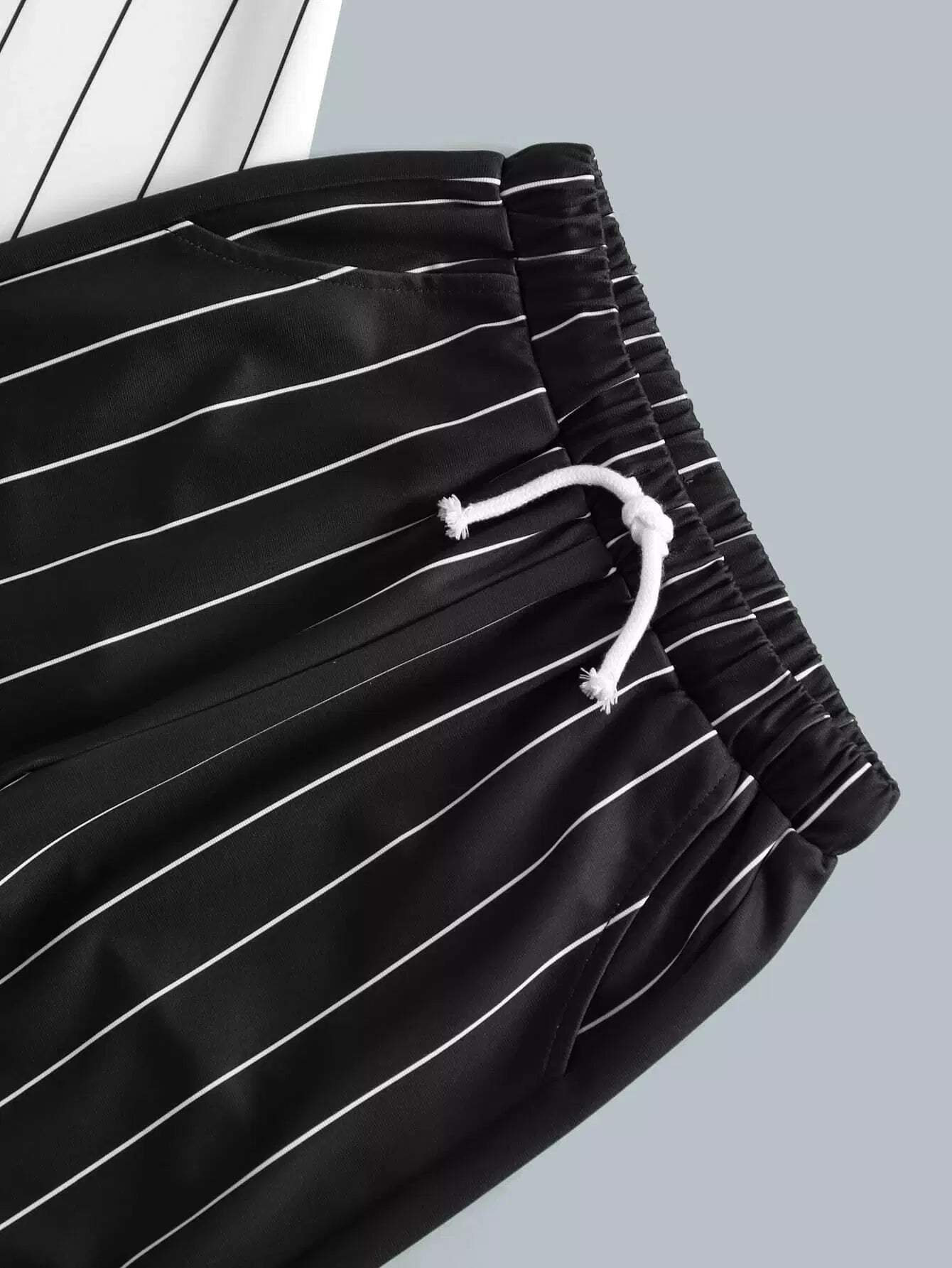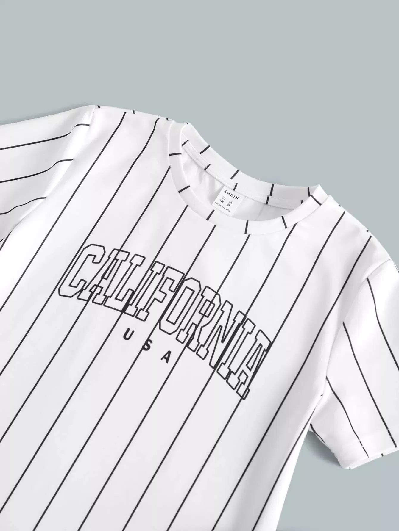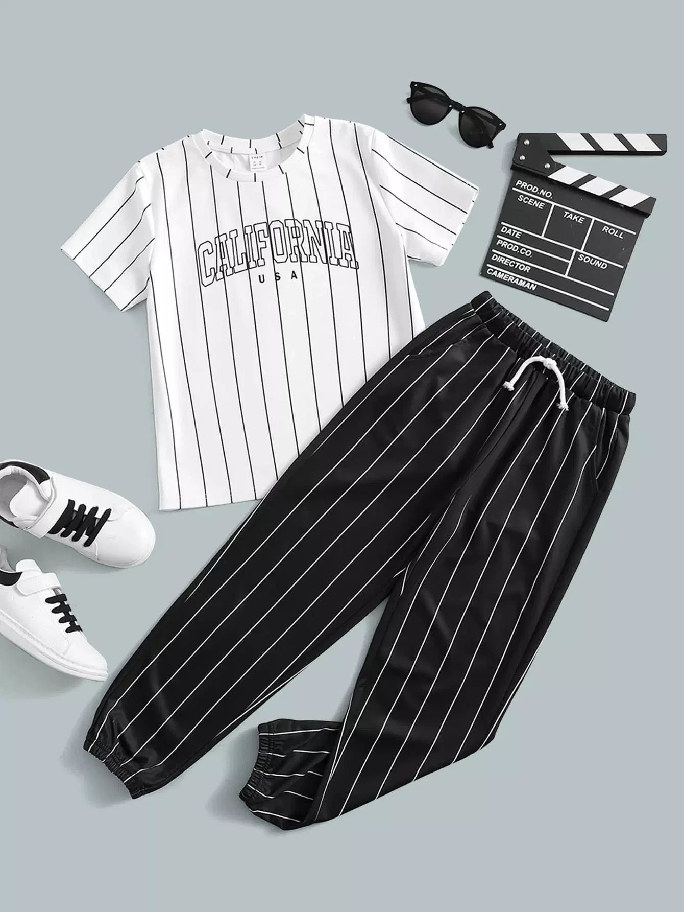 الأولاد تي شيرت بنقشة حروف ومخطط وبنطلون بعقدة أمامية