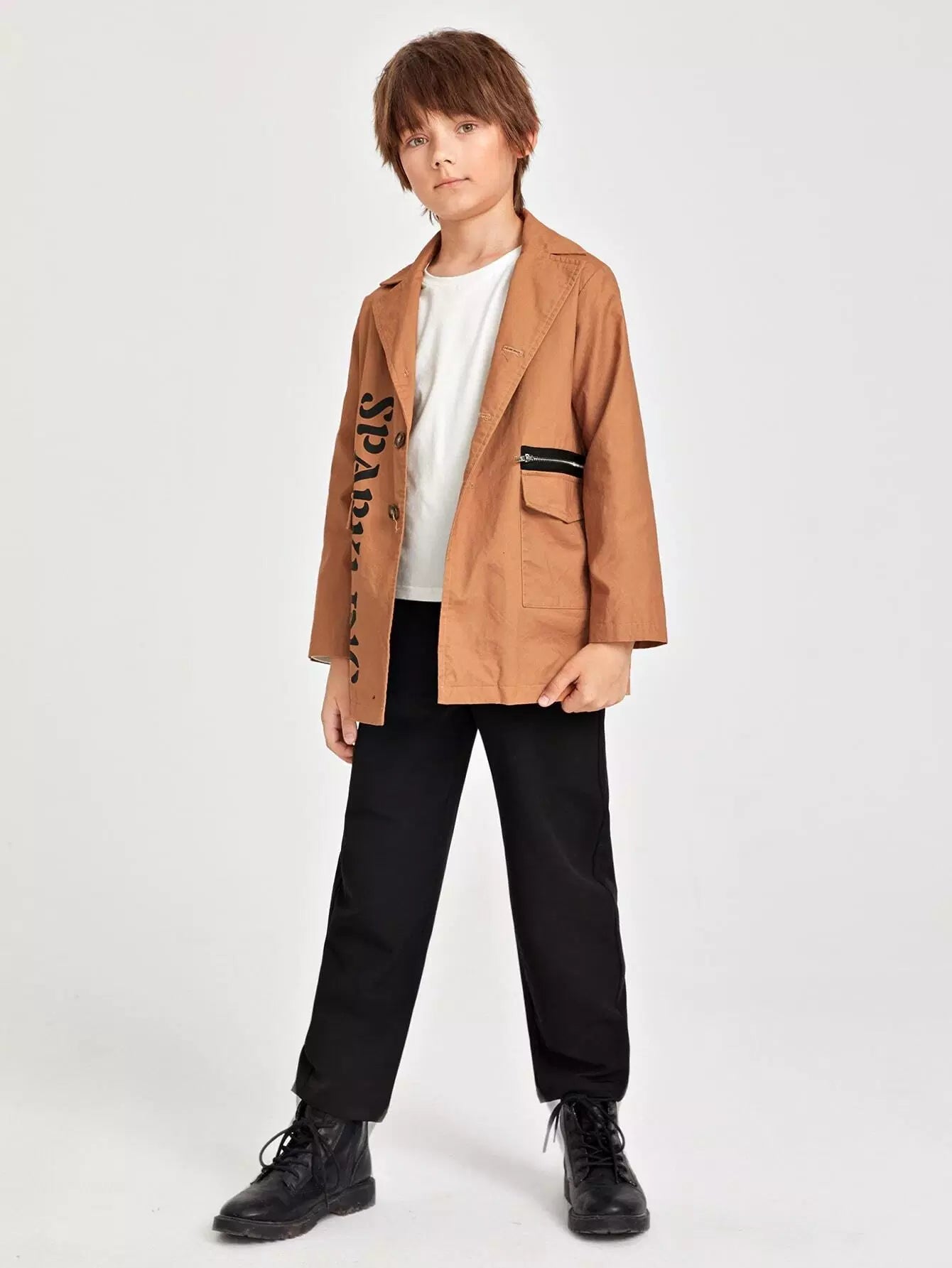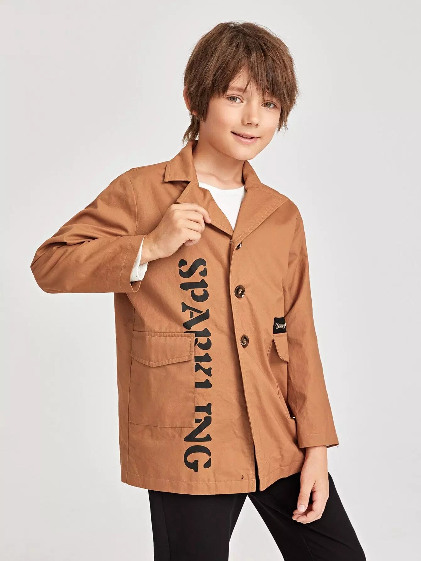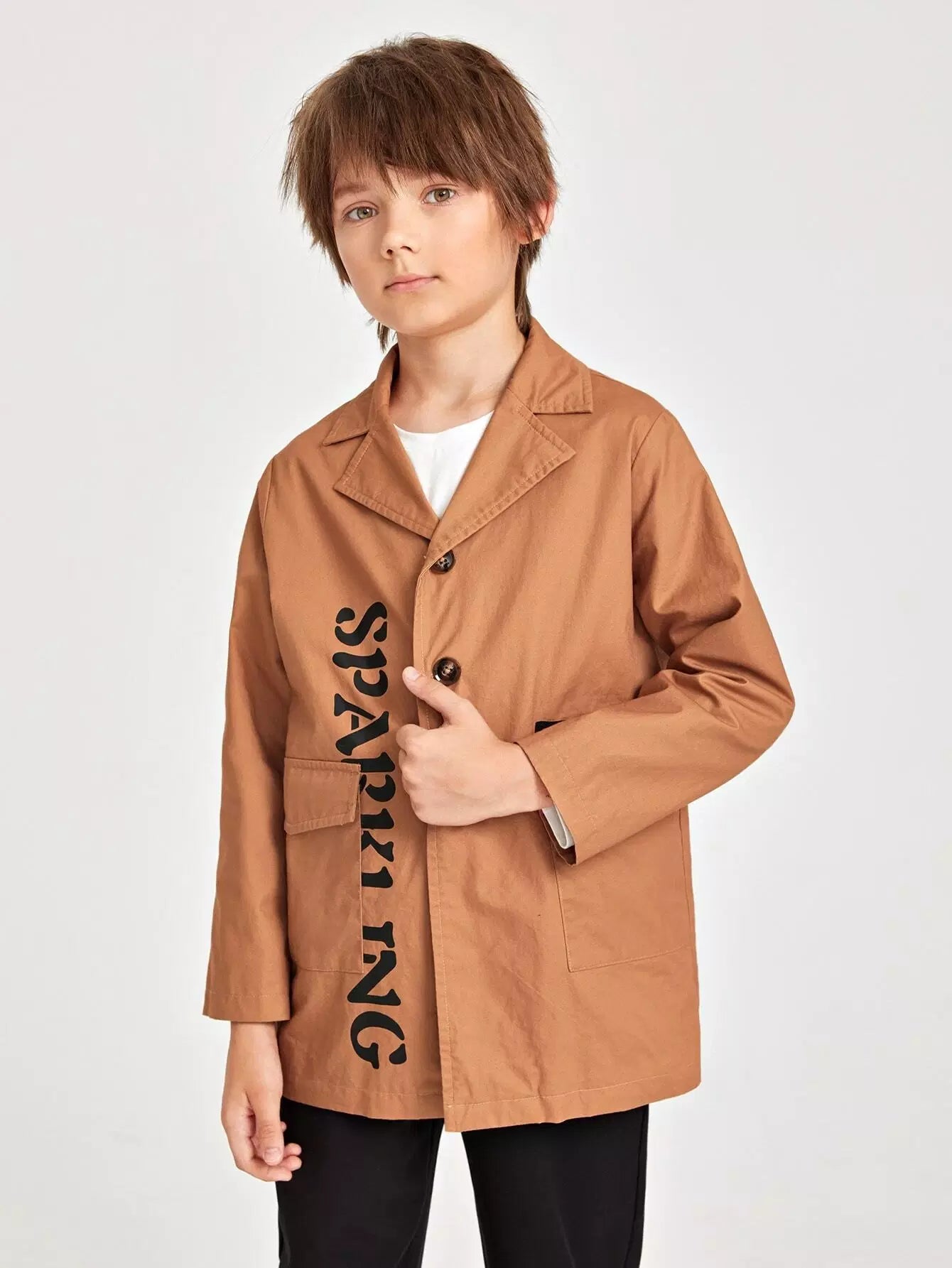 معطف للأولاد بياقة مدببة وجيب خلفي ورسومات بأحرف