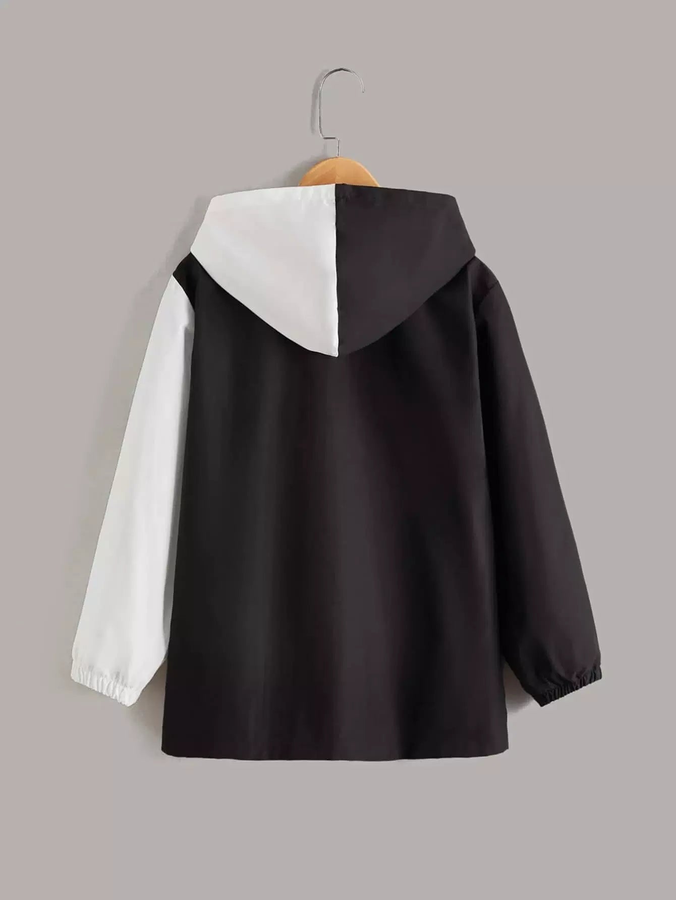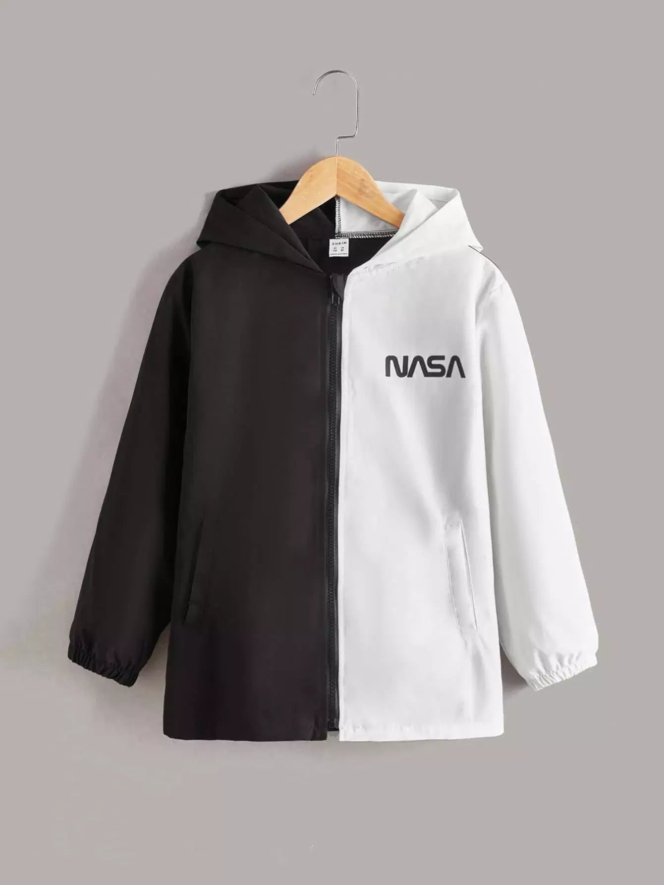 معطف بغطاء رأس وسحّاب ورسومات بحروف ثنائية اللون للأولاد